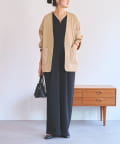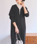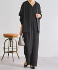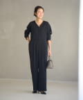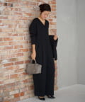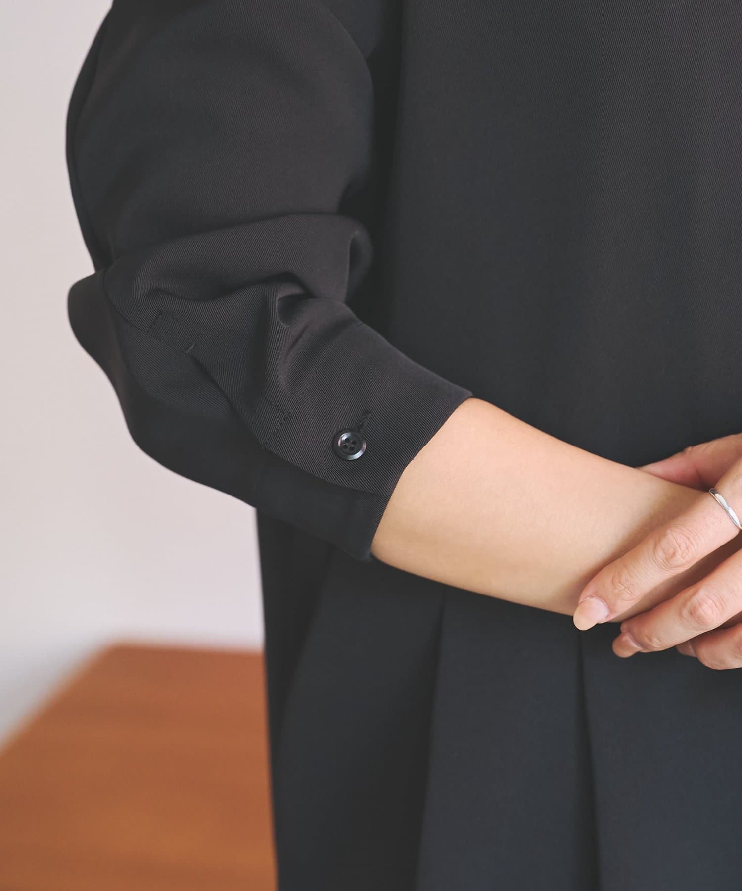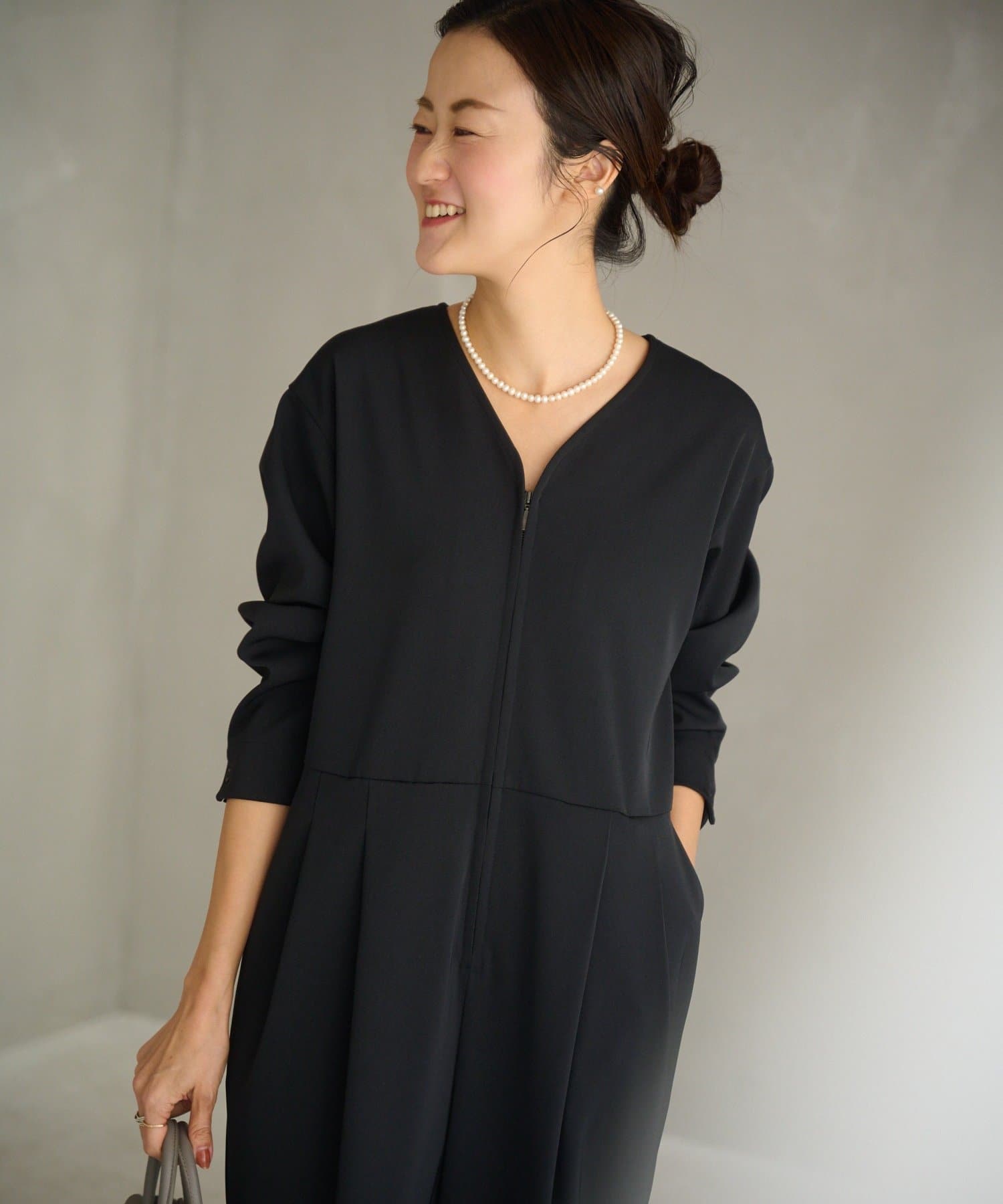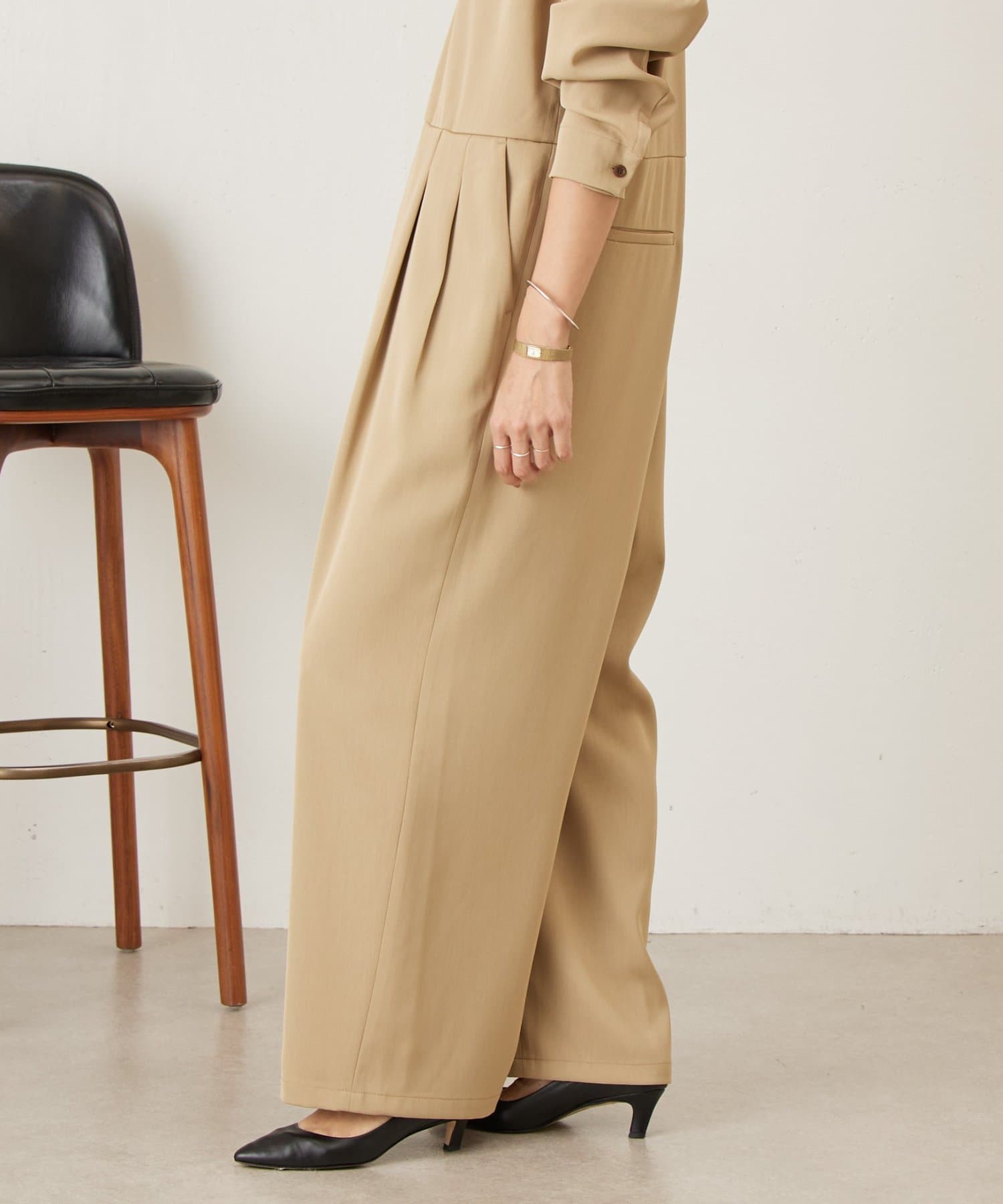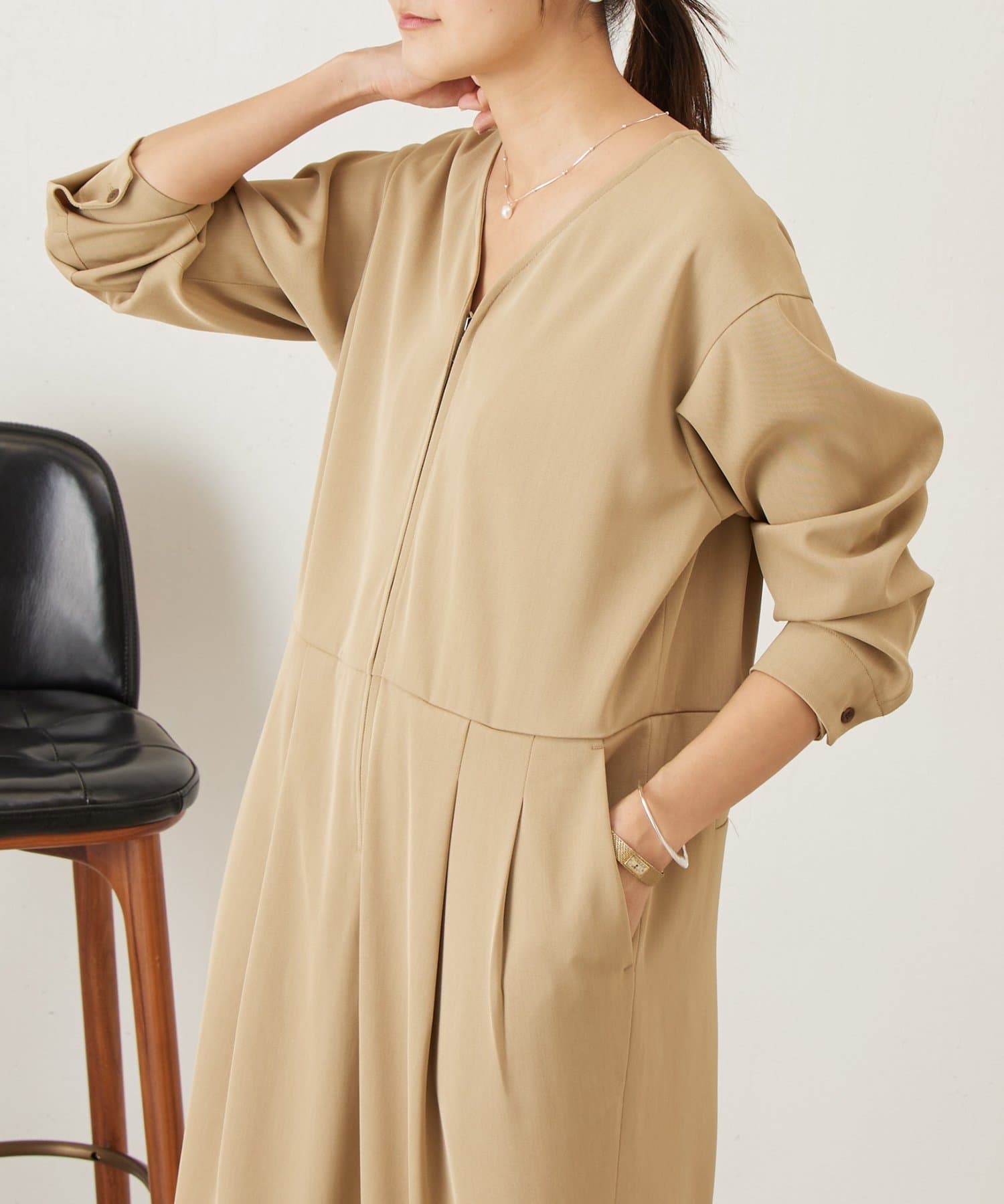 ウエスト切り替えの下にタックを入れることで、気になるお腹まわりをさりげなくカバーしつつ、縦のラインを強調。