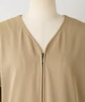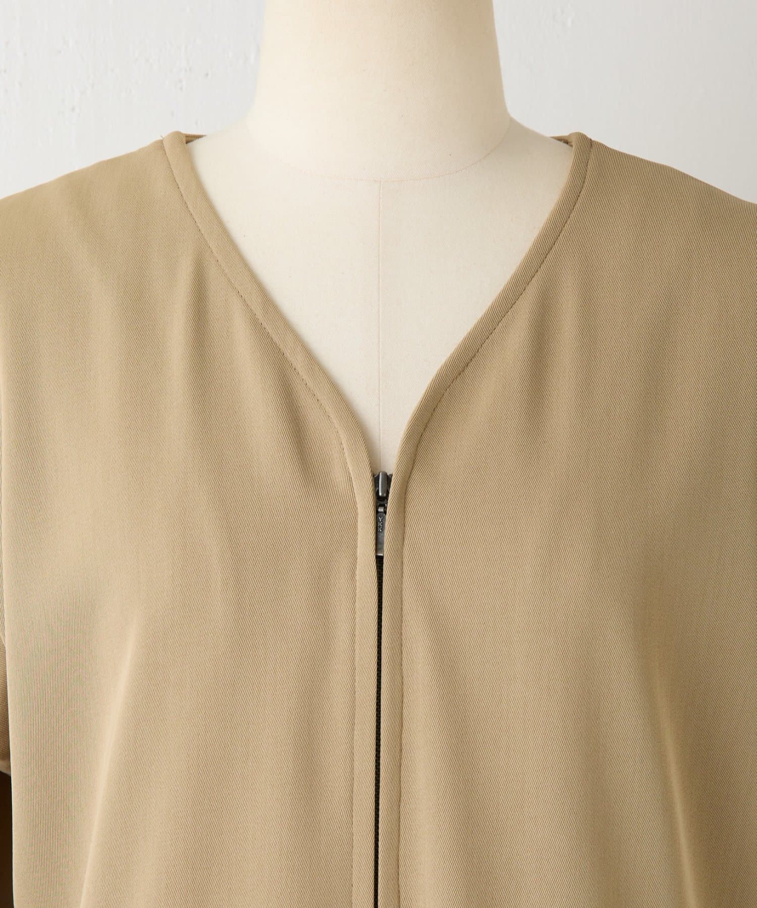 すっきりとしたVネックデザインに、フロントファスナー仕様で着脱のしやすさも魅力です。