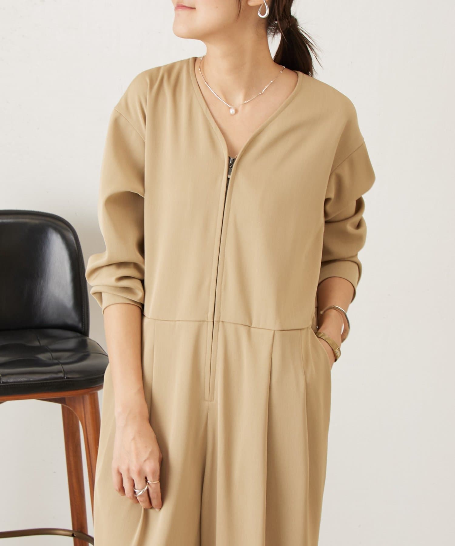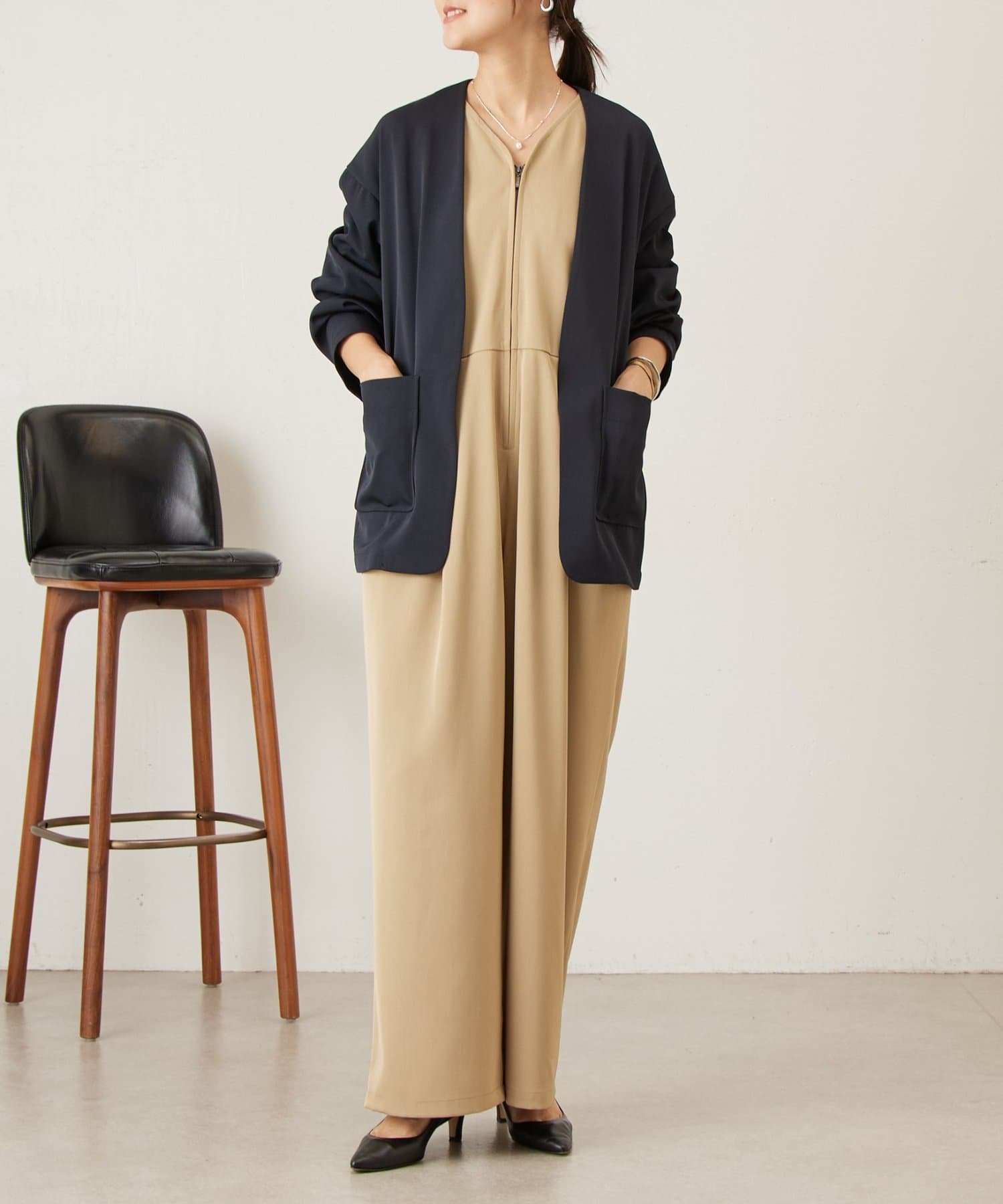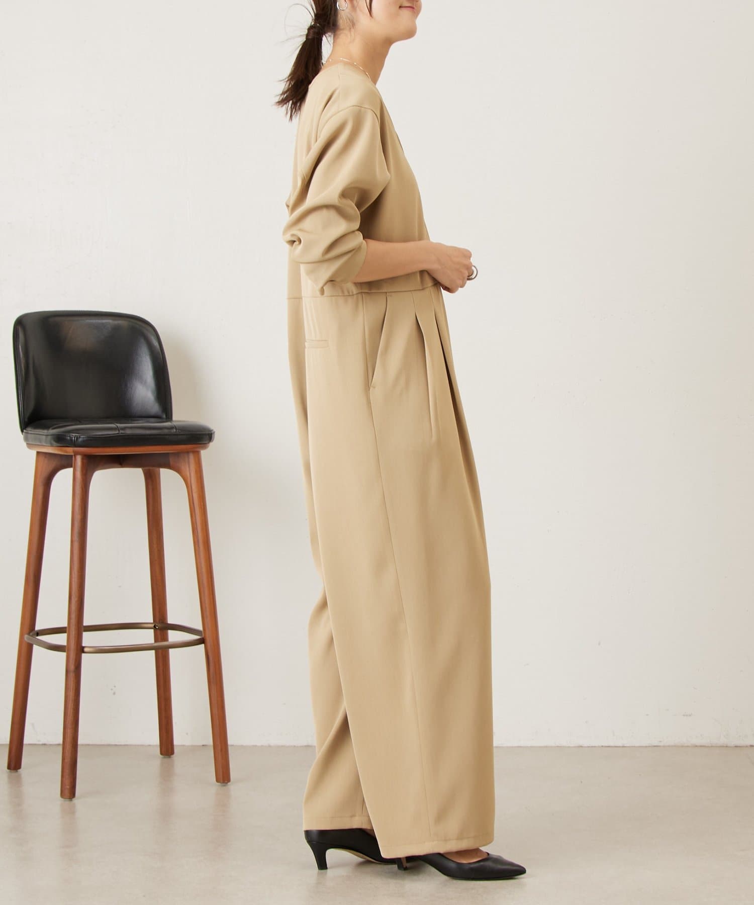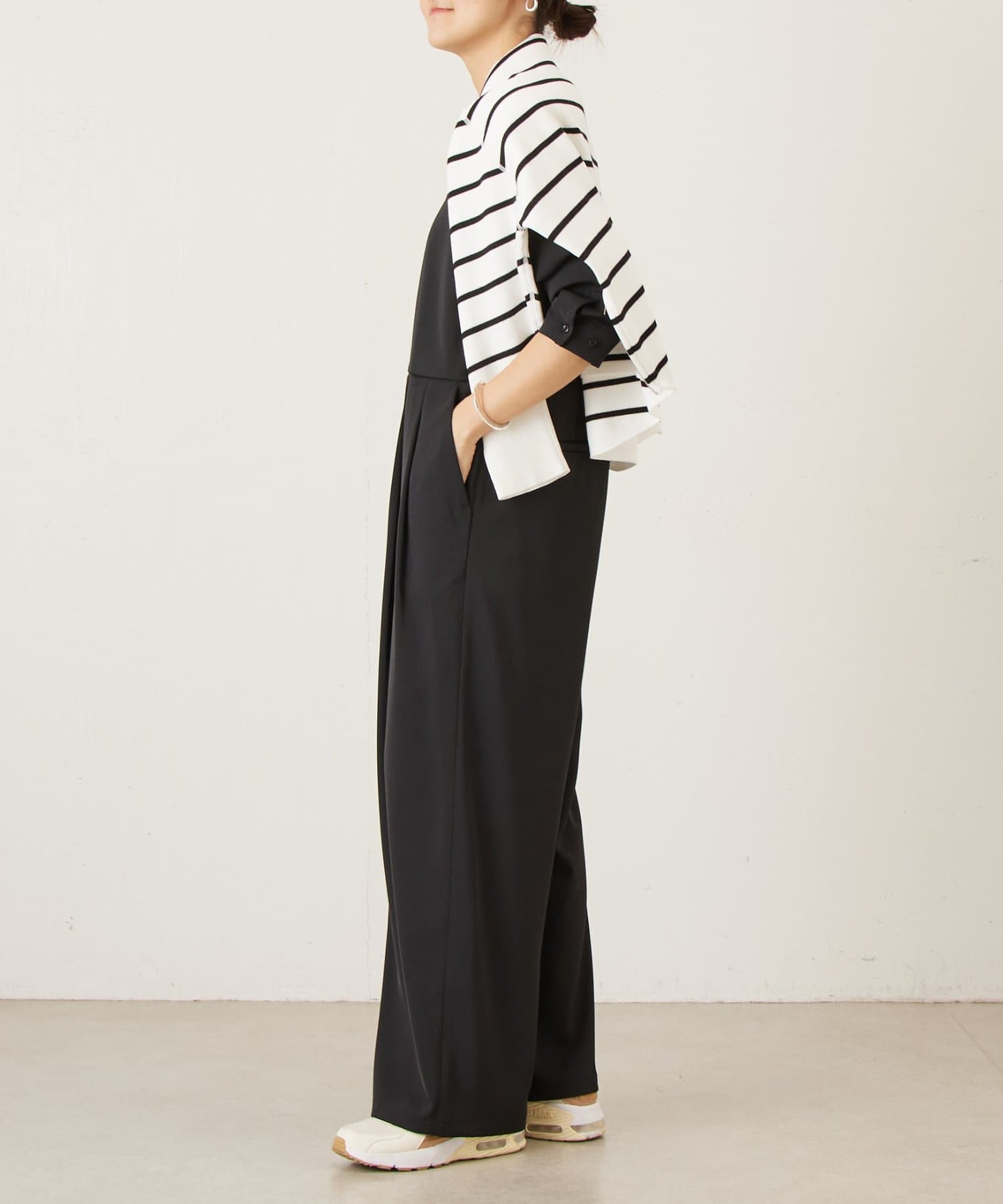 シワになりにくく、程よいハリ感のあるツイル素材を使用したオールインワン。