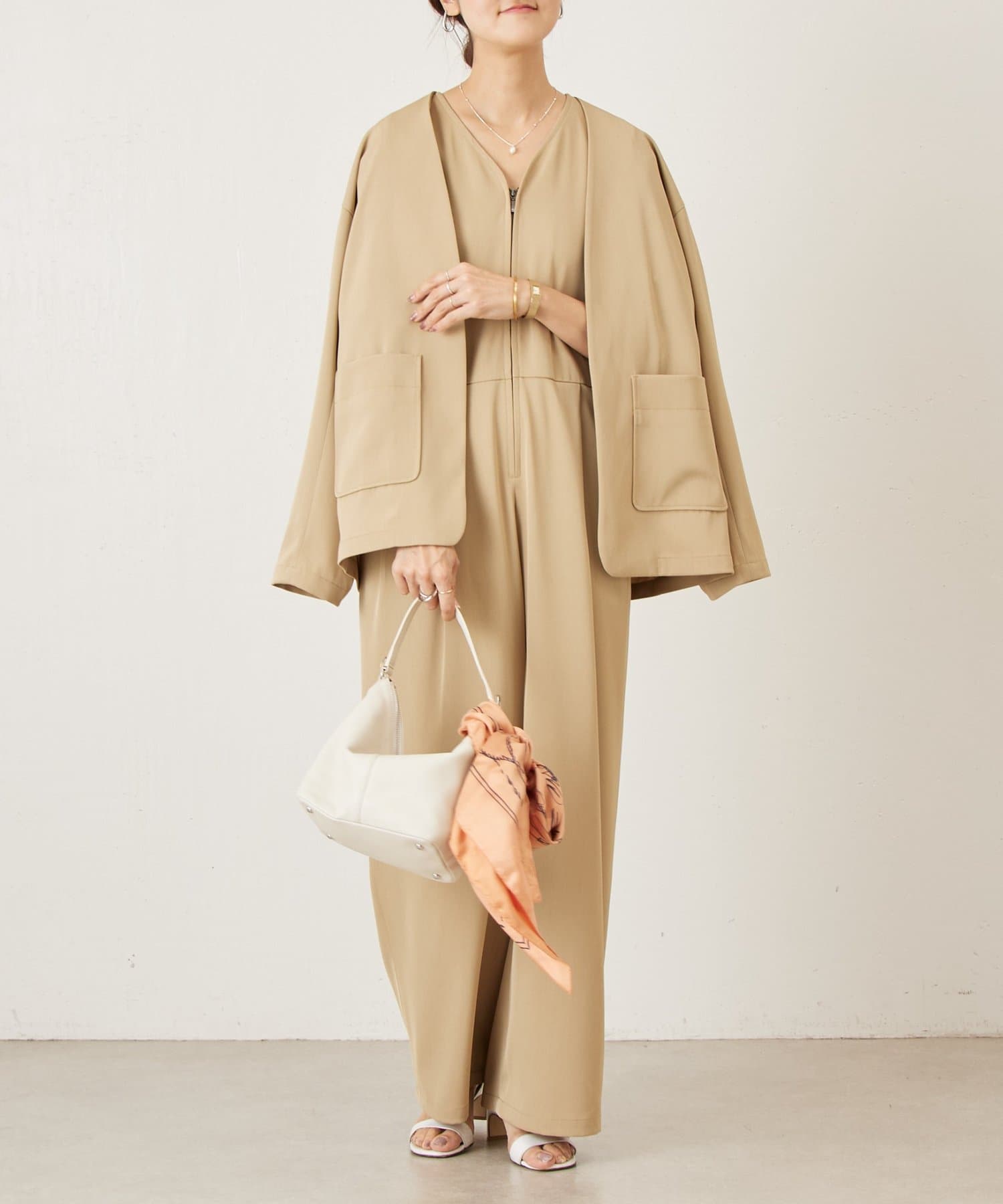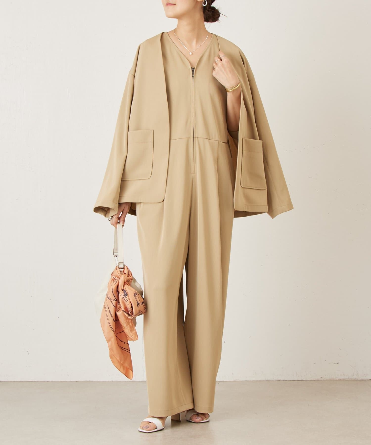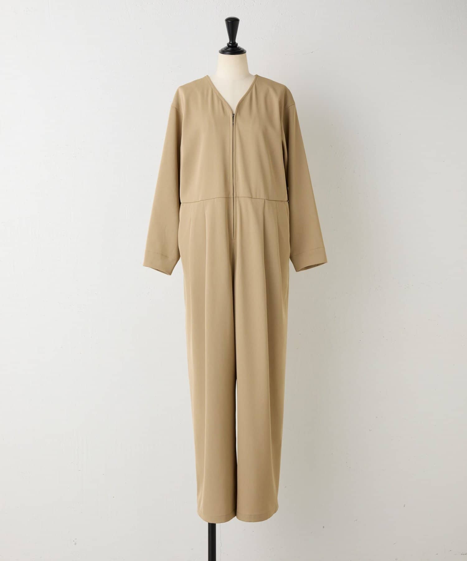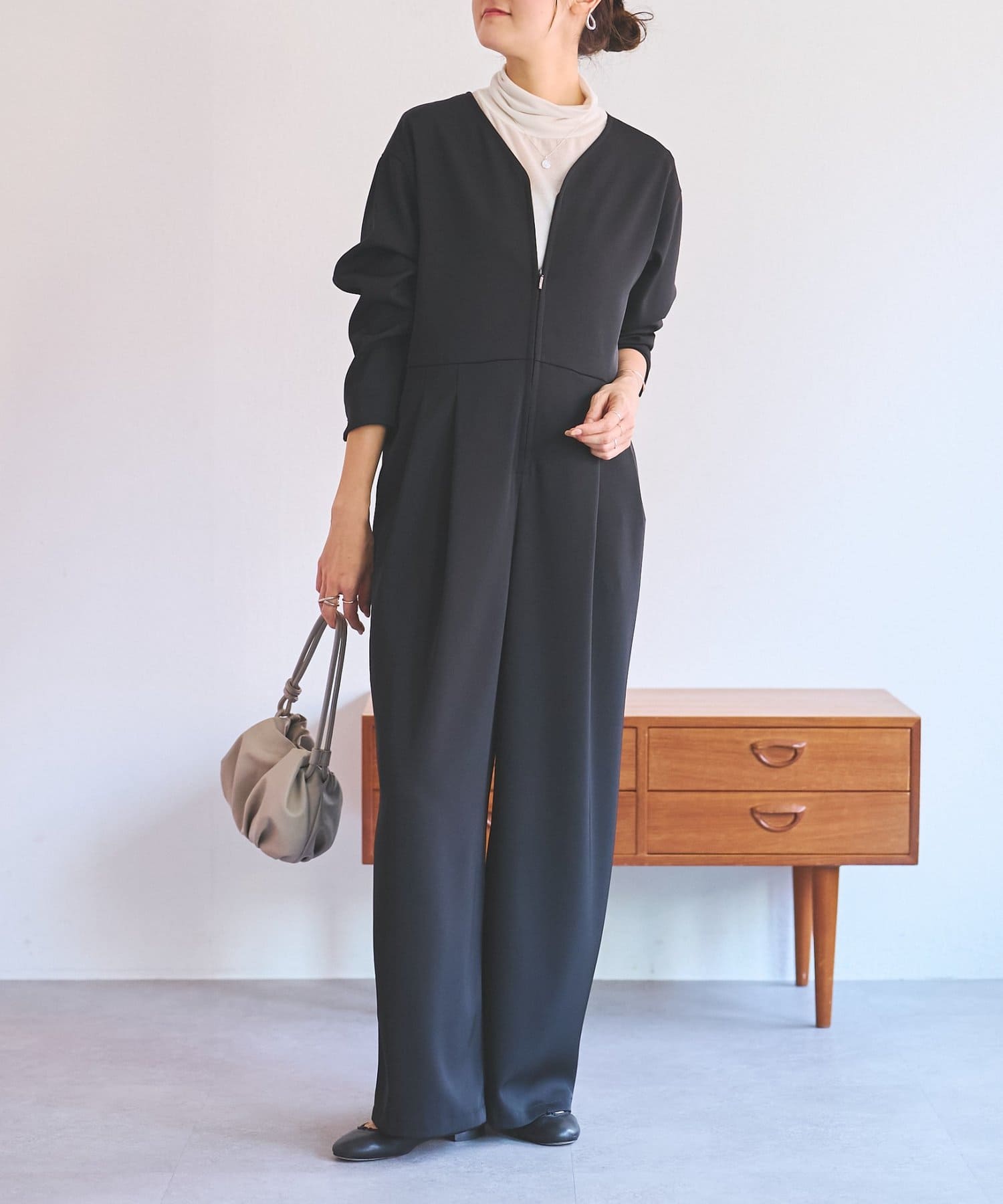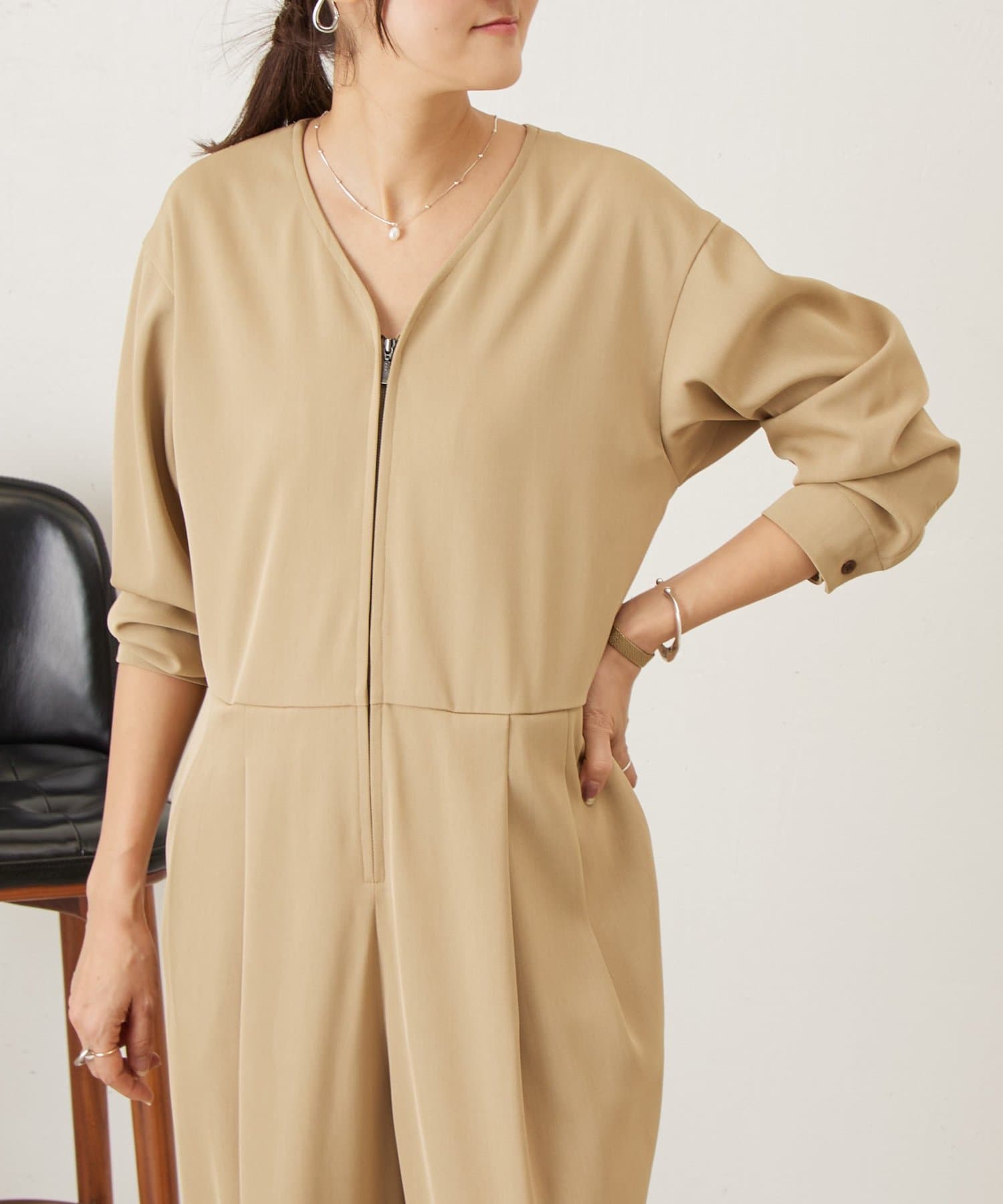 シワになりにくく、程よいハリ感のあるツイル素材を使用したオールインワン。