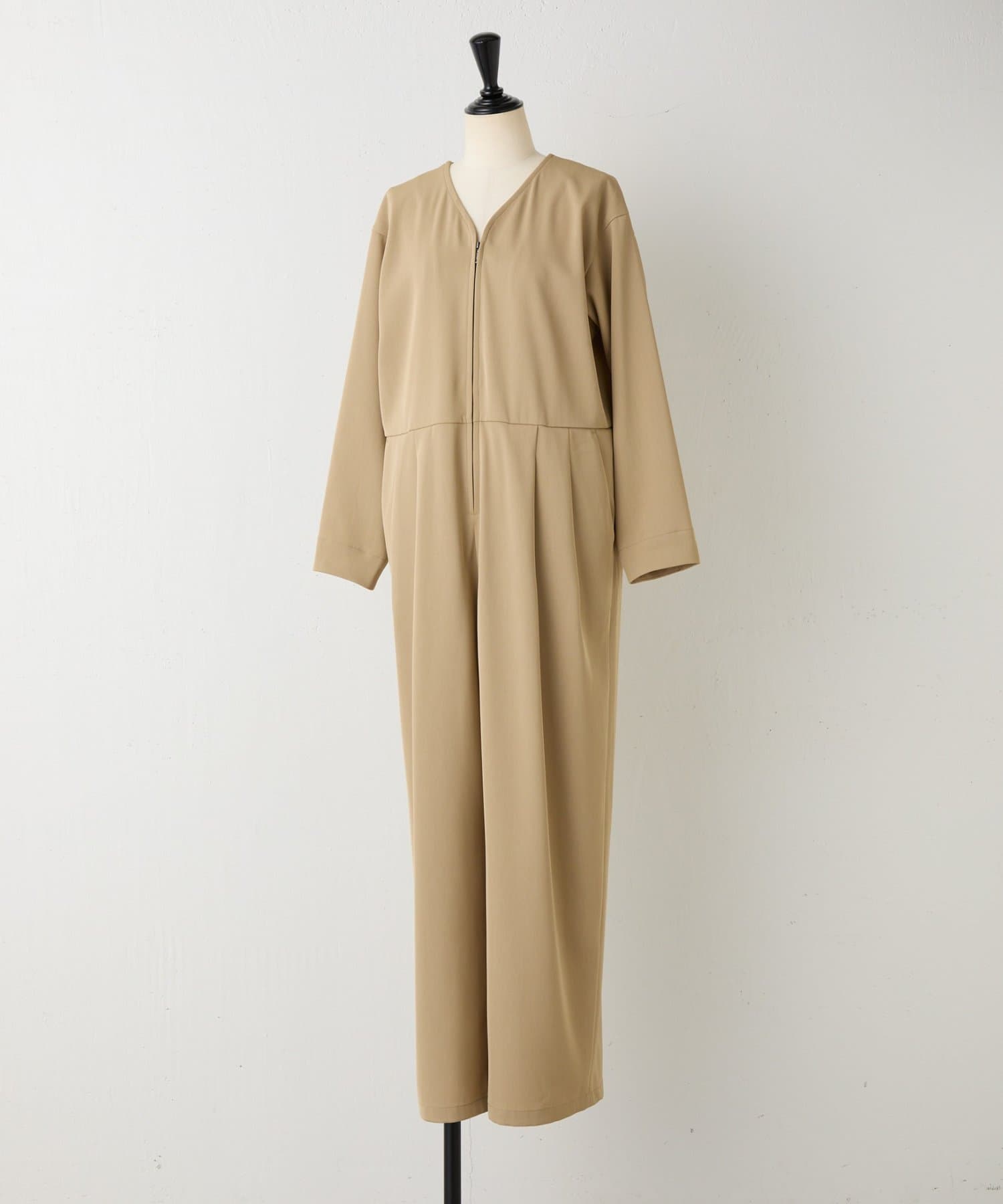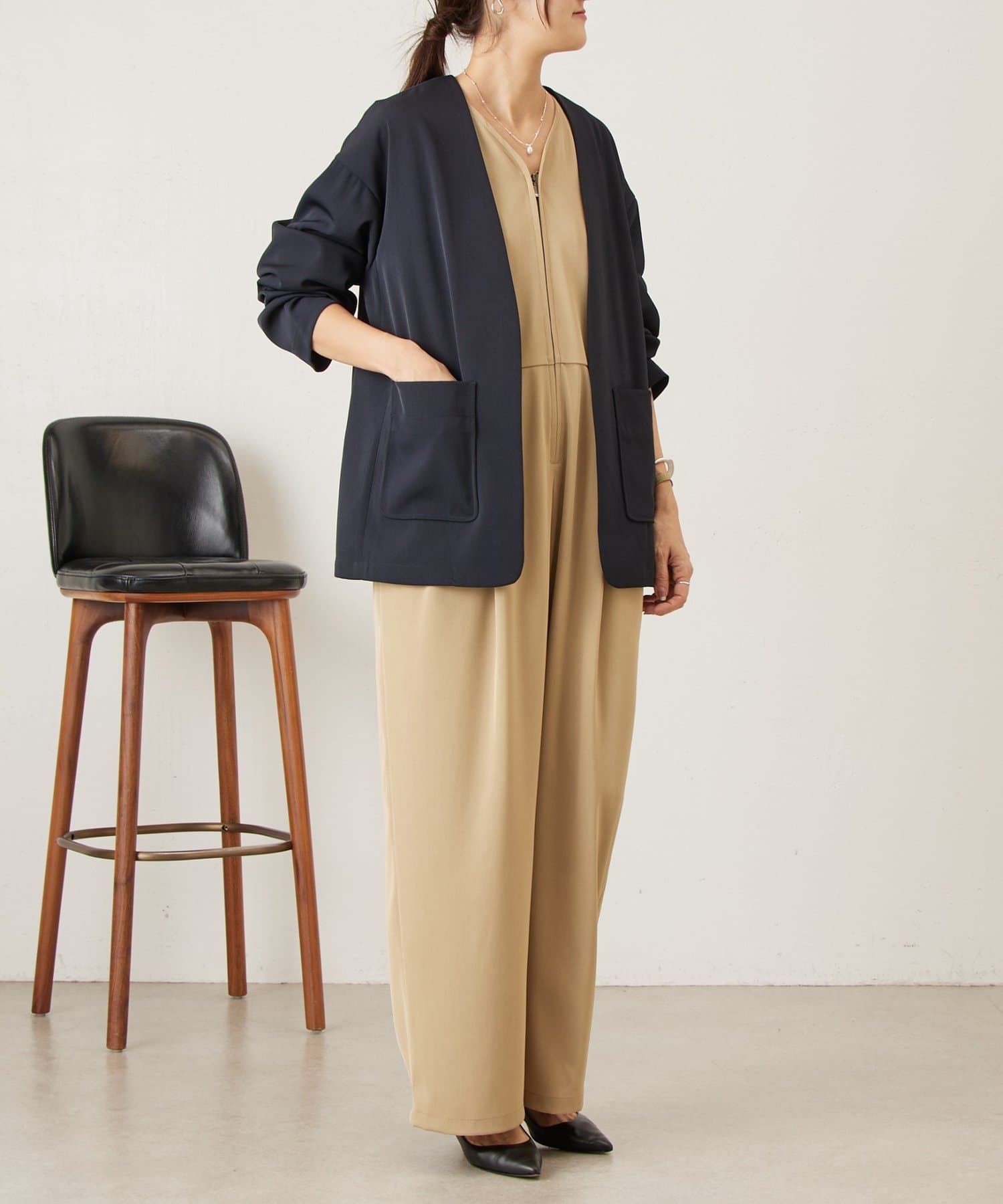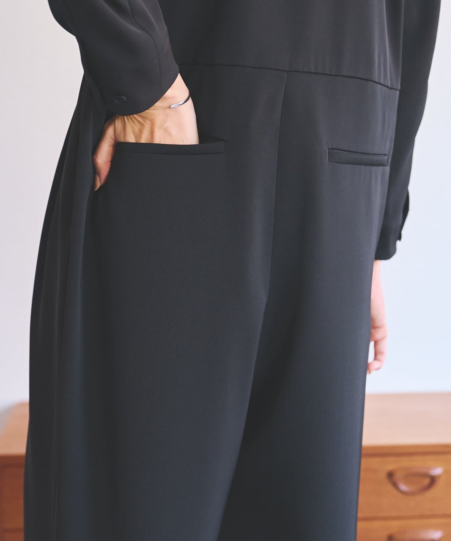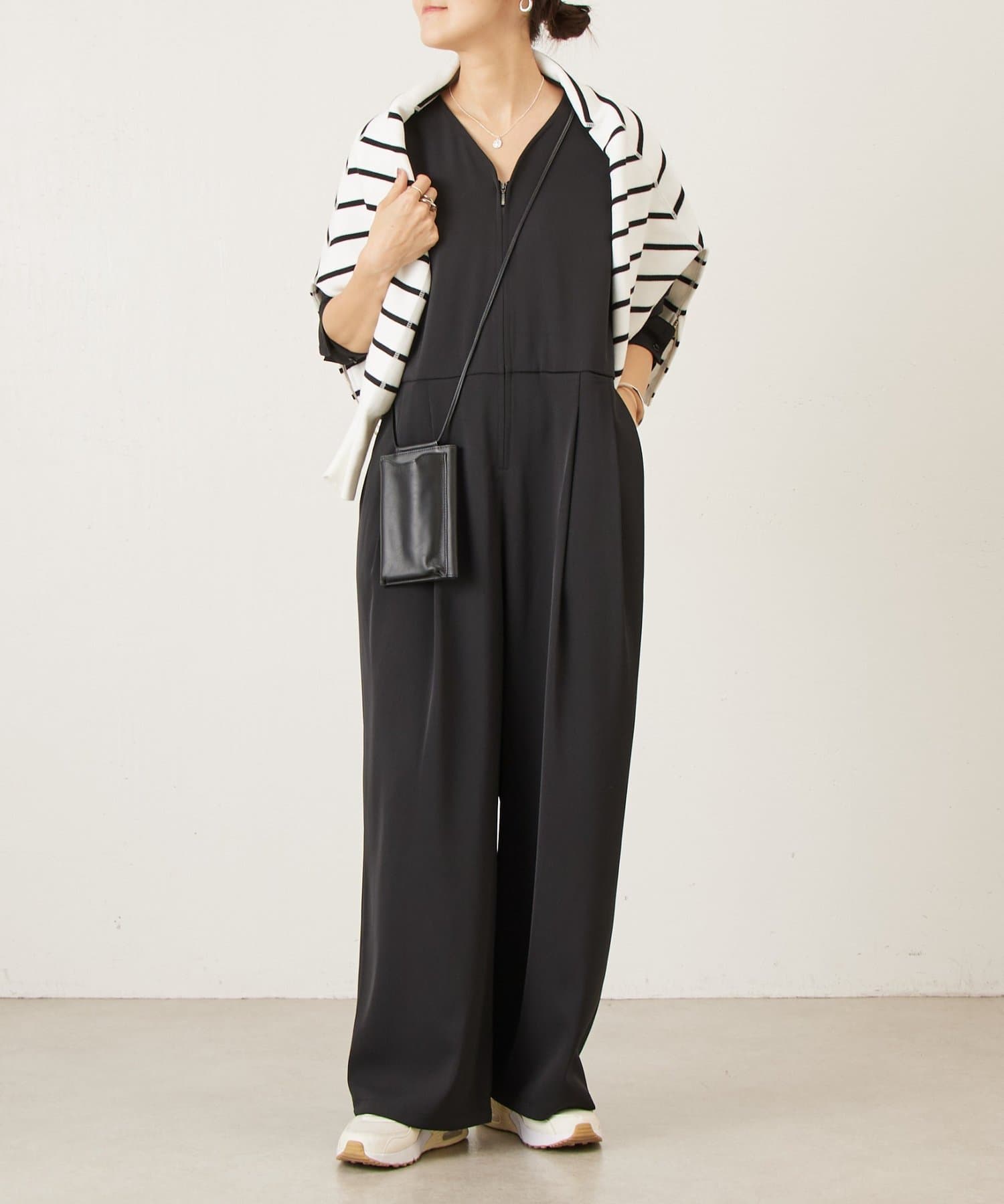 シワになりにくく、程よいハリ感のあるツイル素材を使用したオールインワン。