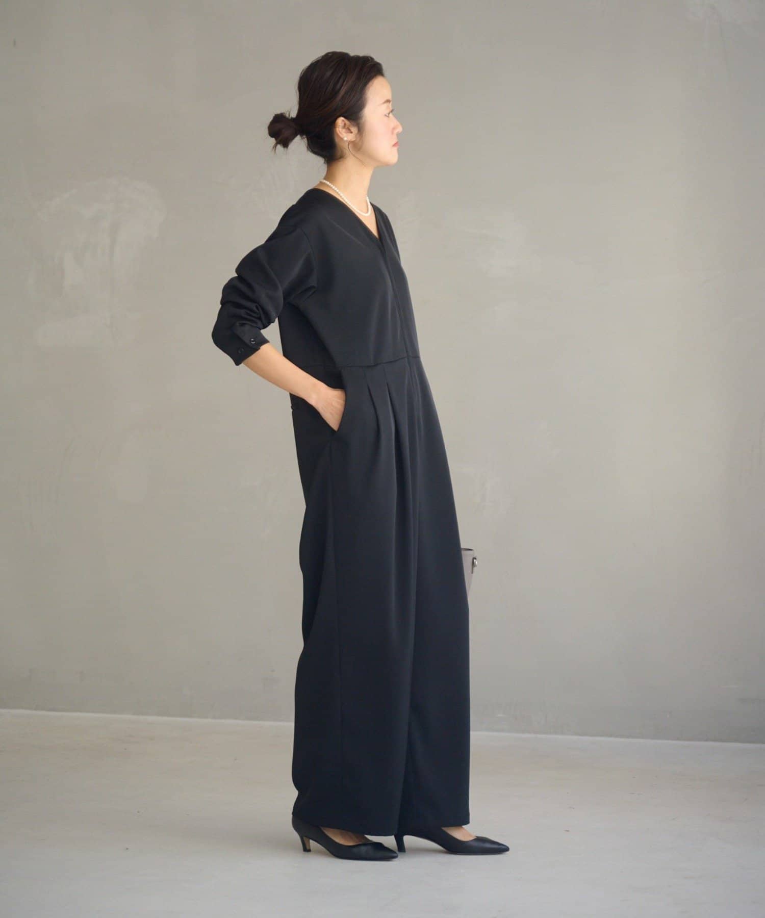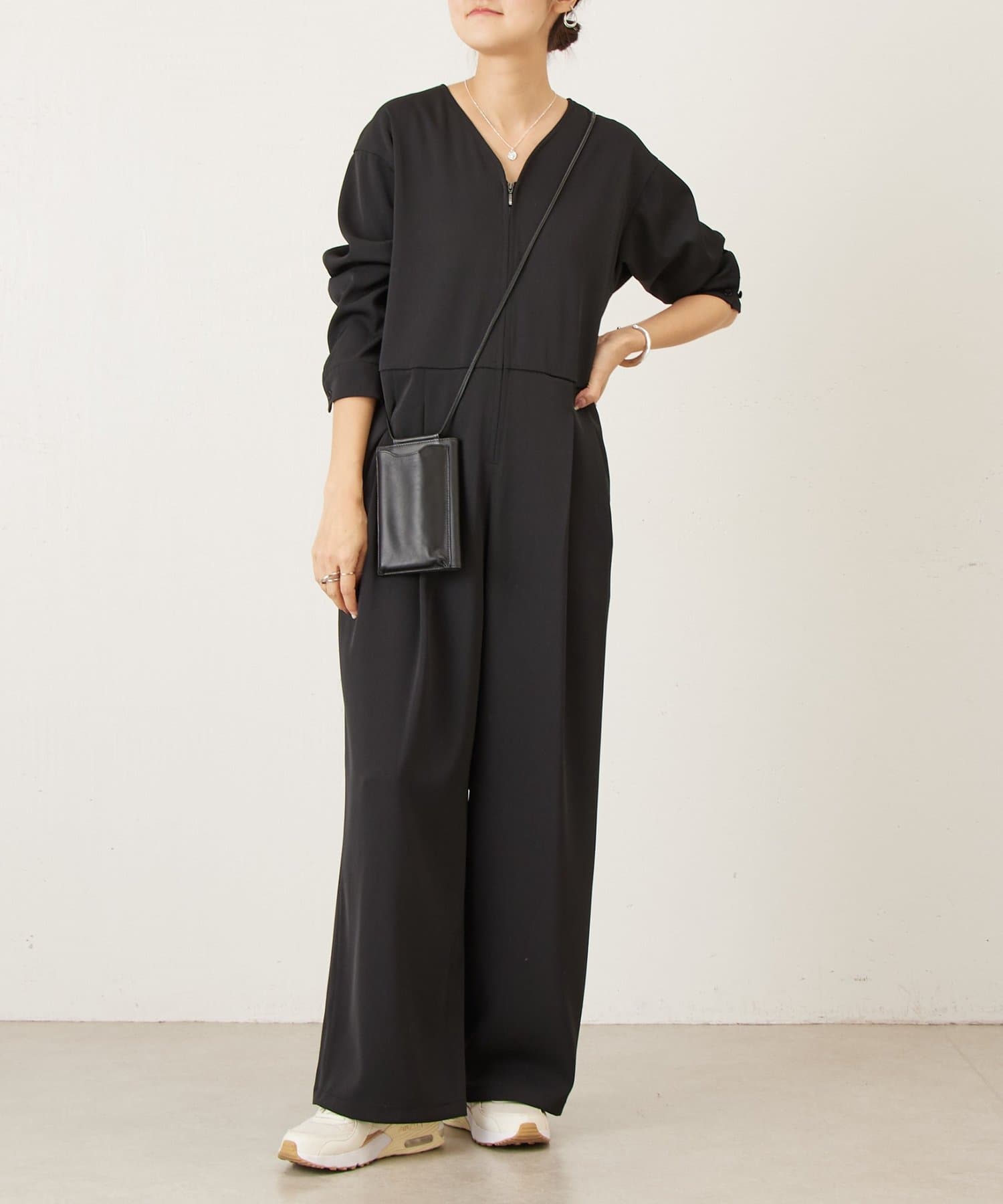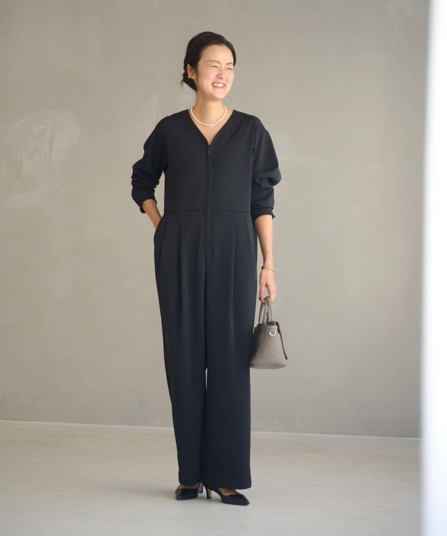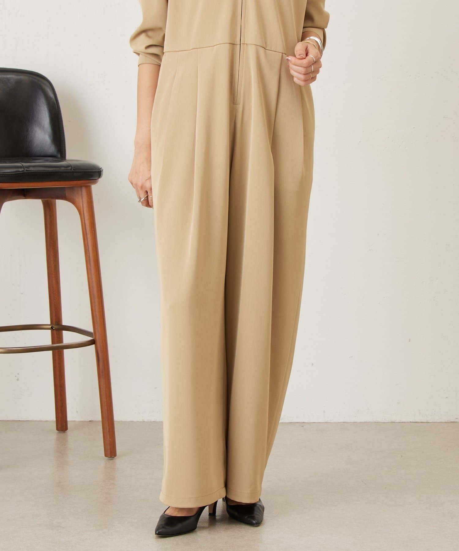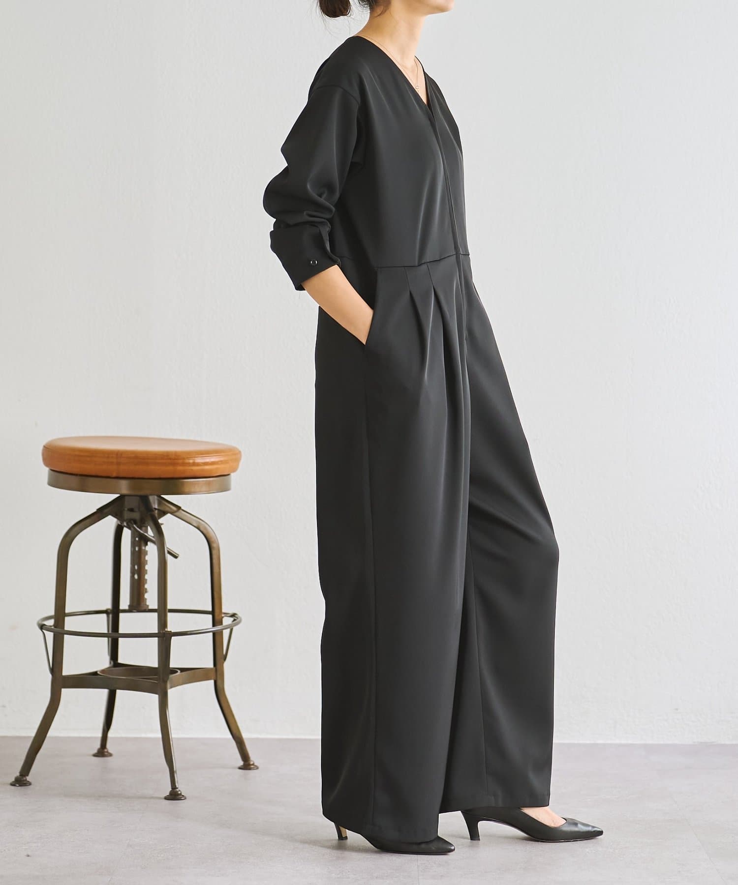 シワになりにくく、程よいハリ感のあるツイル素材を使用したオールインワン。