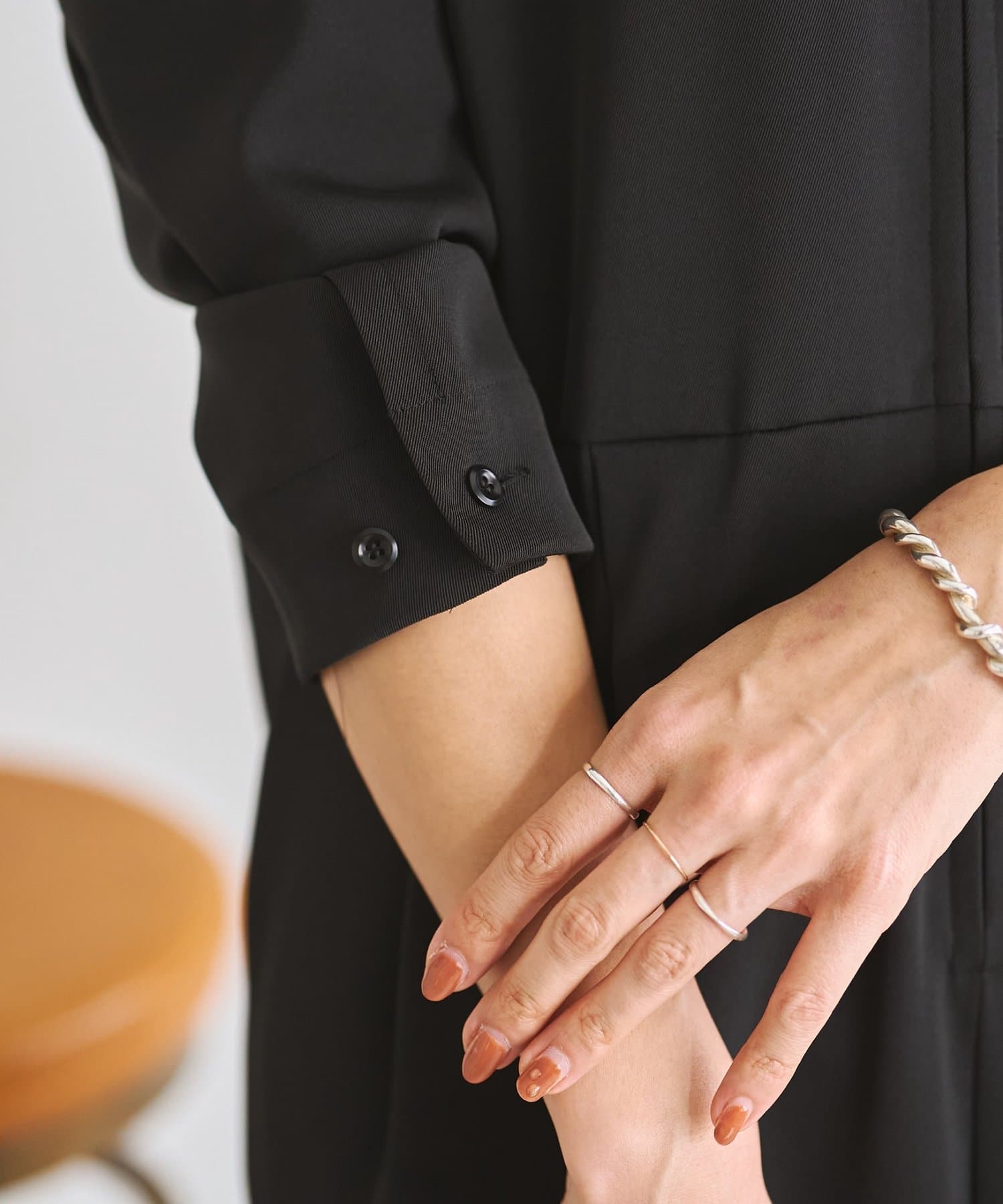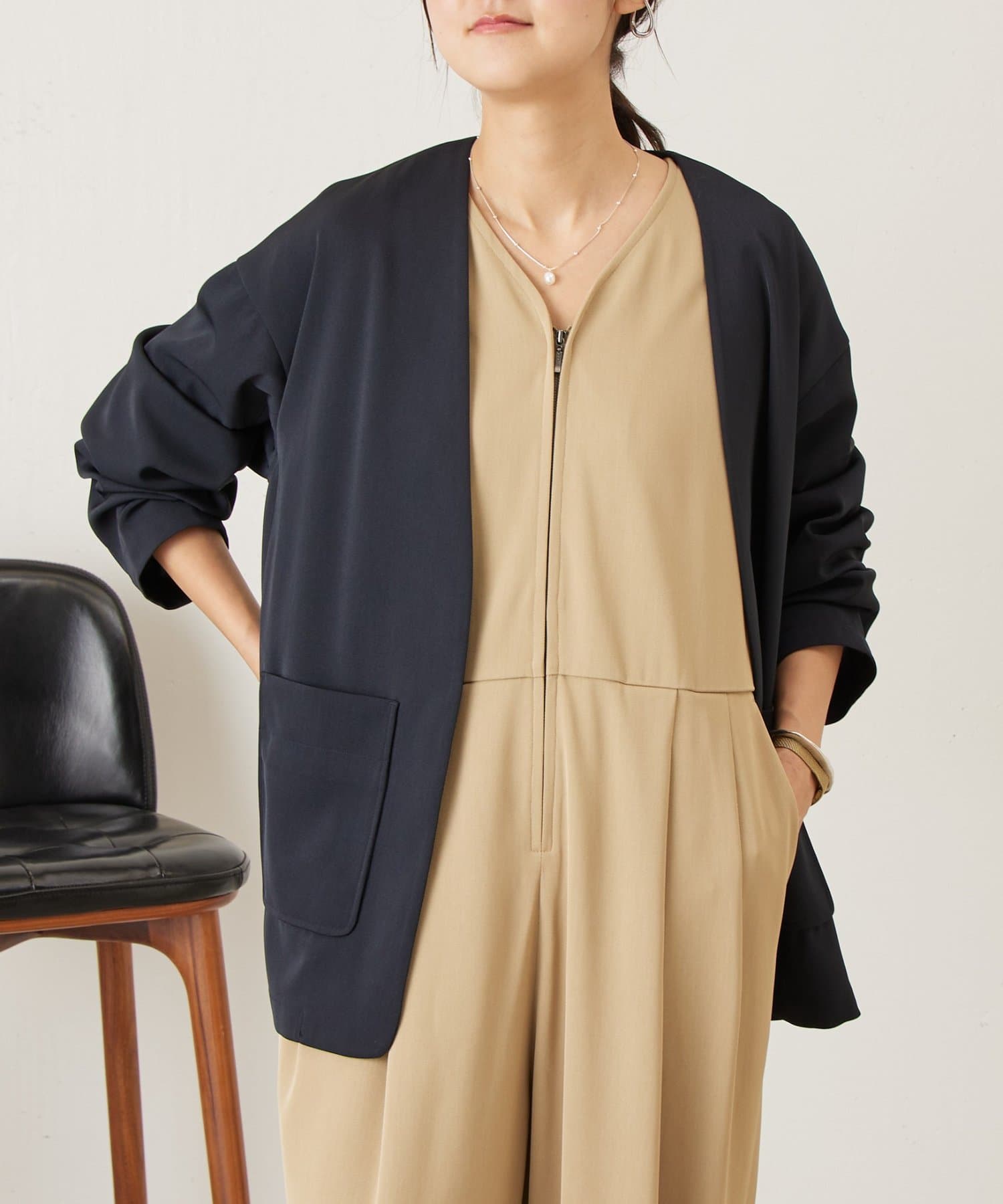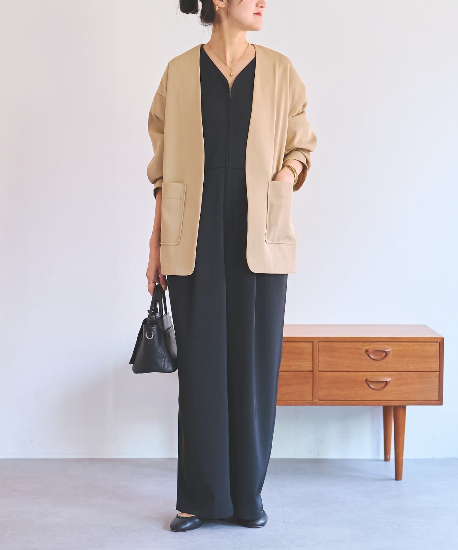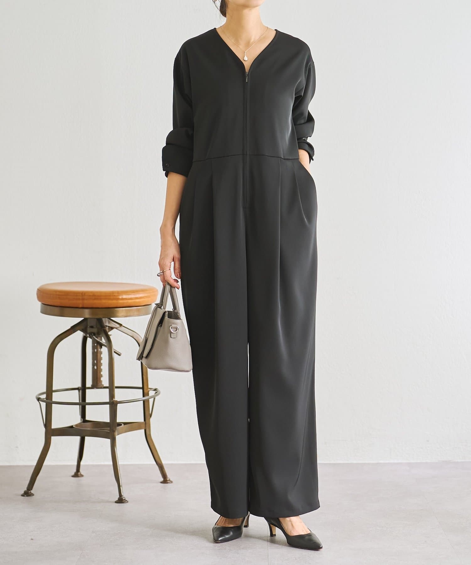 シワになりにくく、程よいハリ感のあるツイル素材を使用したオールインワン。