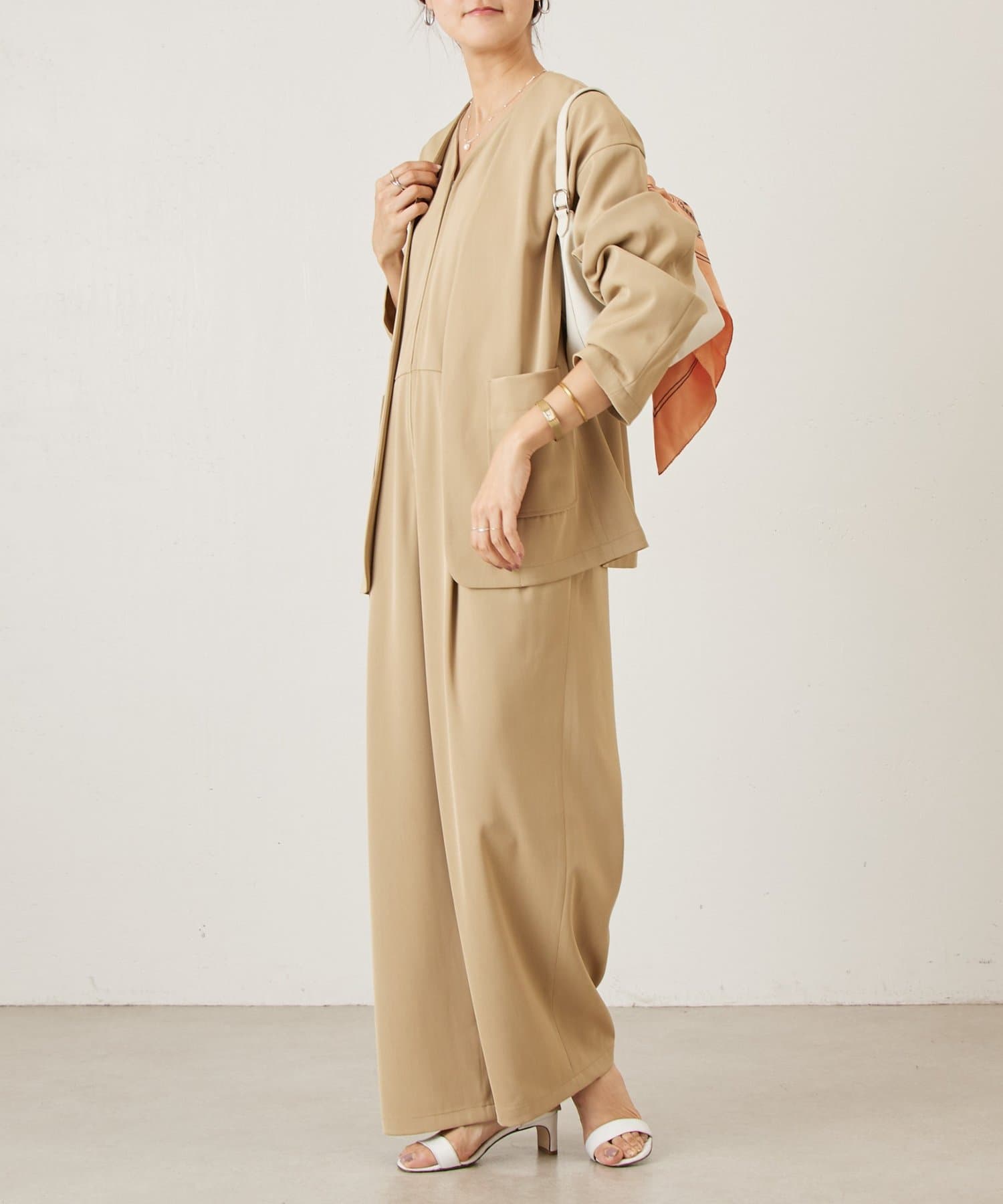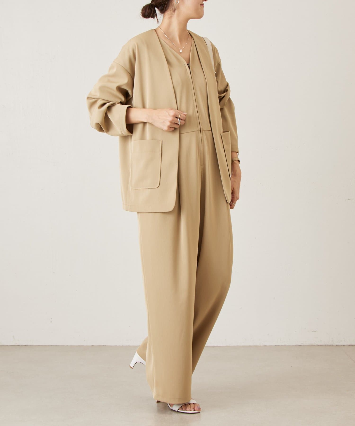 同素材のジャケットを合わせれば、セットアップとしても着用可能。