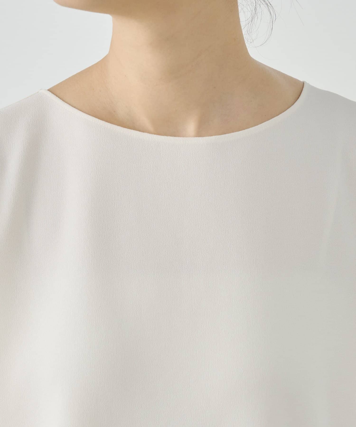 程よい厚みがありストレッチ性に優れているので体のラインを拾わず、シワになりにくいのもポイント。