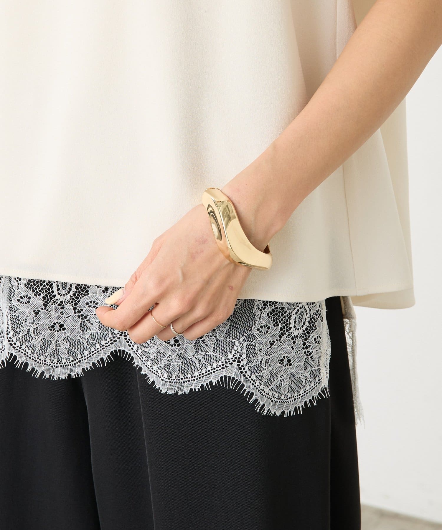 インナーのレースを裾から覗かせた綺麗めなスタイリングもおすすめ。