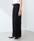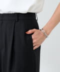 フロントのタックでウエストまわりはカバーしつつ、気になる脚のラインを拾わない絶妙なシルエットのストレートパンツ。