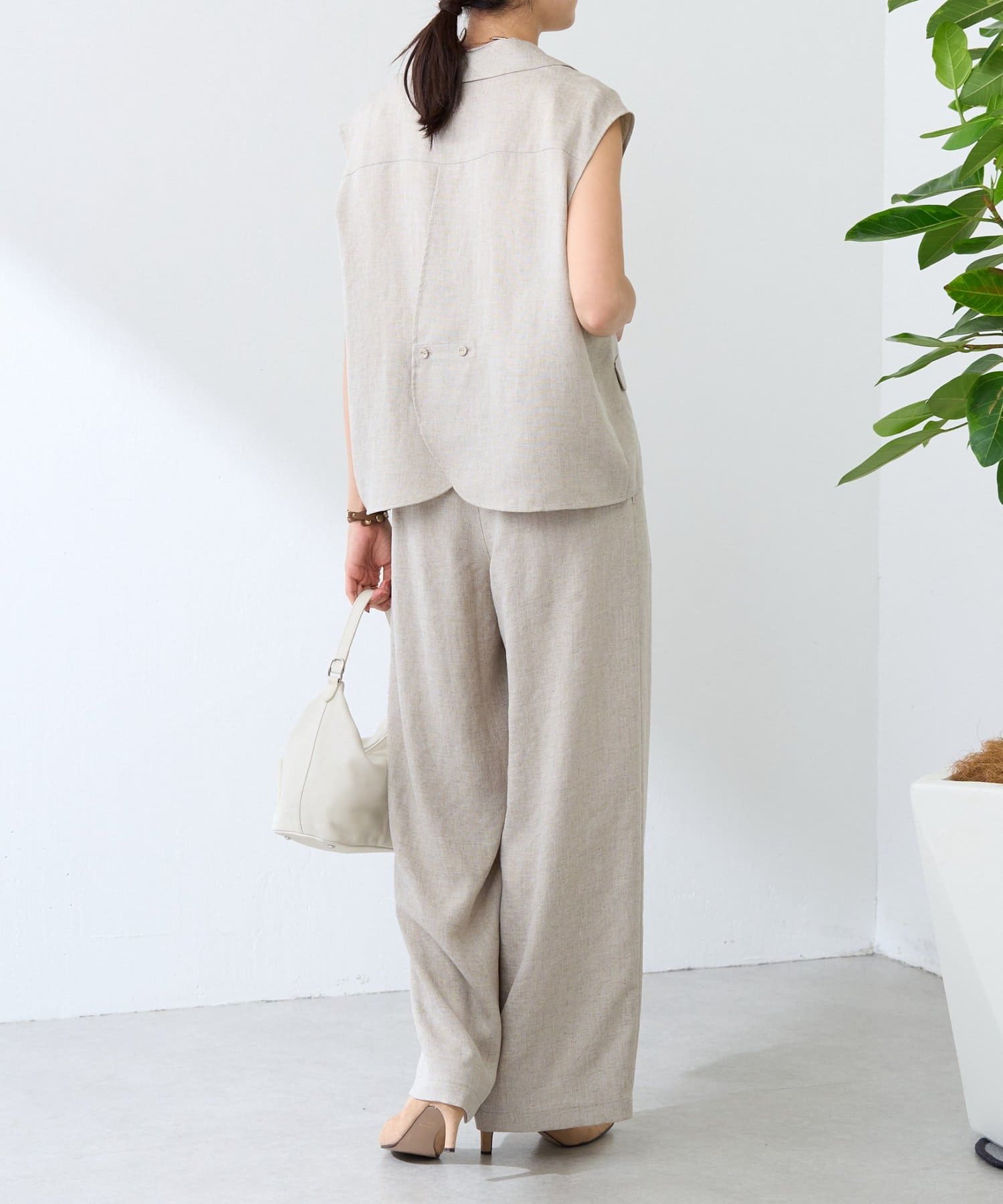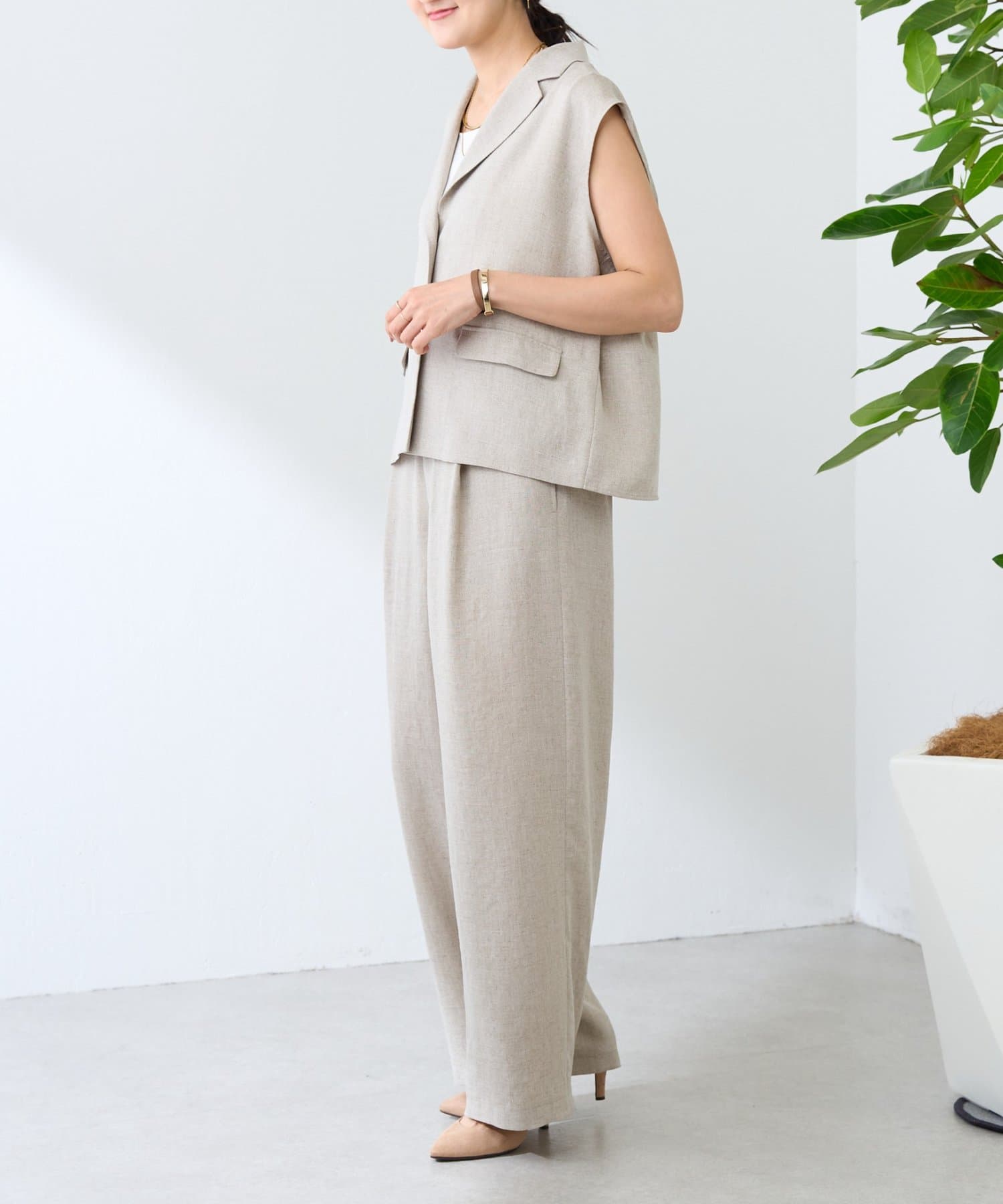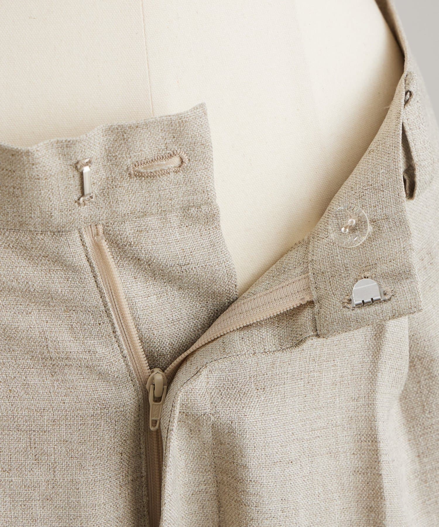ナチュラルな表情のリネンライク素材を使用し、涼しげな生地感ですがシワになりにくくイージーケアなのも嬉しいポイント。
