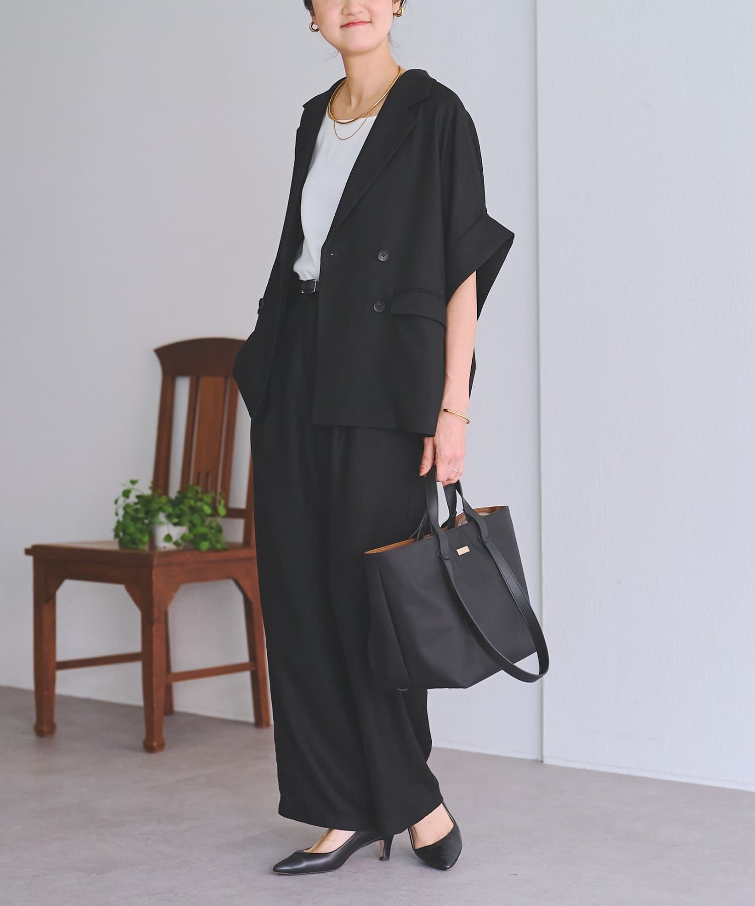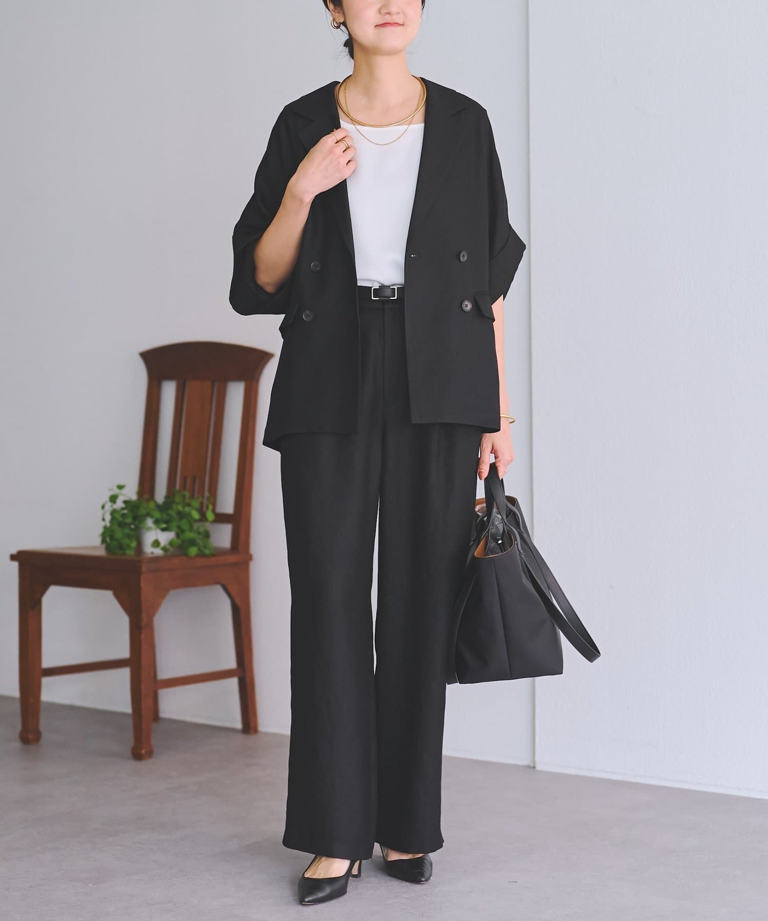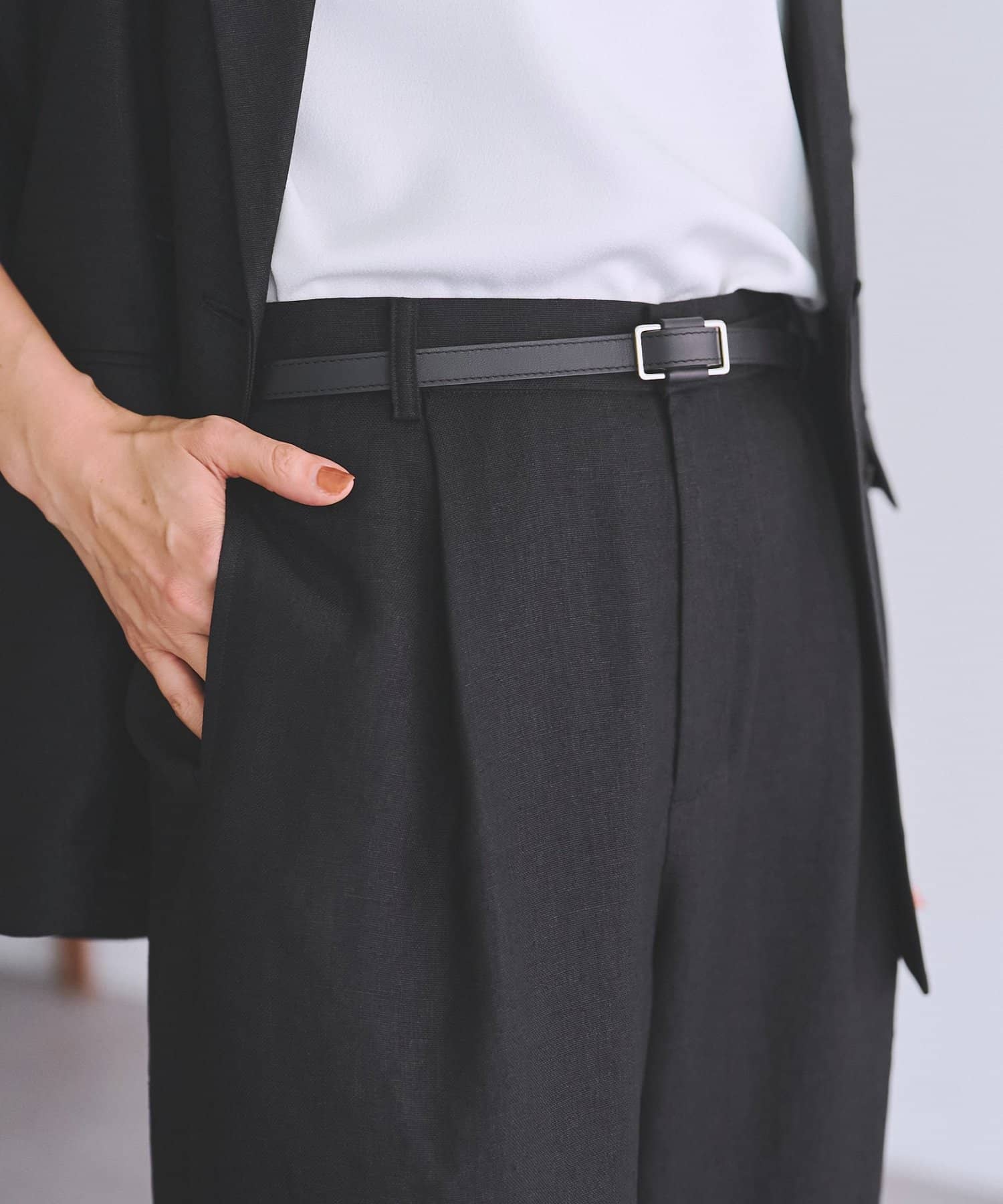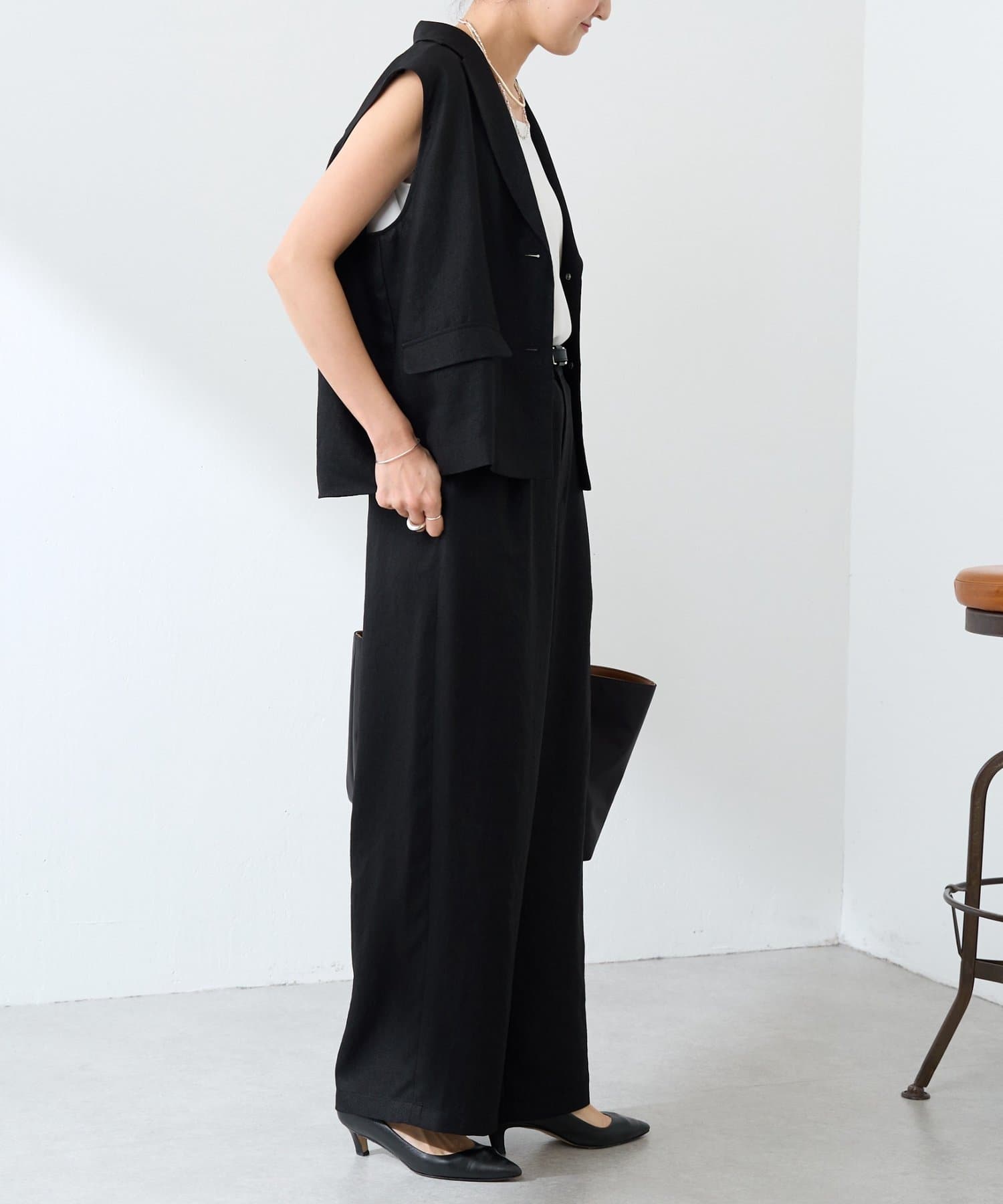 同素材のブラウスやジレと合わせたセットアップで揃えておくと暑い時期にコーデに悩まない"カセット服"として重宝しますし、