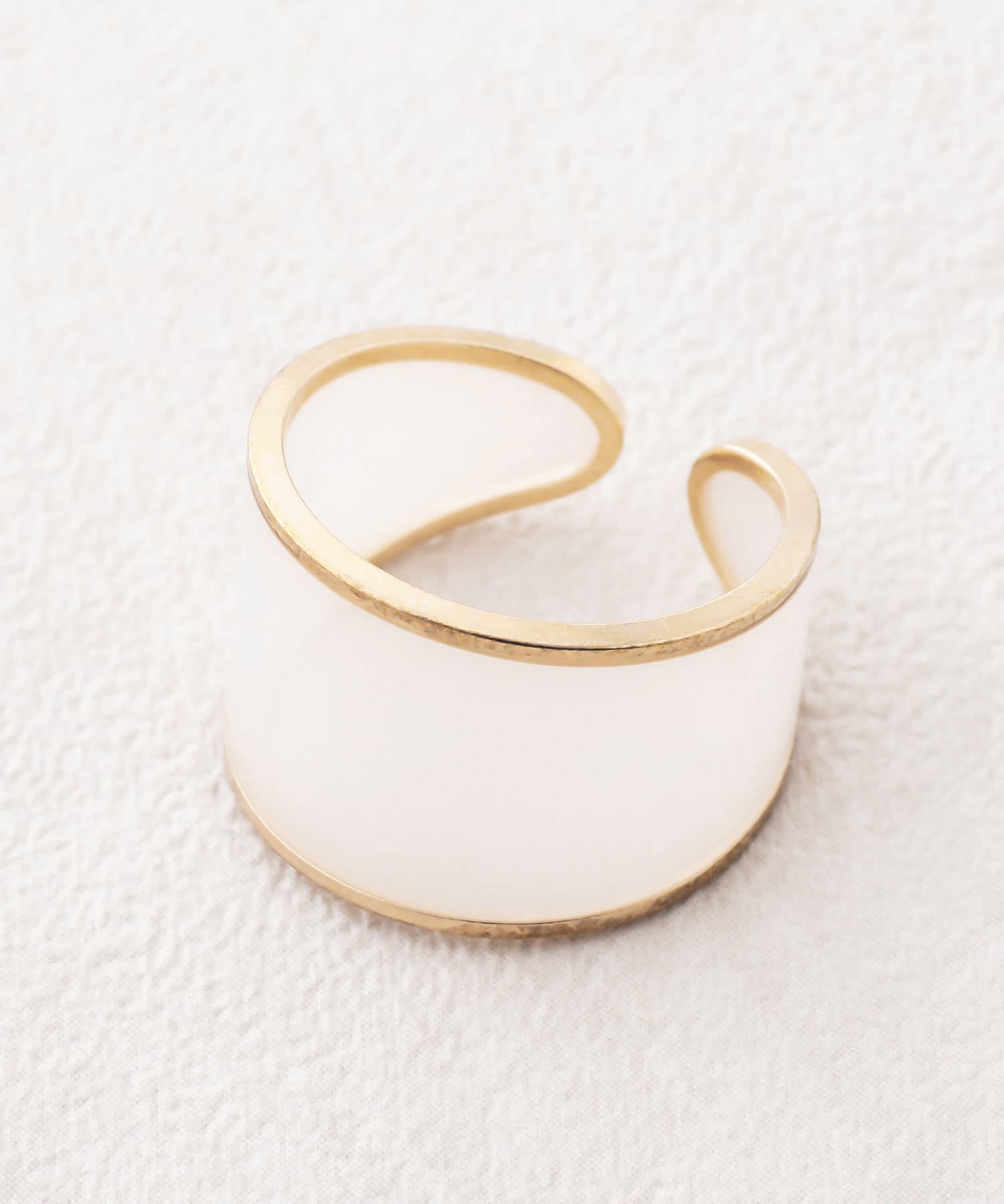 クリアにホワイトペイントがおしゃれなこのリング、まだ一度もつけていませんが、これから身に着ける日を楽しみにしています。