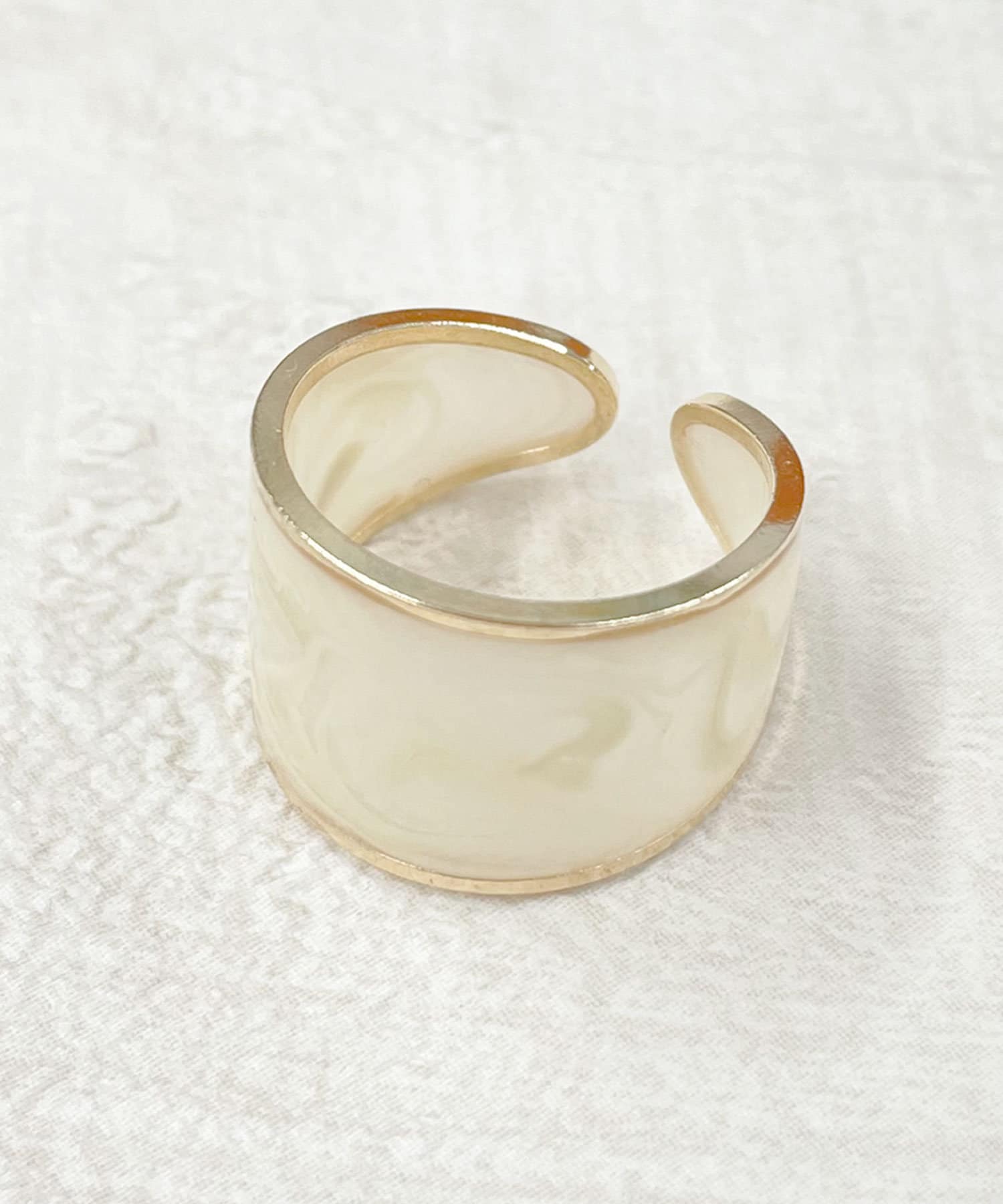アイボリーとホワイトのマーブルカラーのリングも一緒に買いました。その日の気分に合わせて着け替えを楽しみます。オールシーズンいけそうなアイテムですね。とてもおしゃれです。ブラウンも欲しかったのですが完売・・・けれど、それ以外のカラーはすべて揃えられて嬉しいです。
