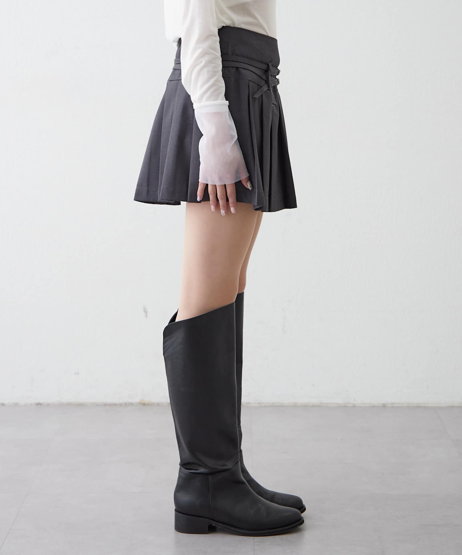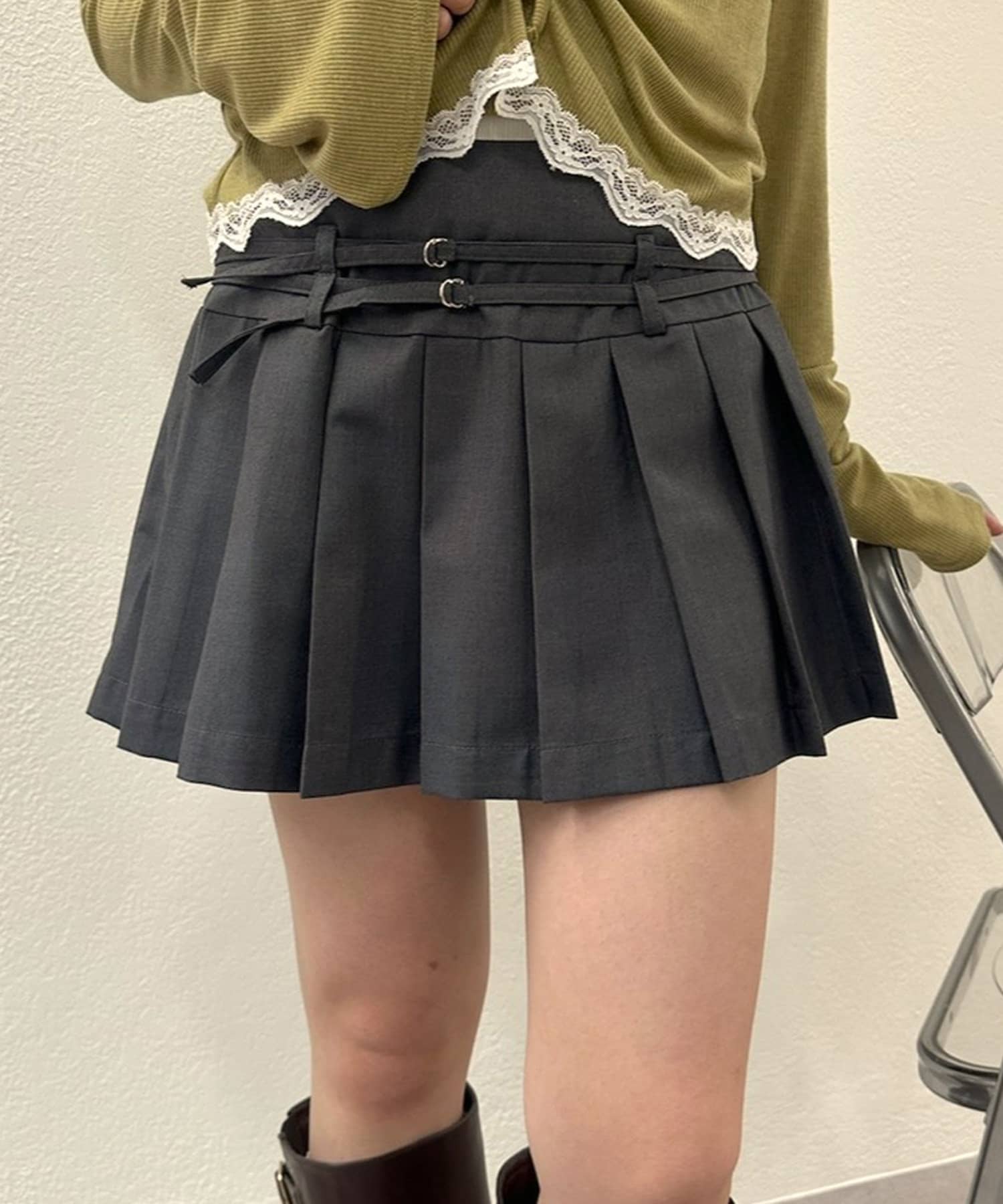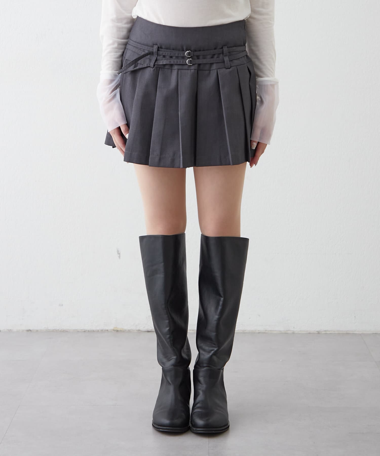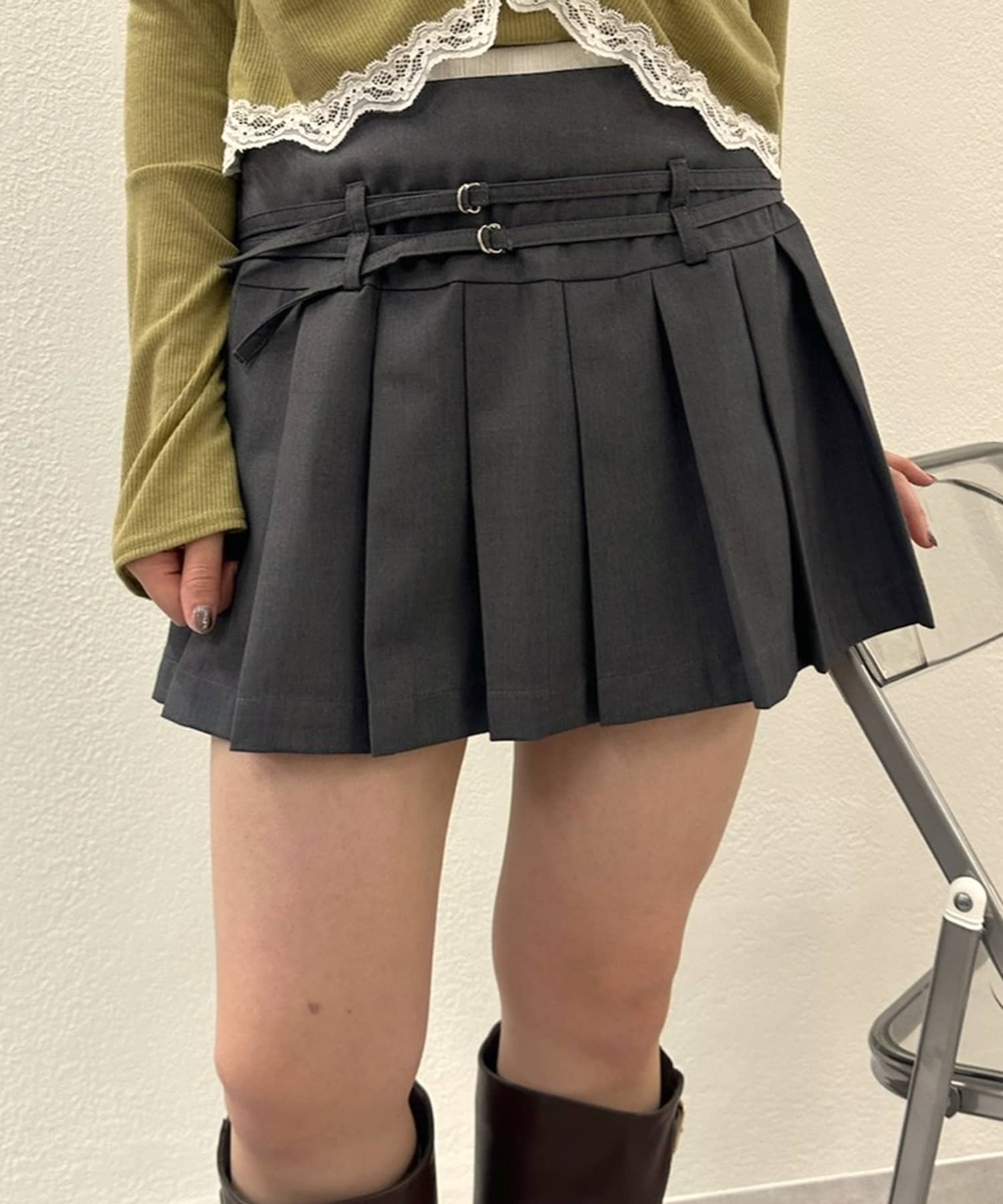 Wベルトがポイントのkorean styleが叶うプリーツスカート♡