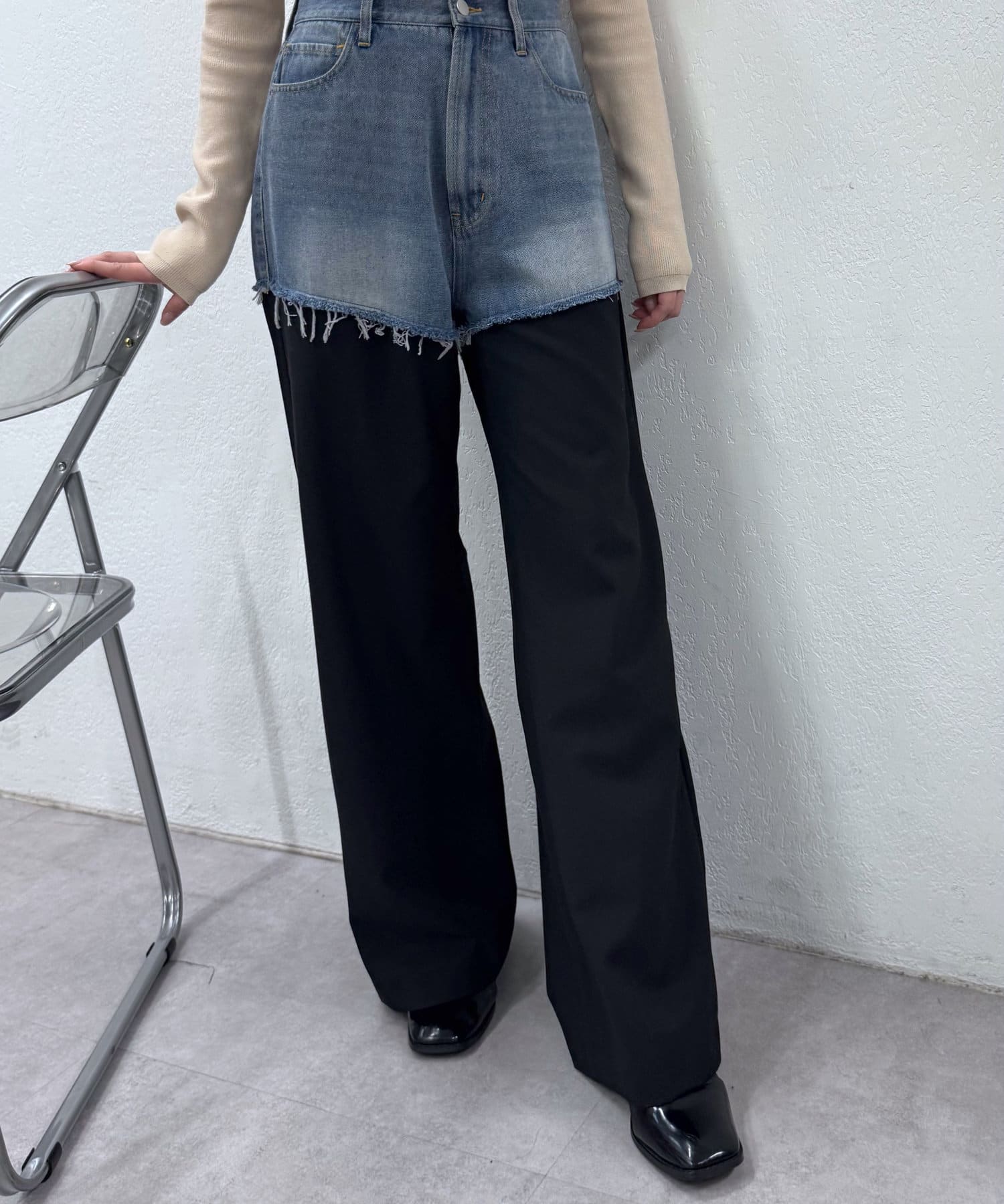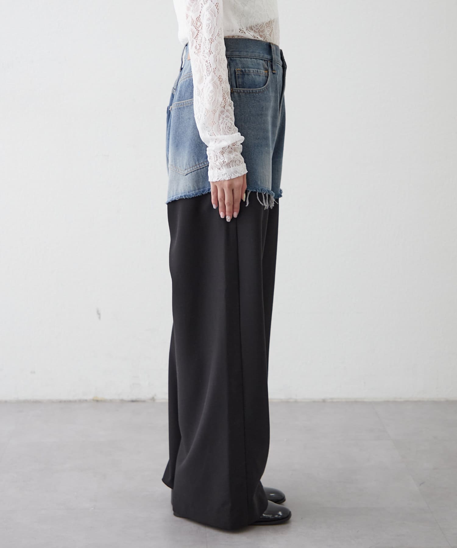 ・落ち感が綺麗なワイドパンツがドッキングした、唯一無二のデザインパンツ!