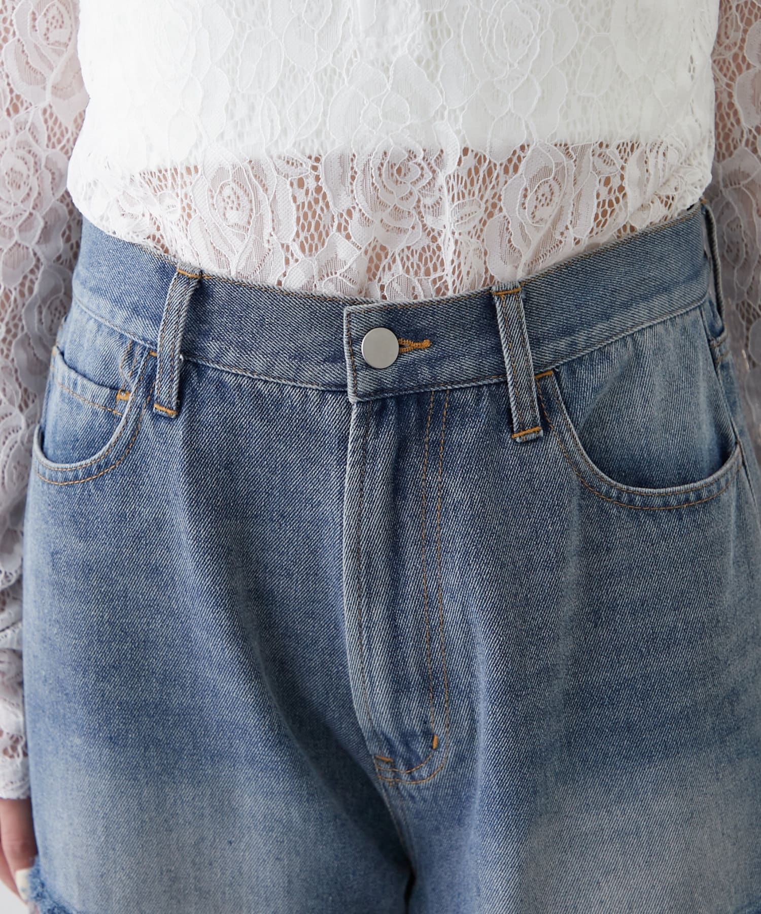 ・デニムの程よく色落ちした風合いが、こなれた雰囲気を演出します◎