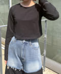 ロゴがポイントになりつつ、シンプルで使いやすいクロップド丈ロンT