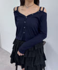・シンプルなデザインながら、ダブルストラップの肩紐や、ボタン使いがさりげないアクセントに。