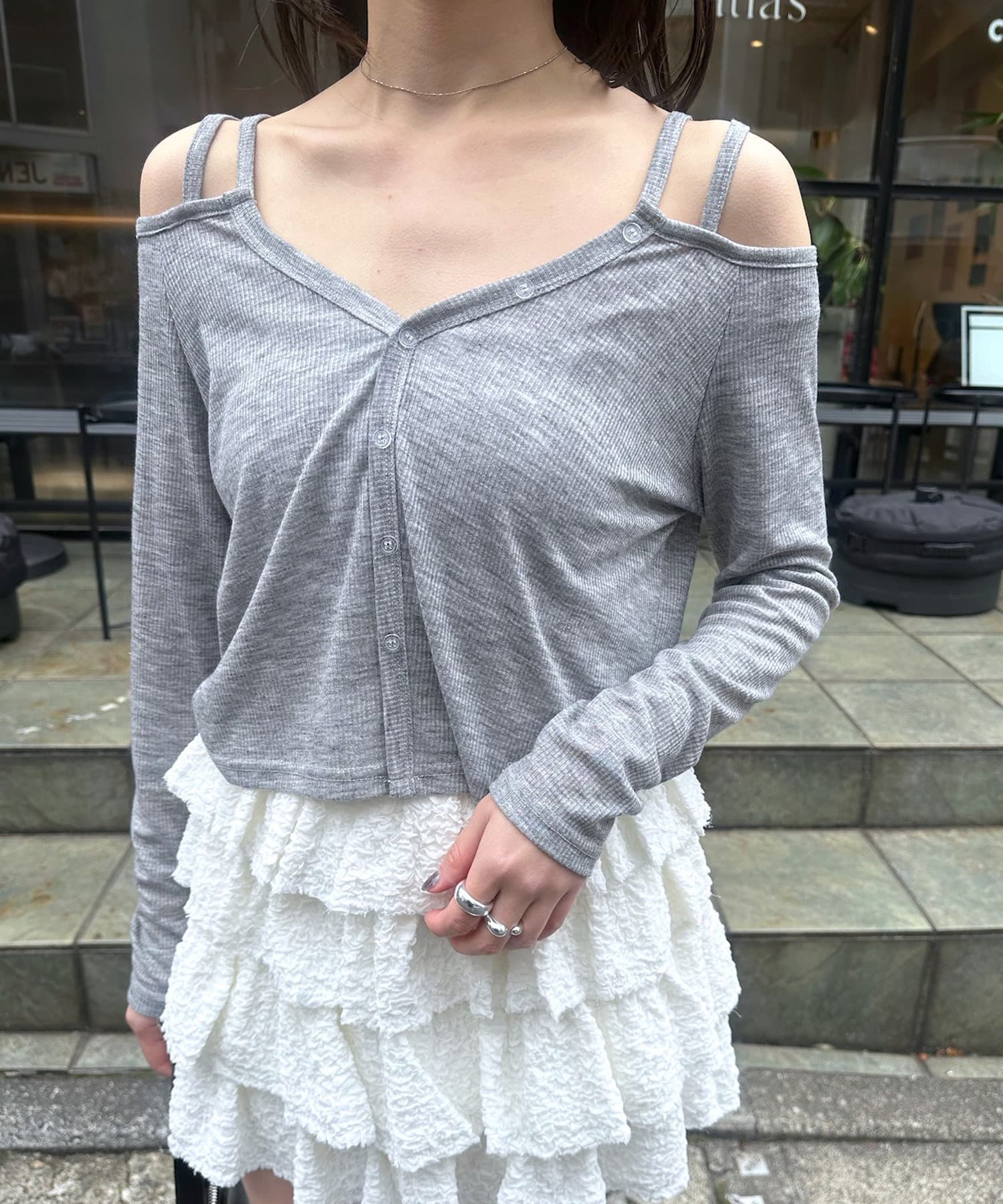 ・程よく肌見せできるオフショルダーデザインが、女性らしい魅力を引き立ててくれます。