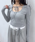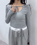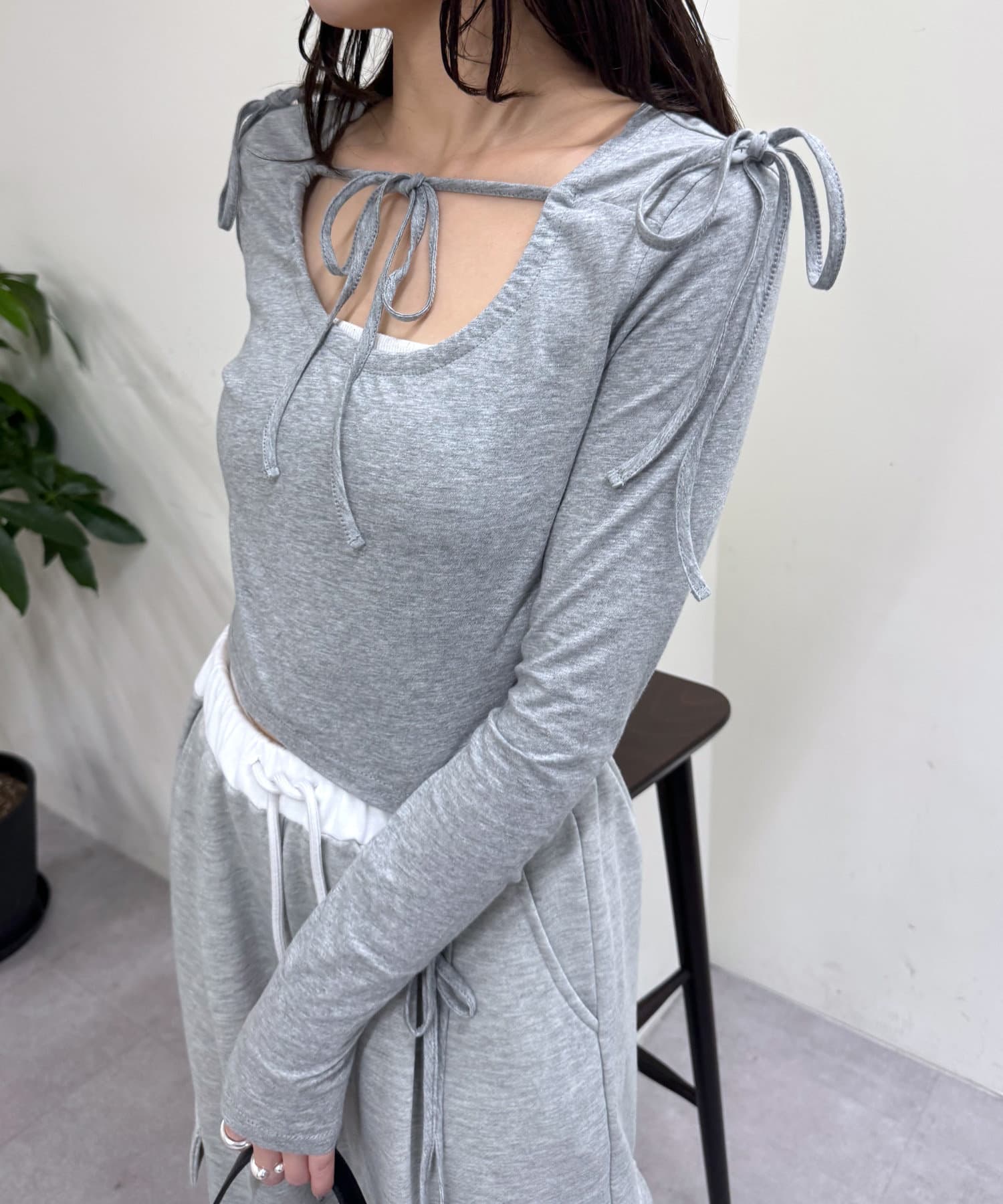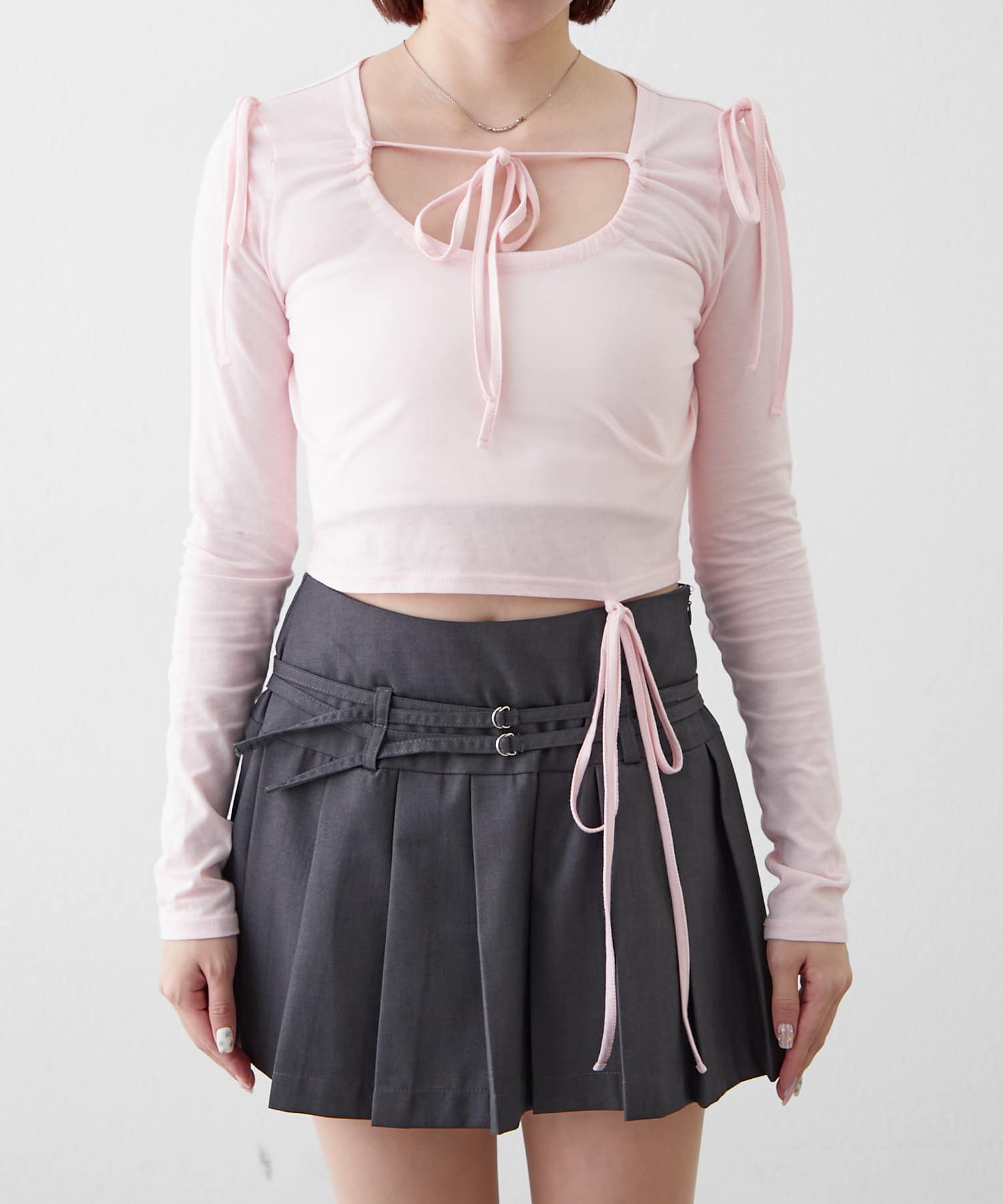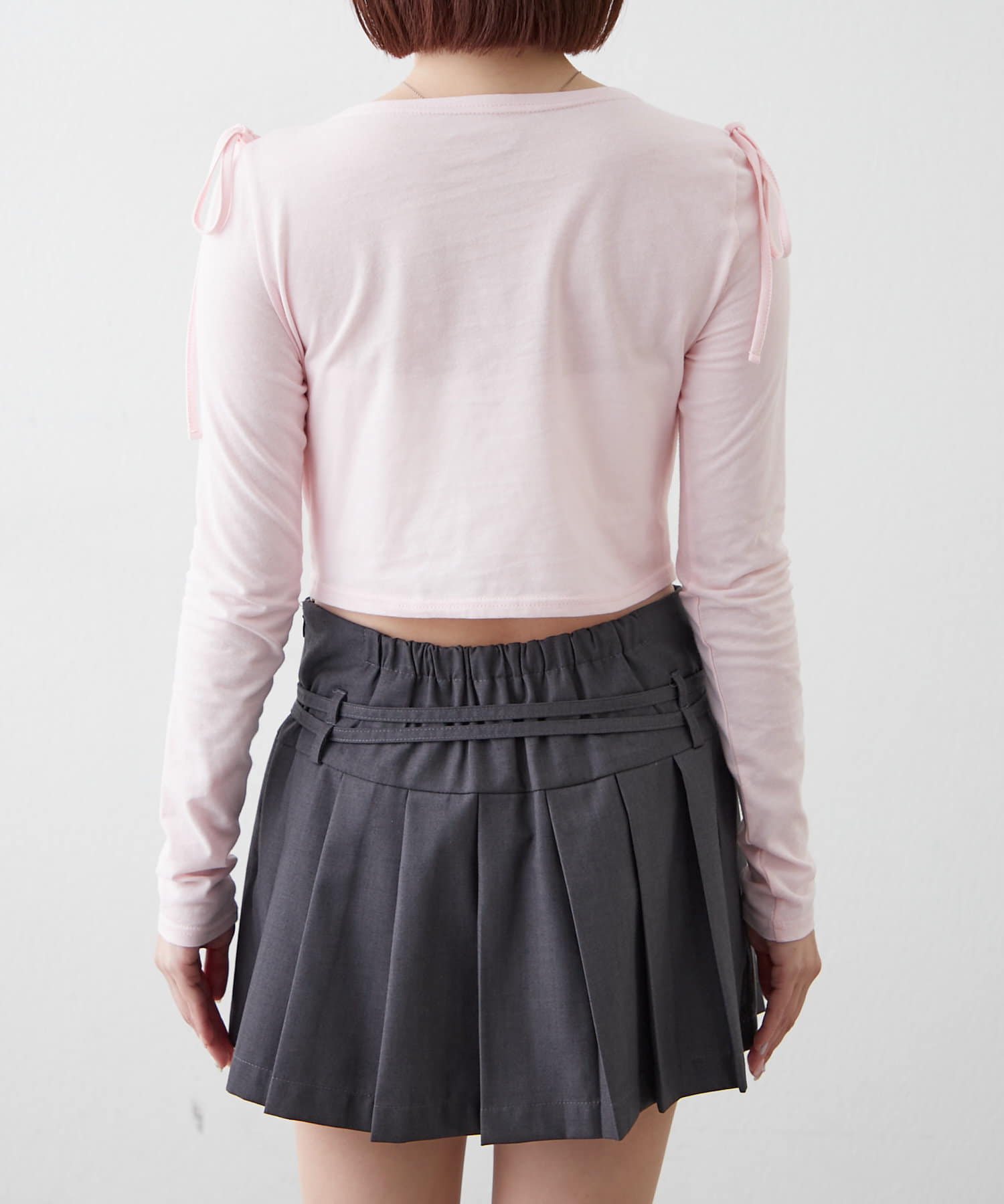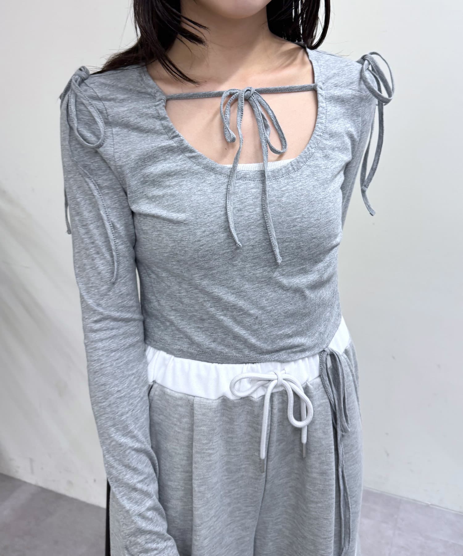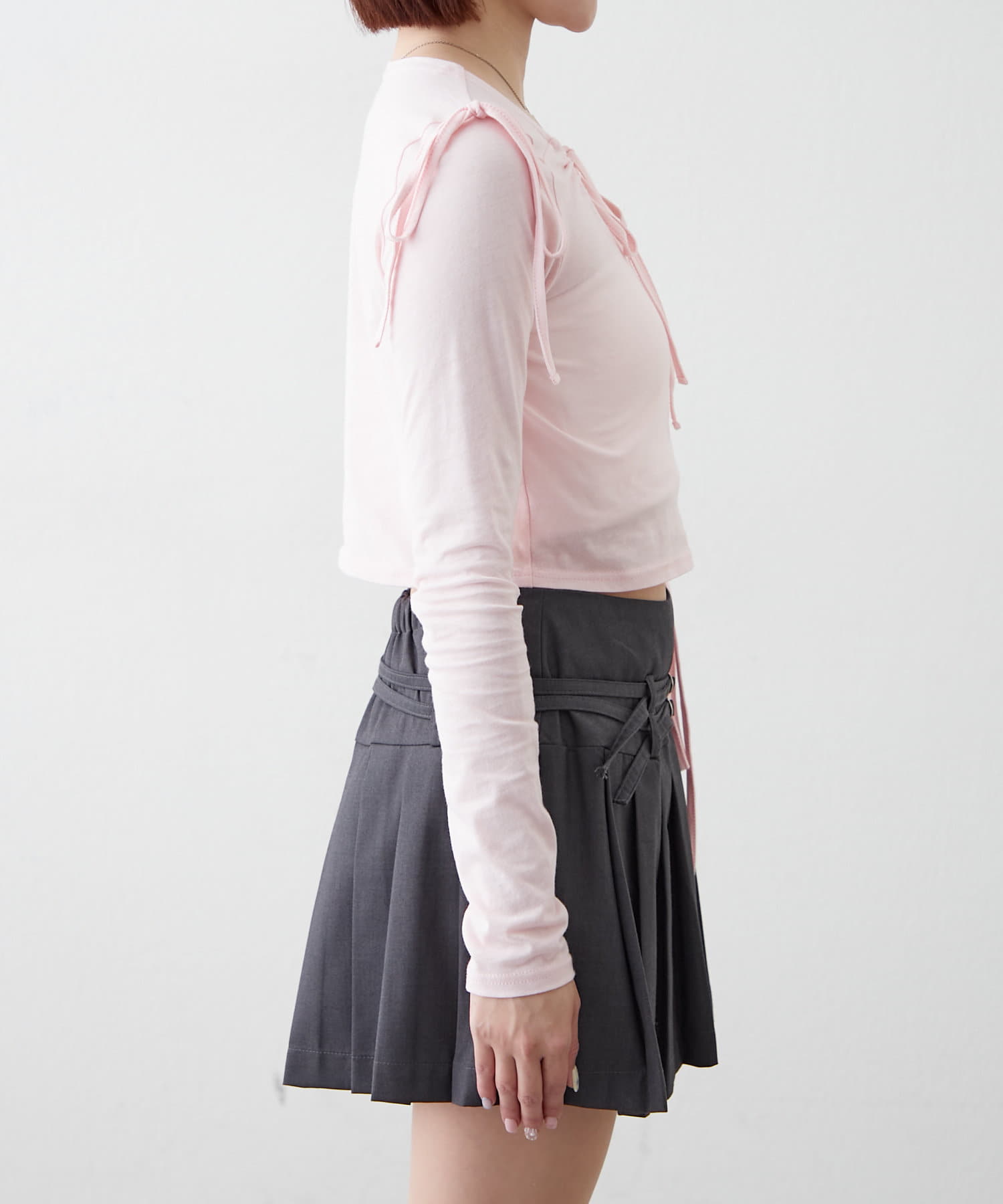 首元のギャザーで女子っぽい肌見せをしてくれるTシャツ。