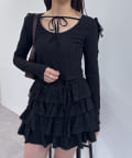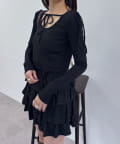 ・襟元のギャザーを調節して空き具合を調整して着られます。