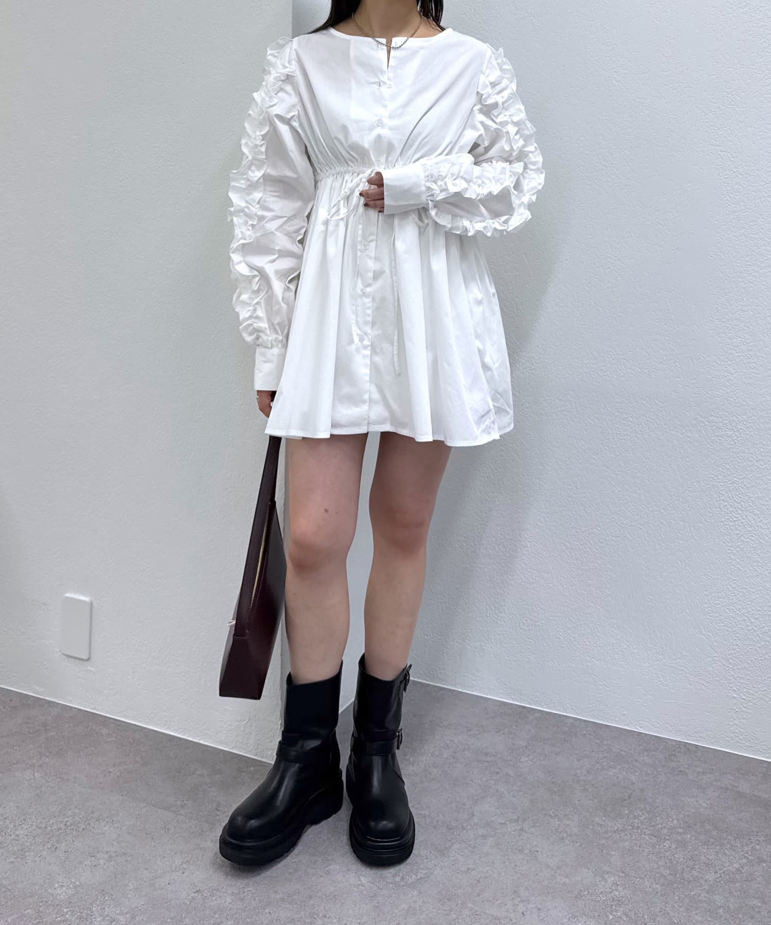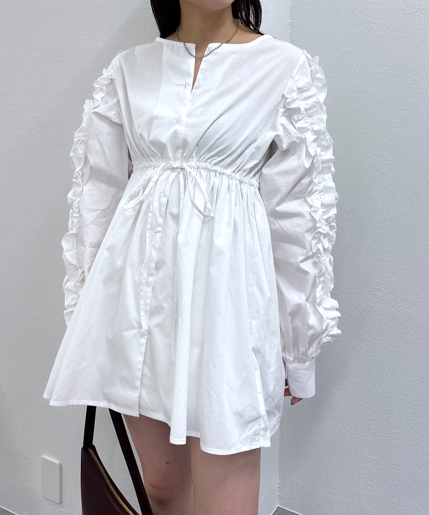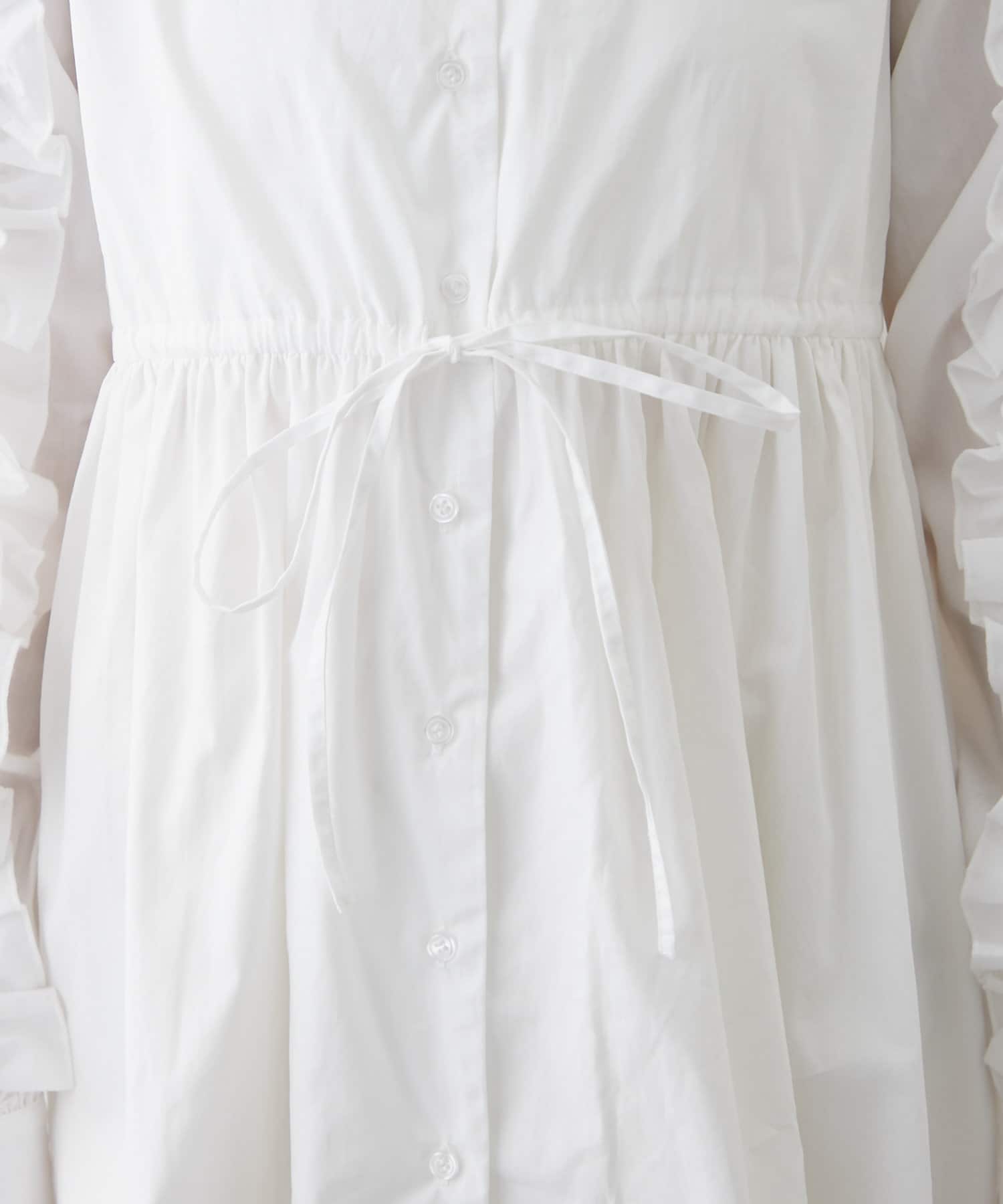 【mystic】袖フリルシャツワンピース