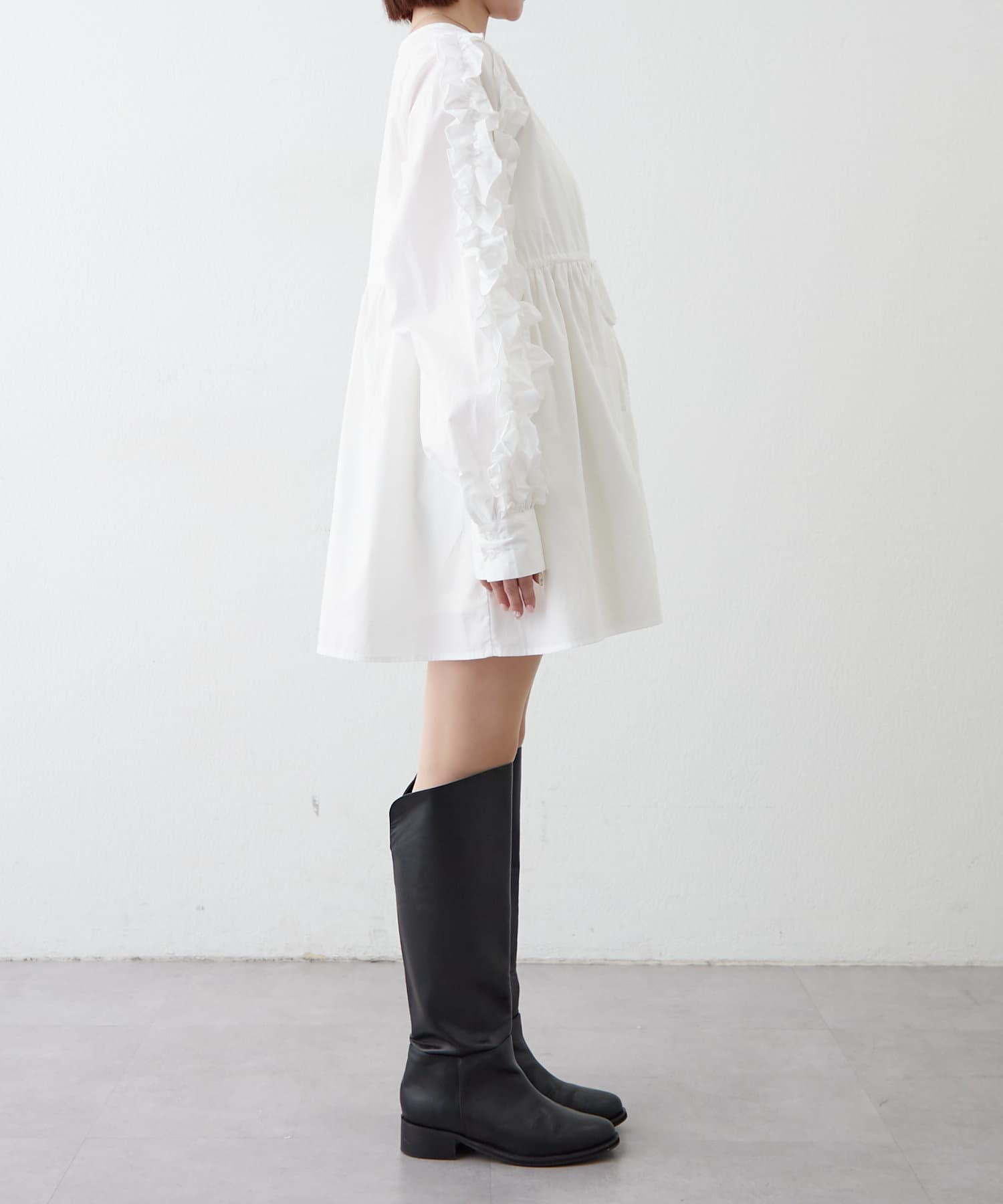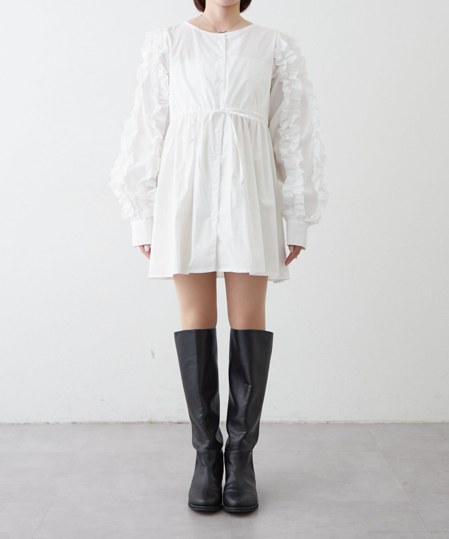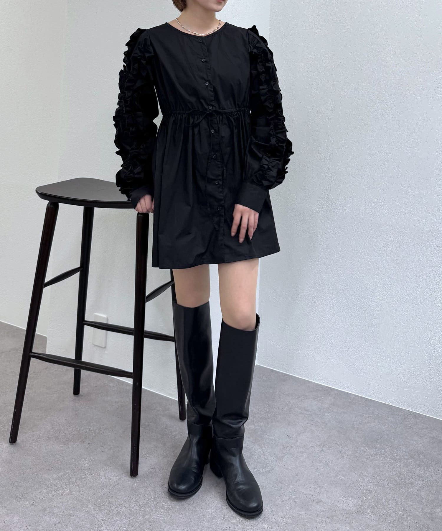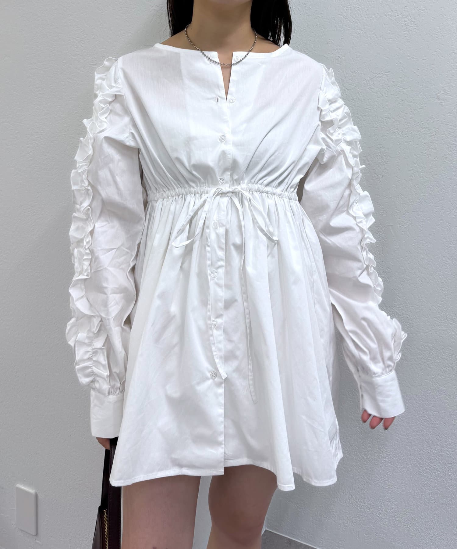 【mystic】袖フリルシャツワンピース