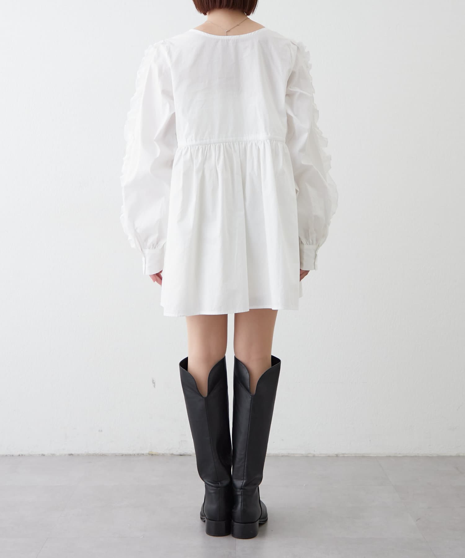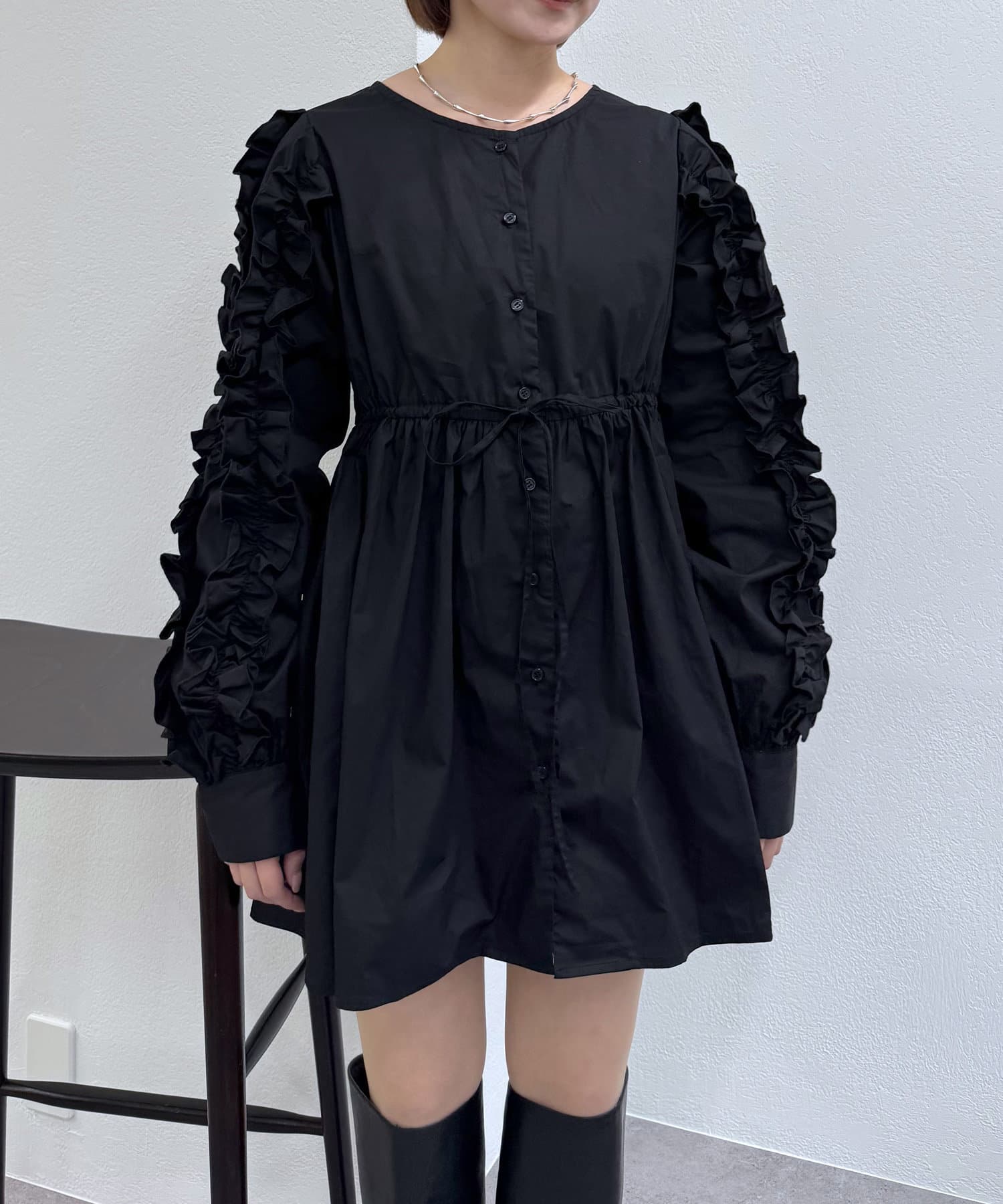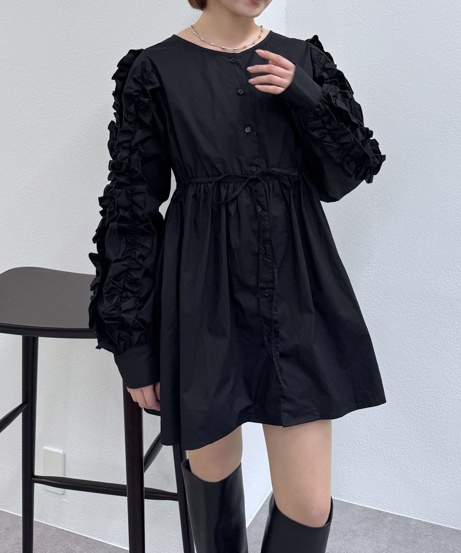 ・袖にはたっぷりのフリルをあしらい、甘すぎない可愛らしさを演出。