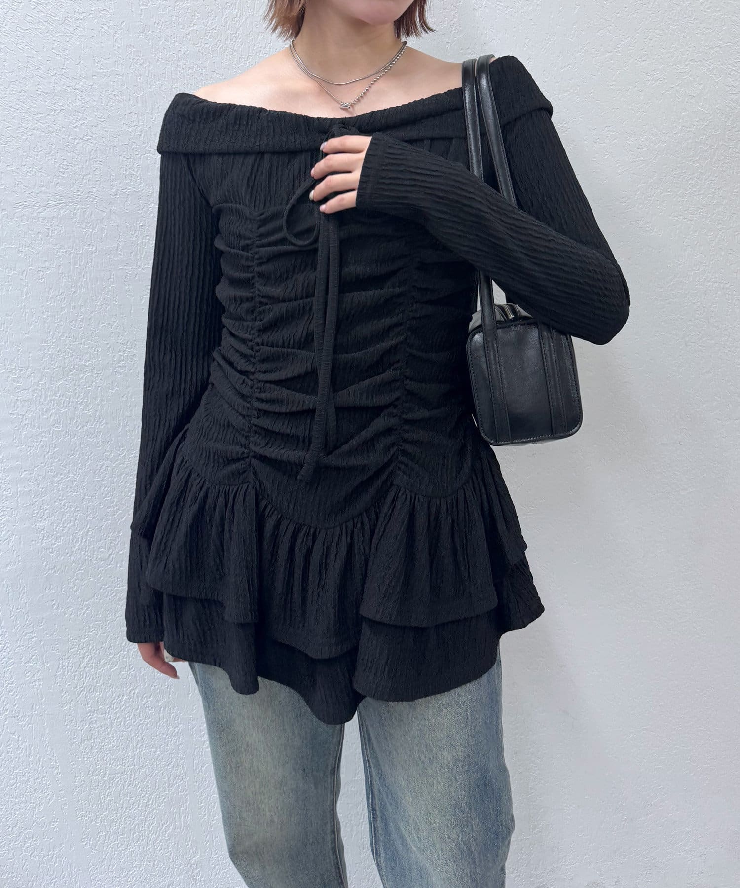 ・ギャザーが入っており、一枚で華やかな印象に♡