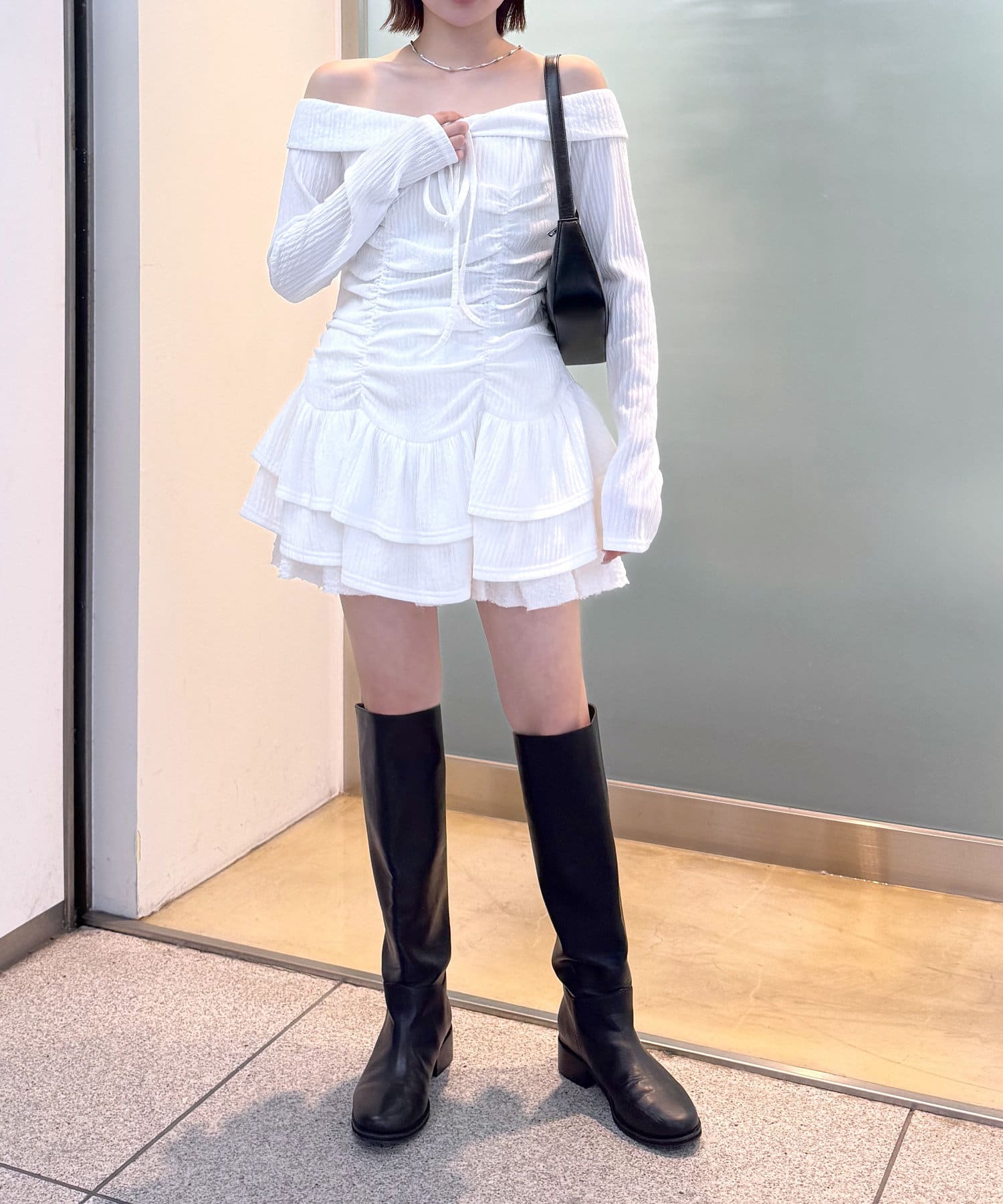 ・ワンピースとして着ていただく際にはロングブーツと相性◎脚を細く長く見せてくれる効果も!