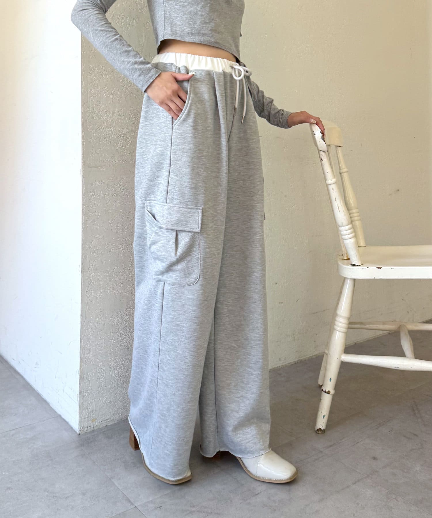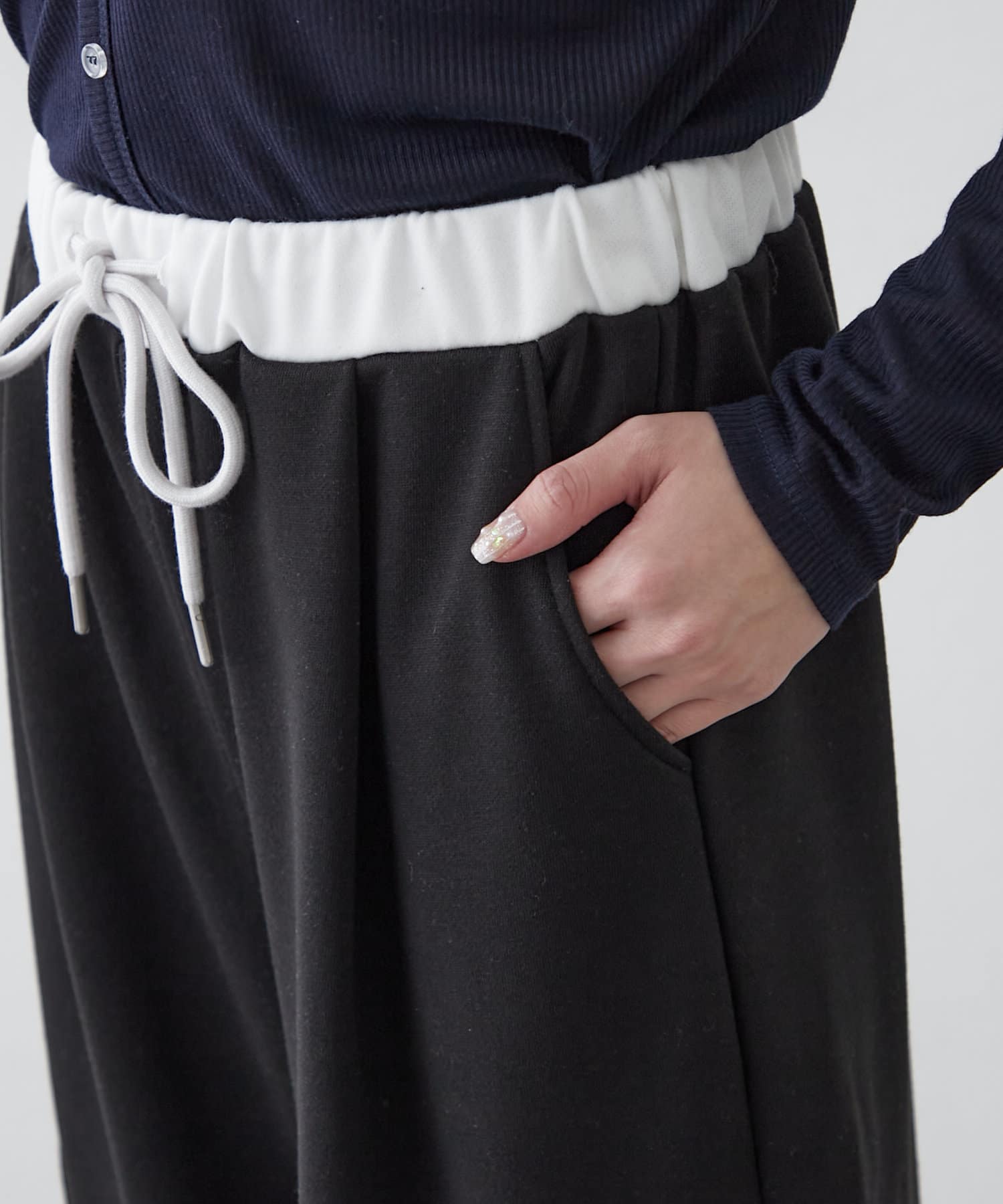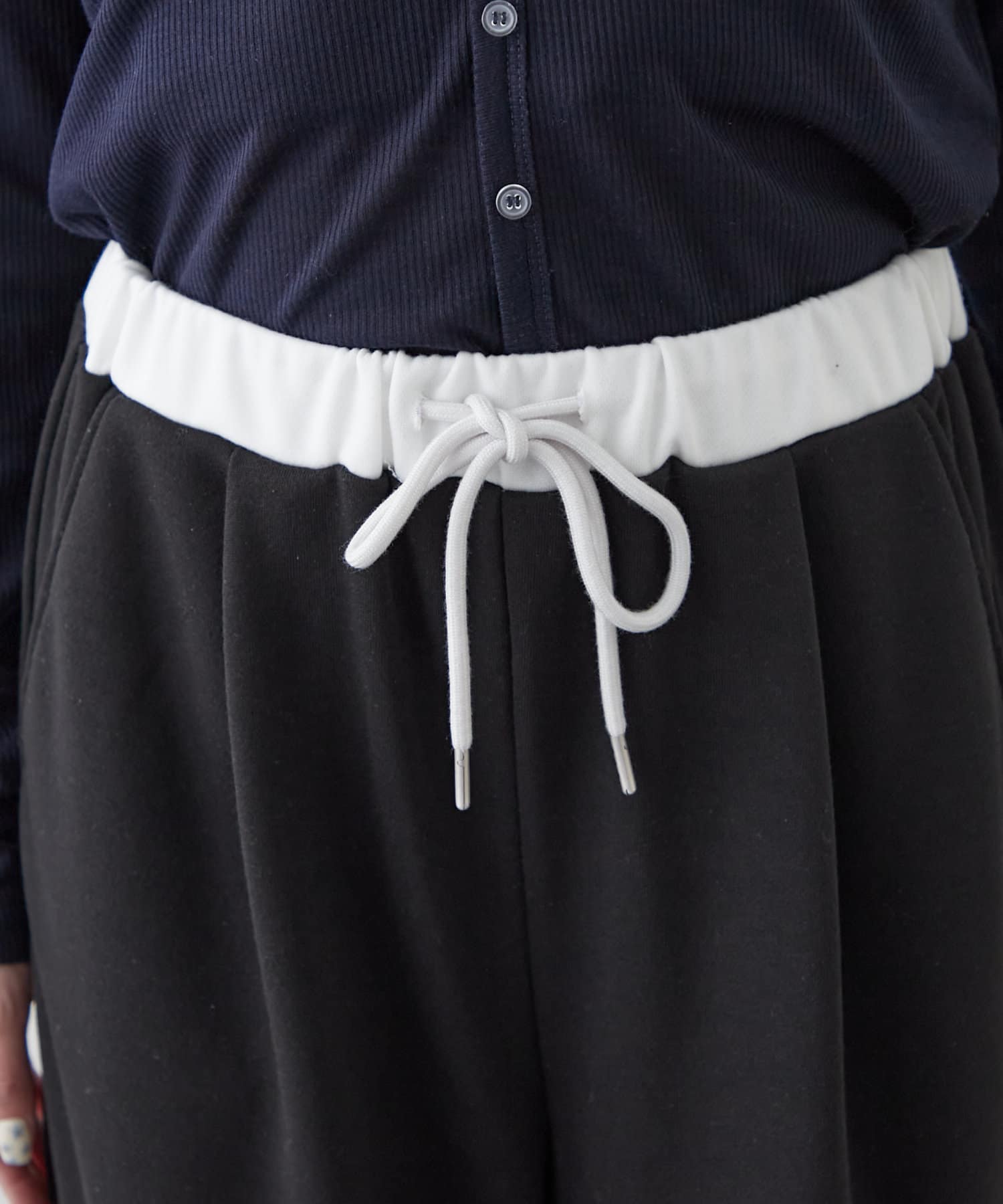 ウエスト部分のレイヤードがワンポイントになるスウェットパンツが登場。