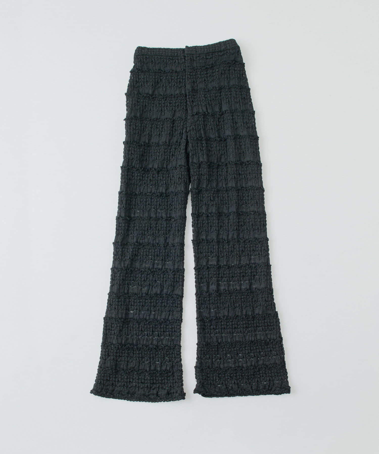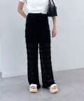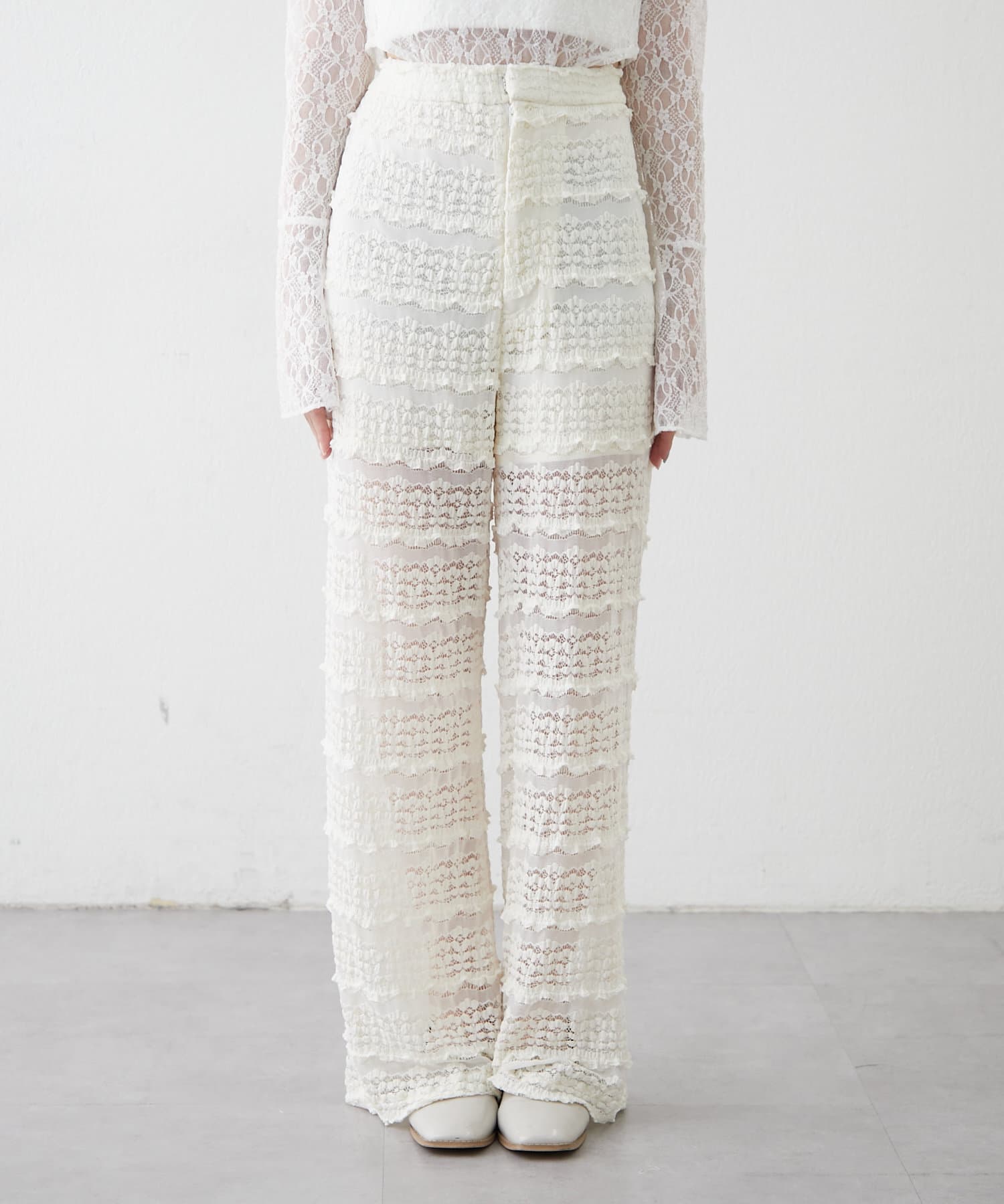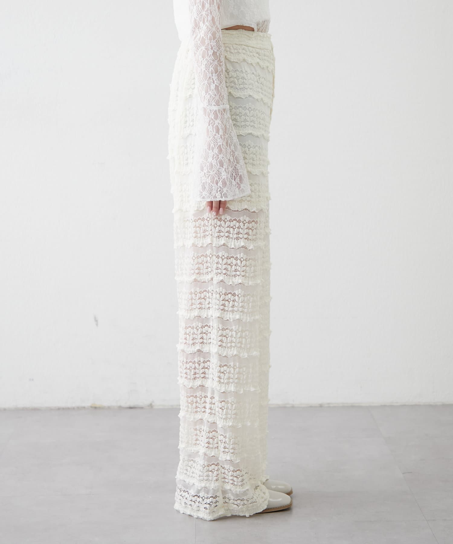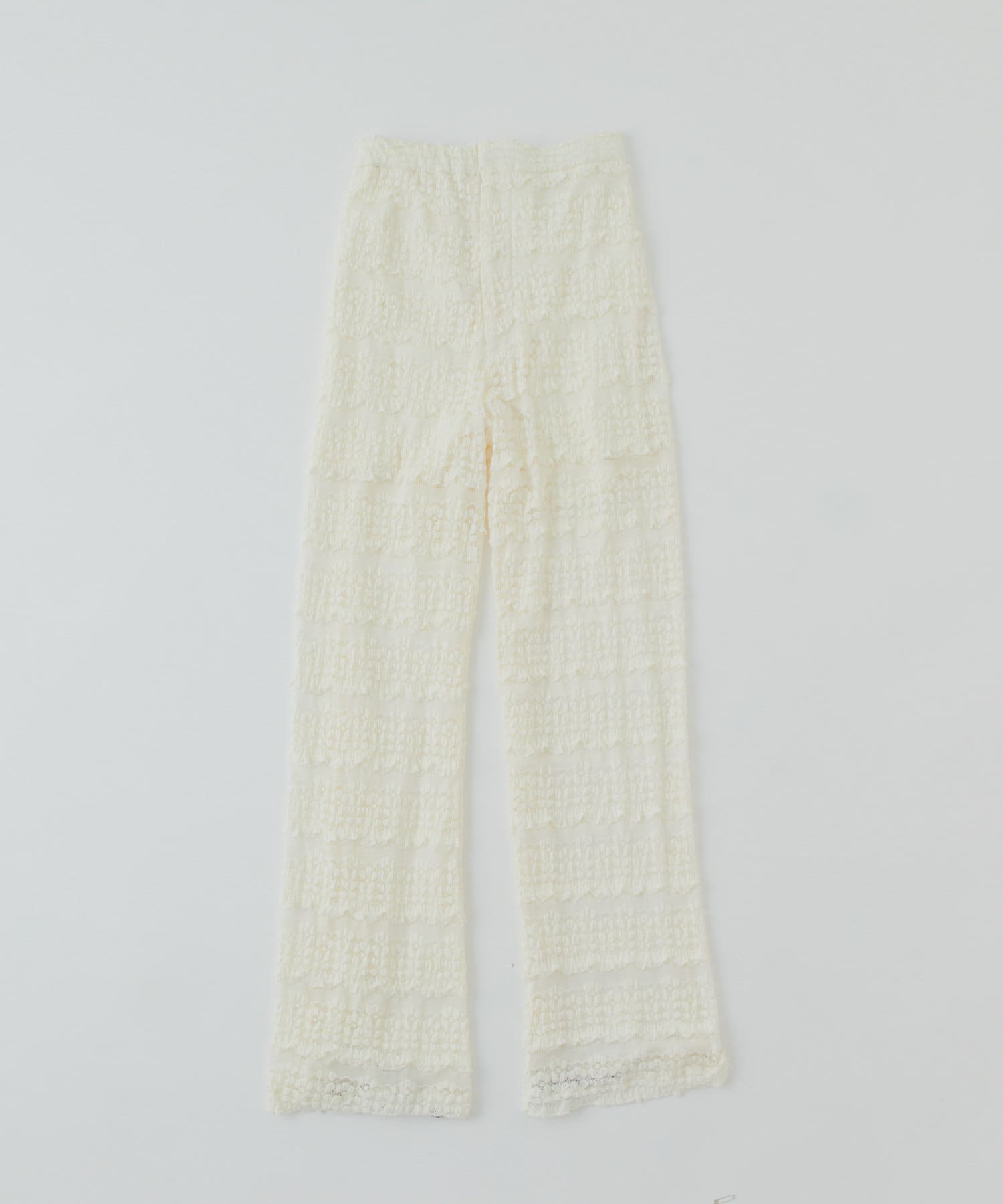 ・ストレートシルエットで足のラインを美しく見せつつ、透け感のある素材が軽やかな印象をプラス。