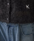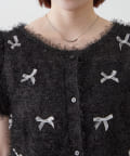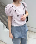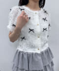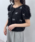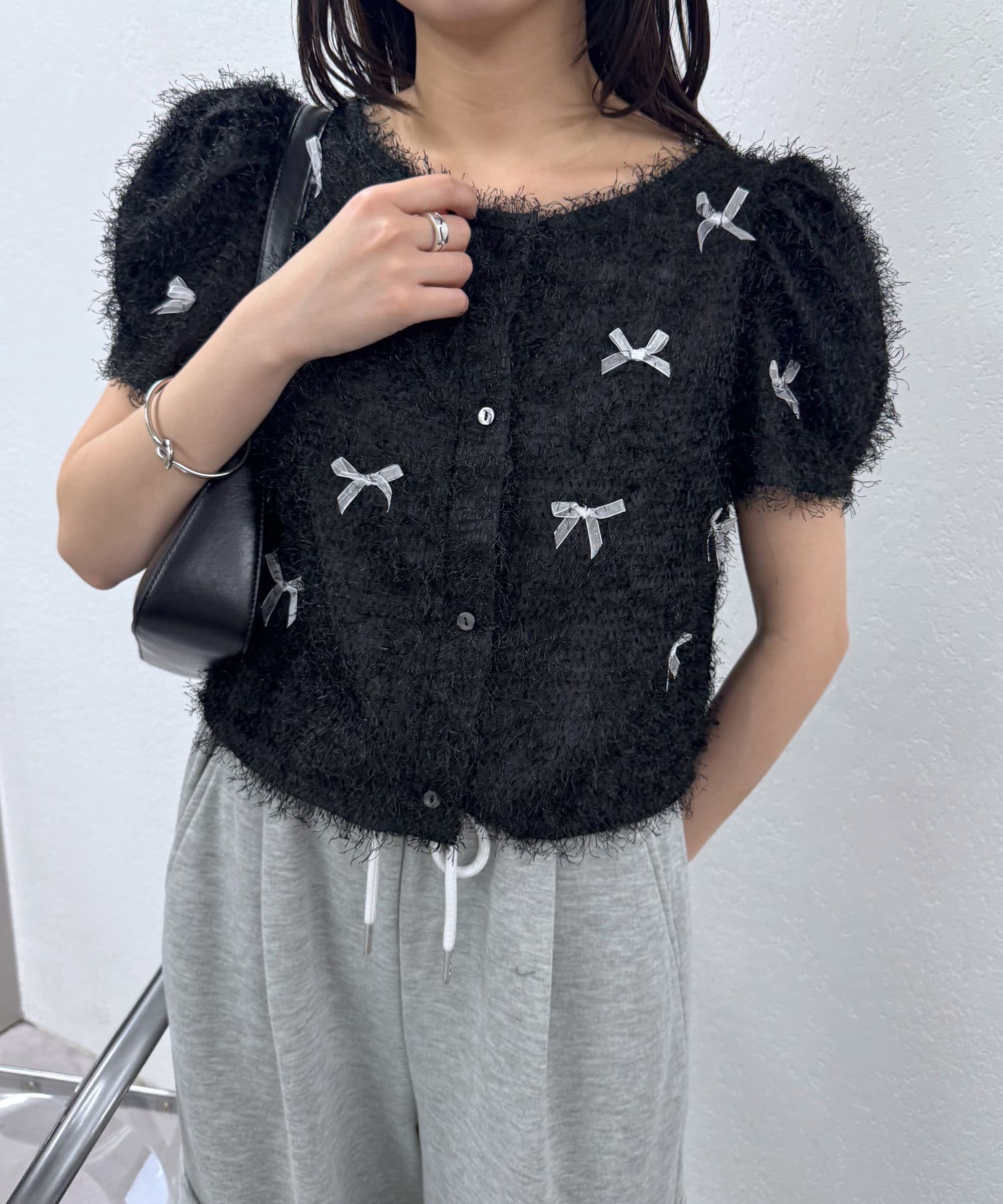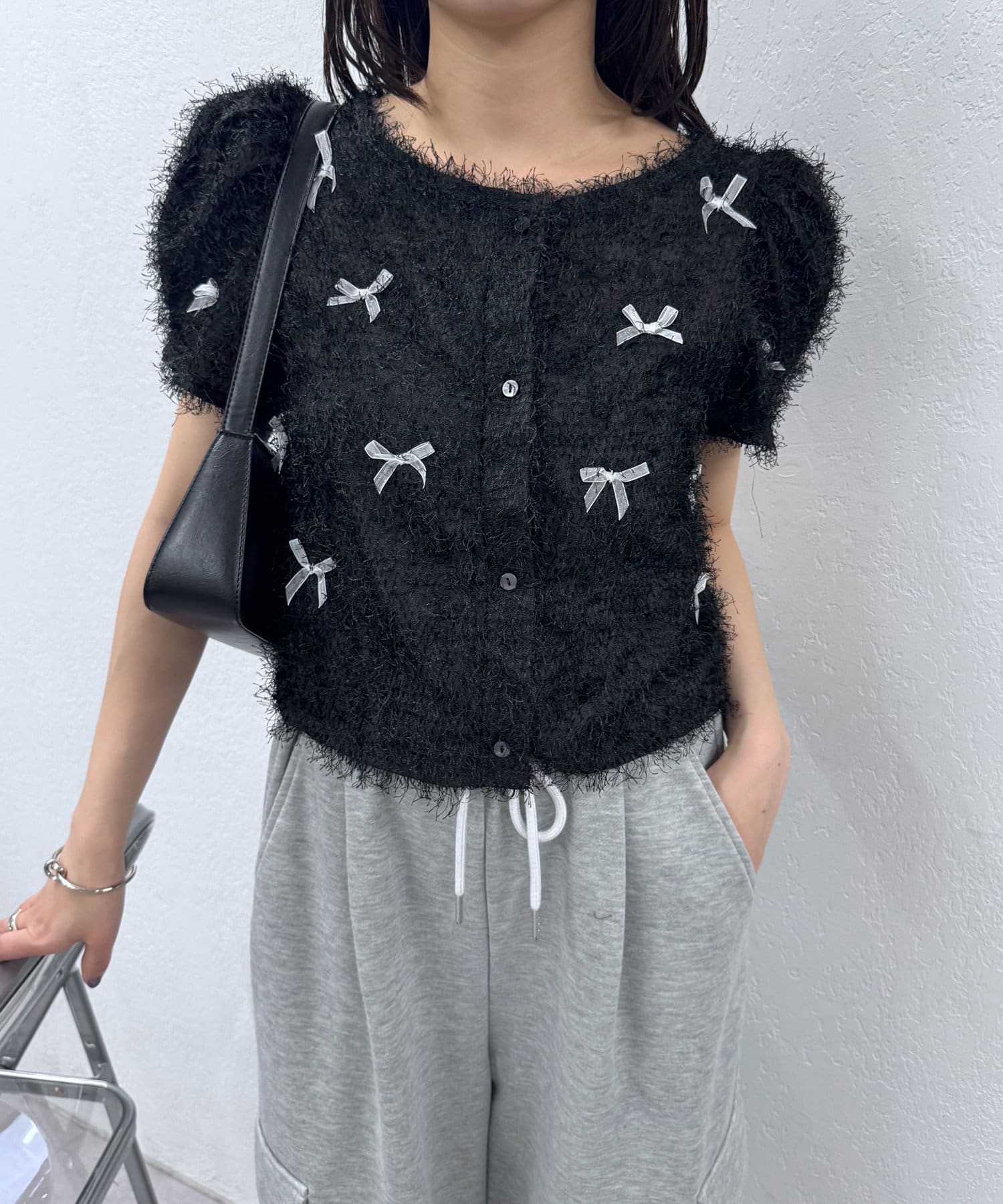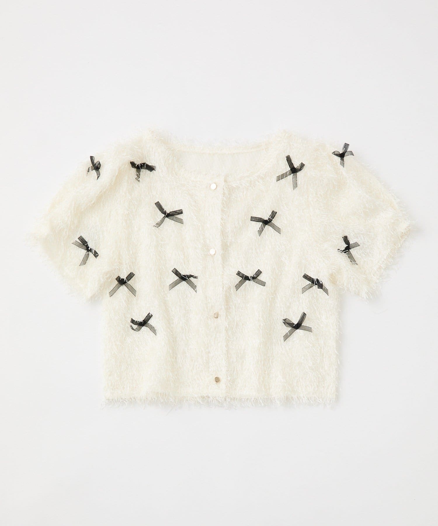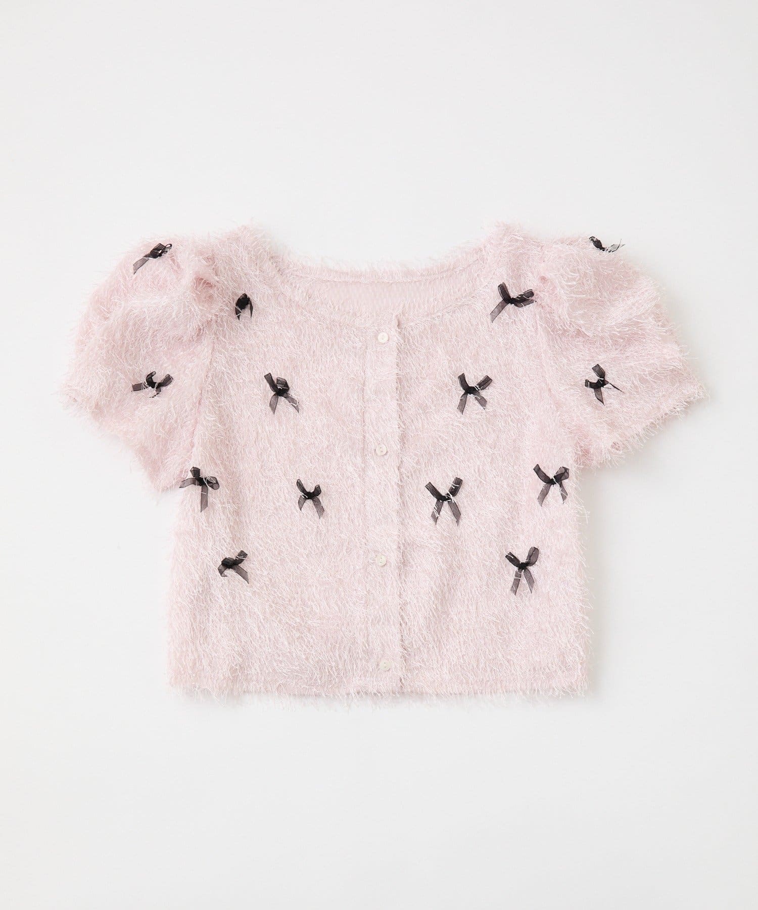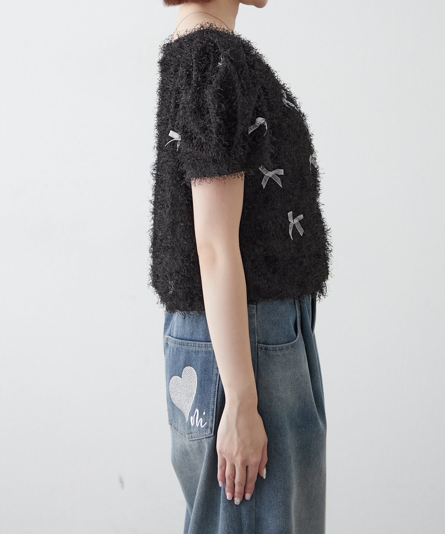 シャギー素材にミニリボンがちりばめられたブラウス。