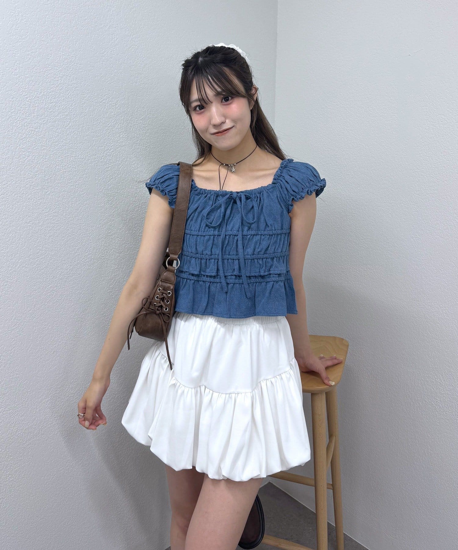 ・ふわっとしたパフスリーブが二の腕を可愛くカバーしてくれます。
