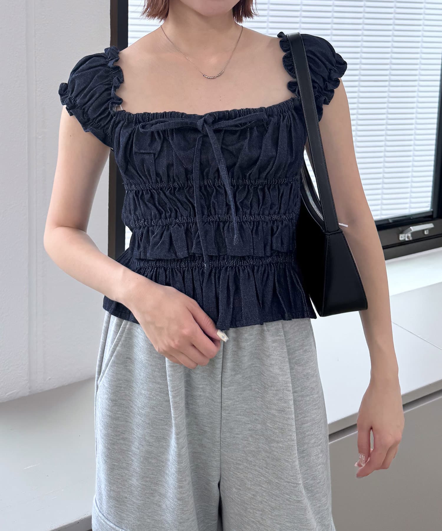 【mline】シャーリングフレンチブラウス