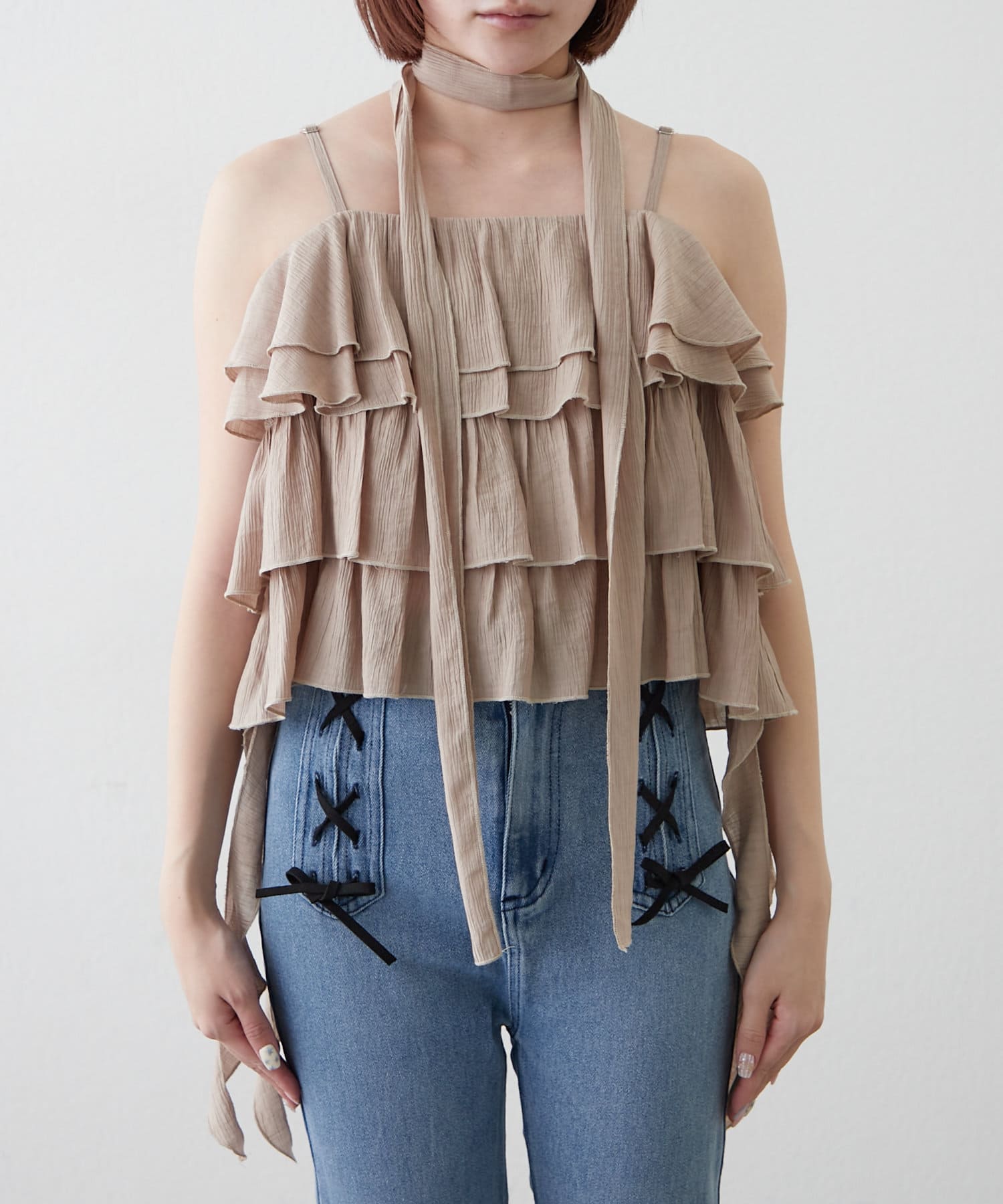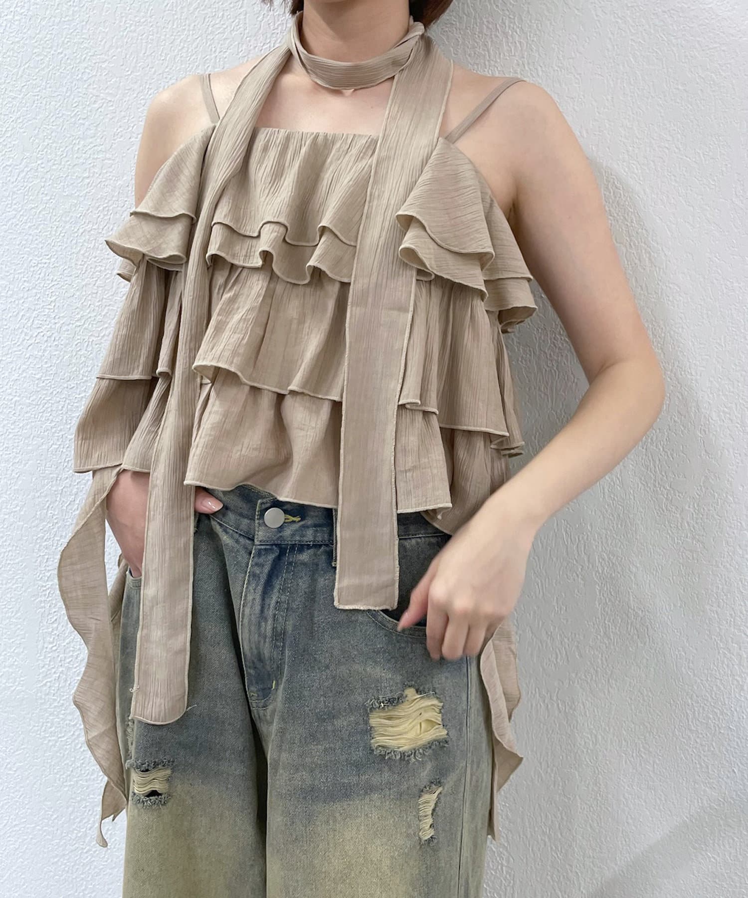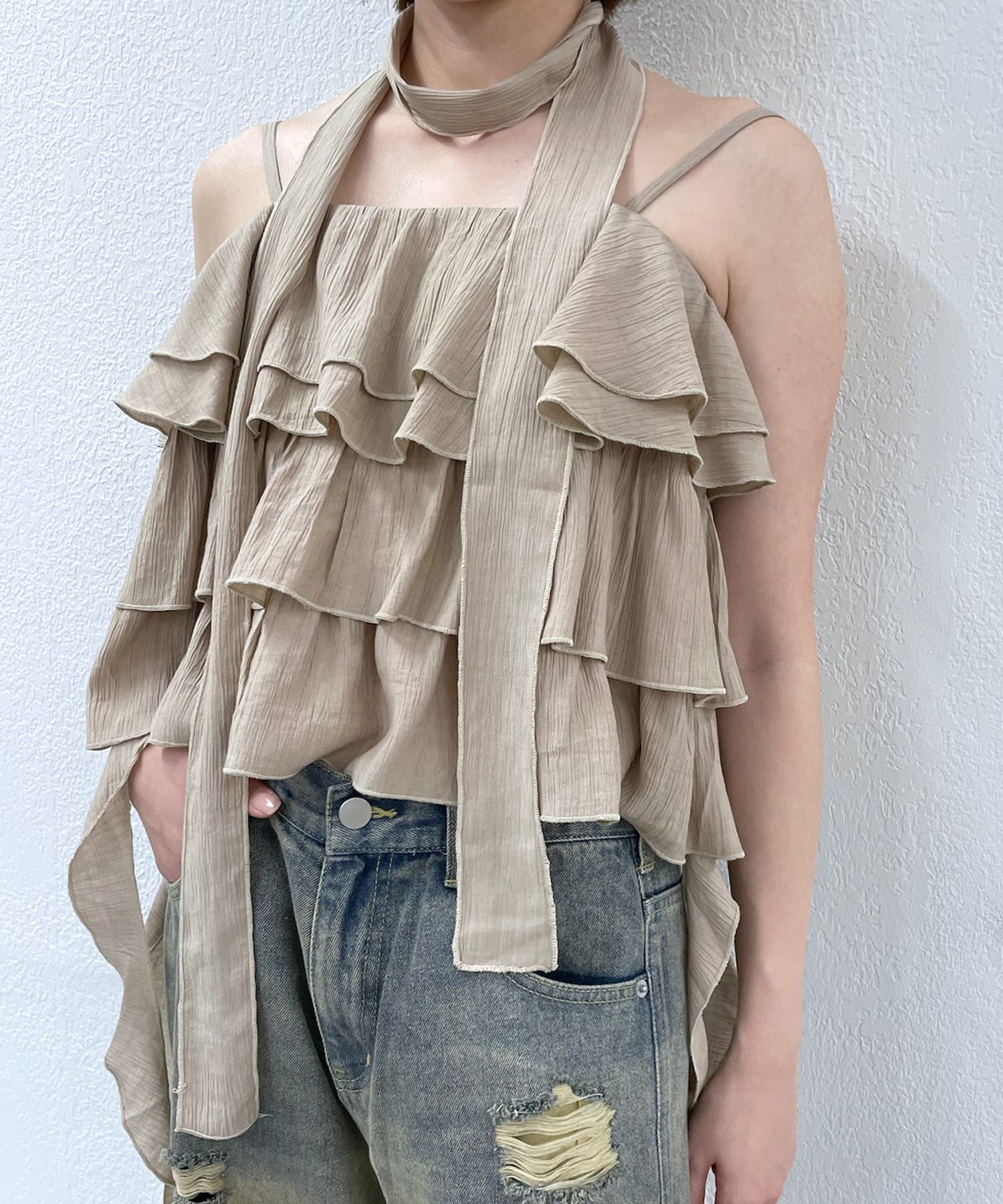 ・やや透け感のある生地で抜け感のある雰囲気にしてくれます。