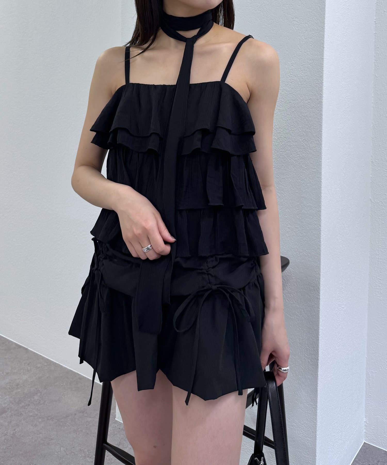 ・同じ丈感のカットソーとミニボトムスでレディに着こなしても可愛く仕上がります。