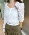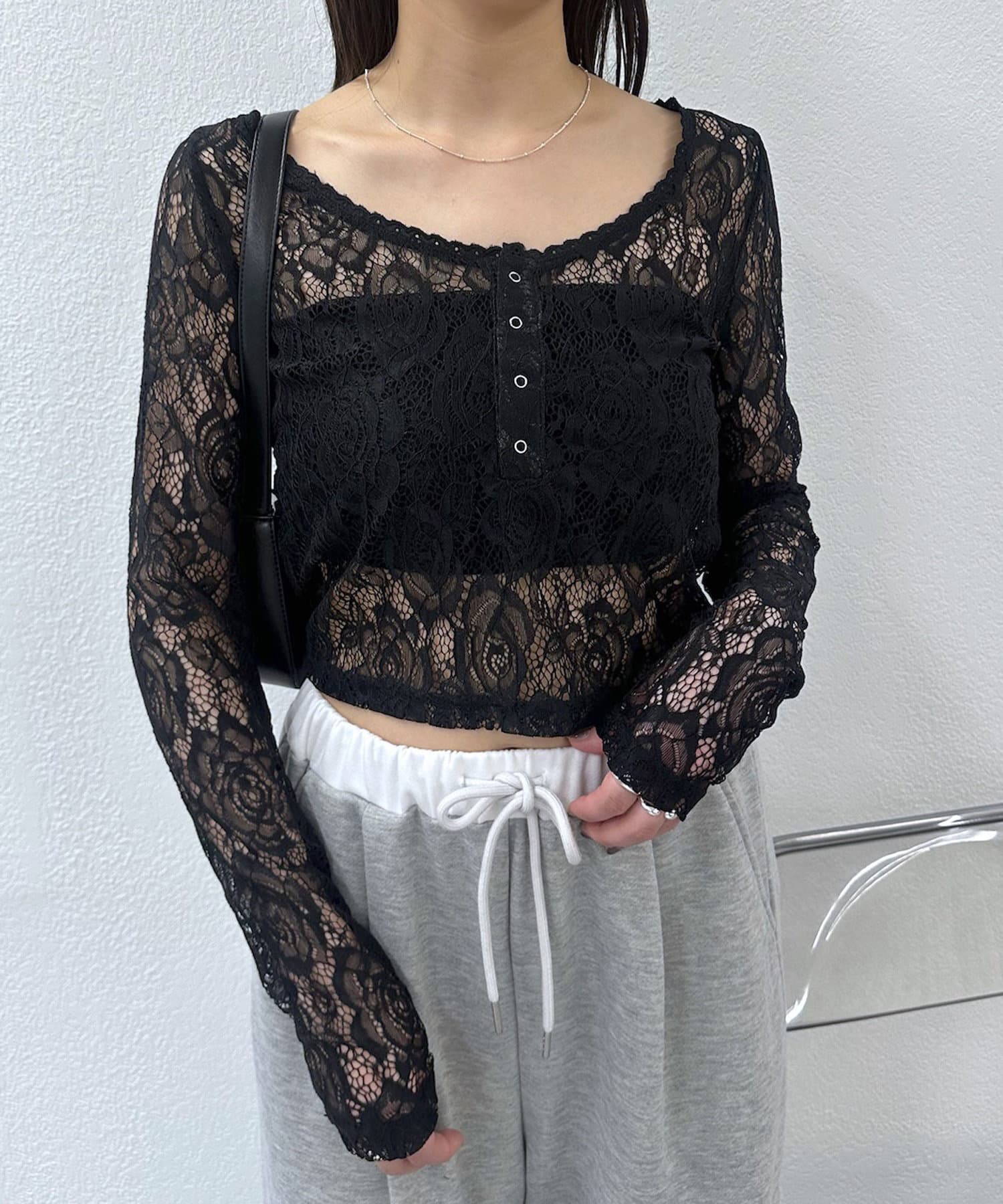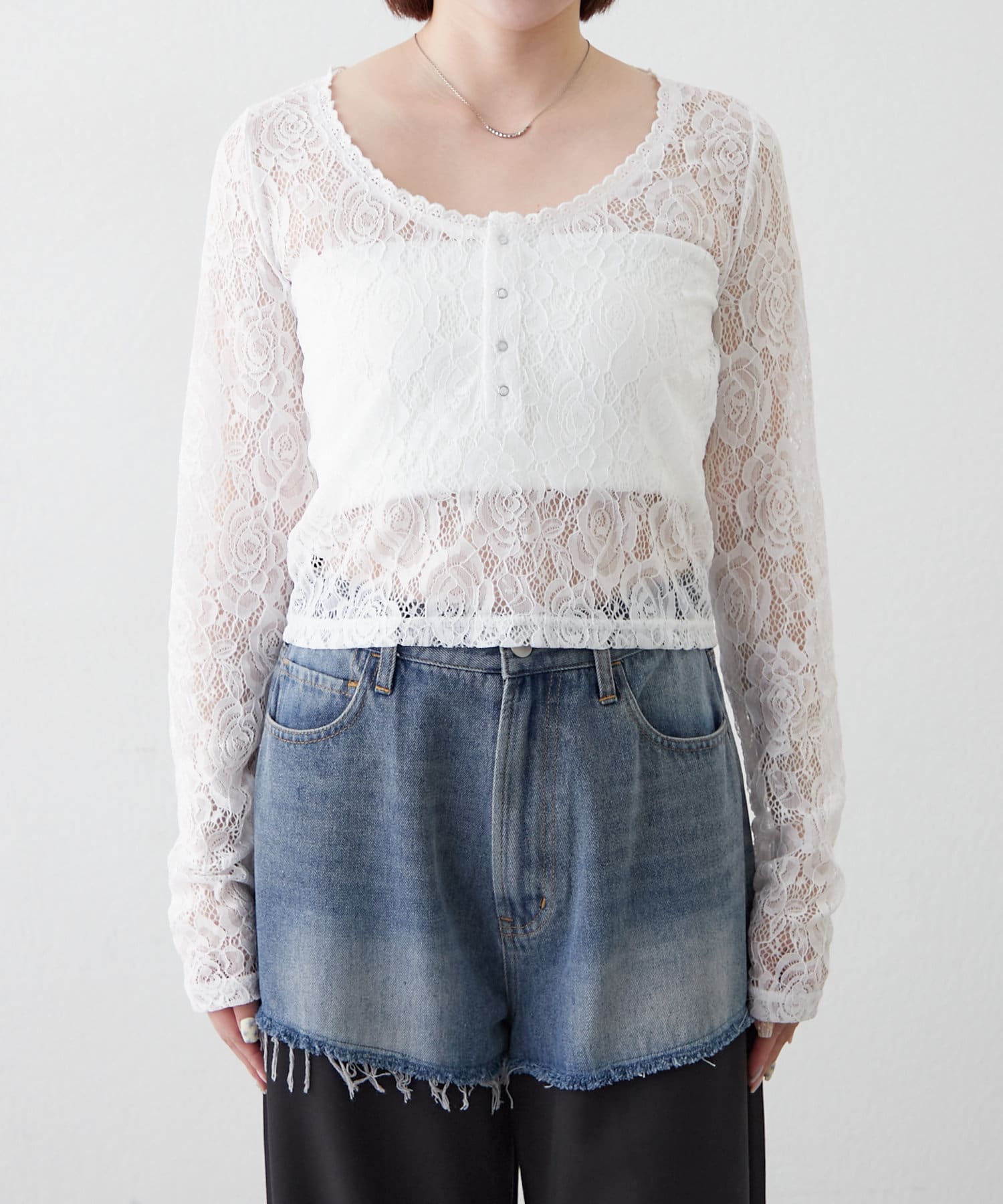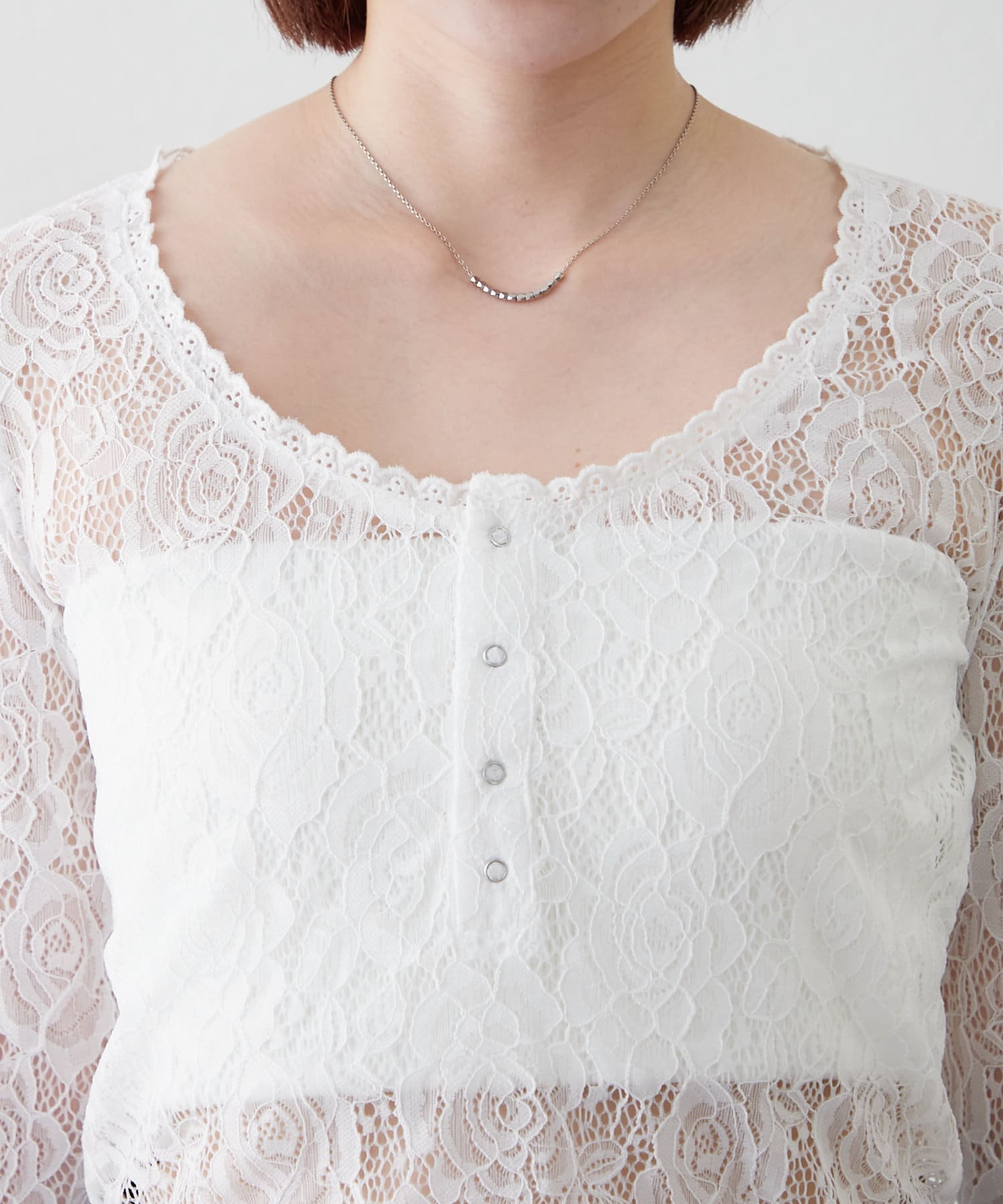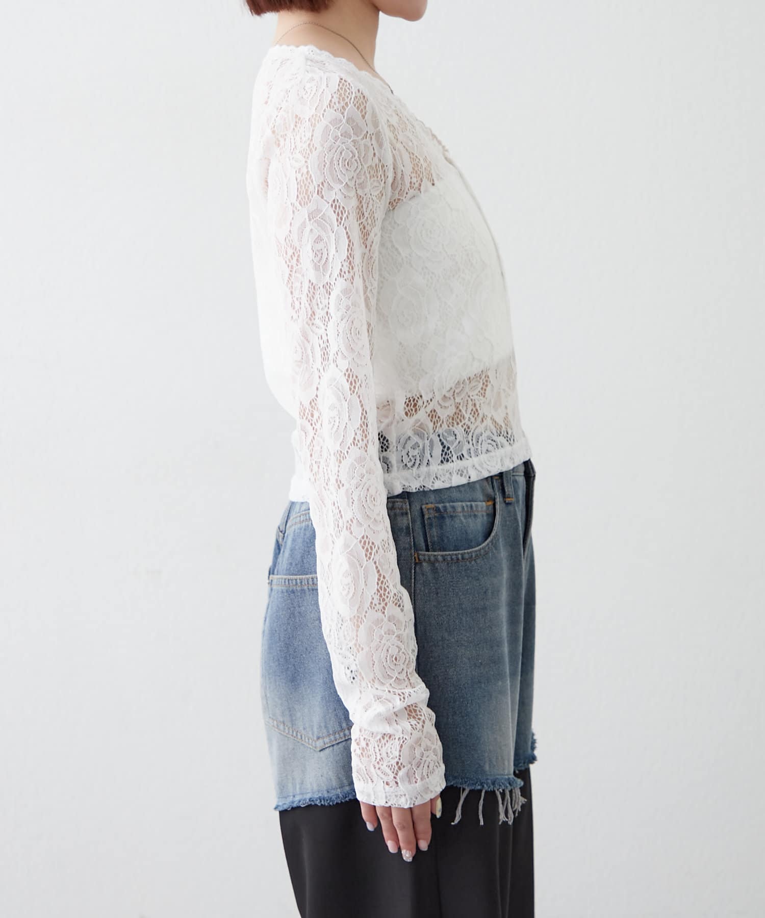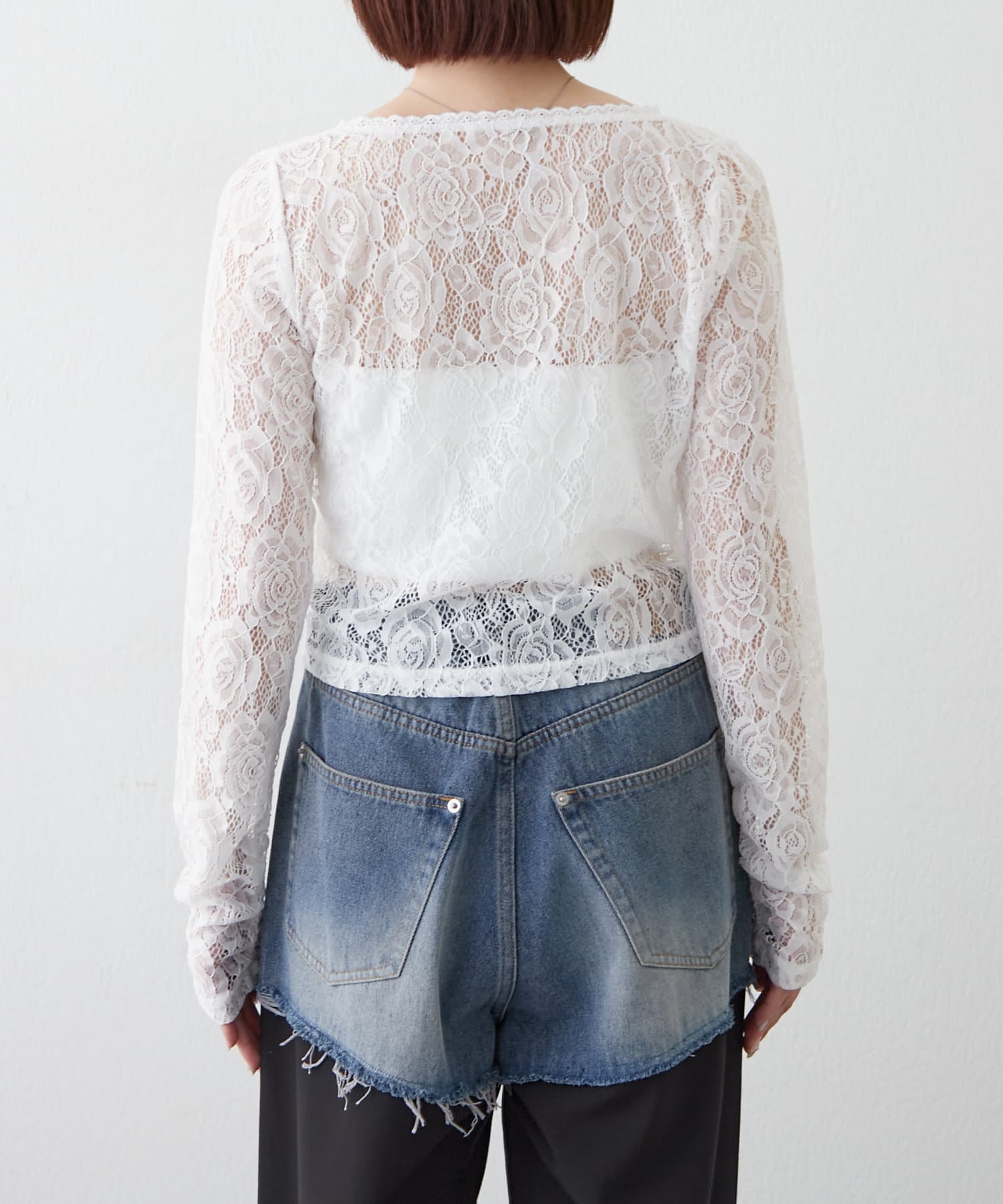 シアー感のあるレース使いがコーディネートのポイントに♡