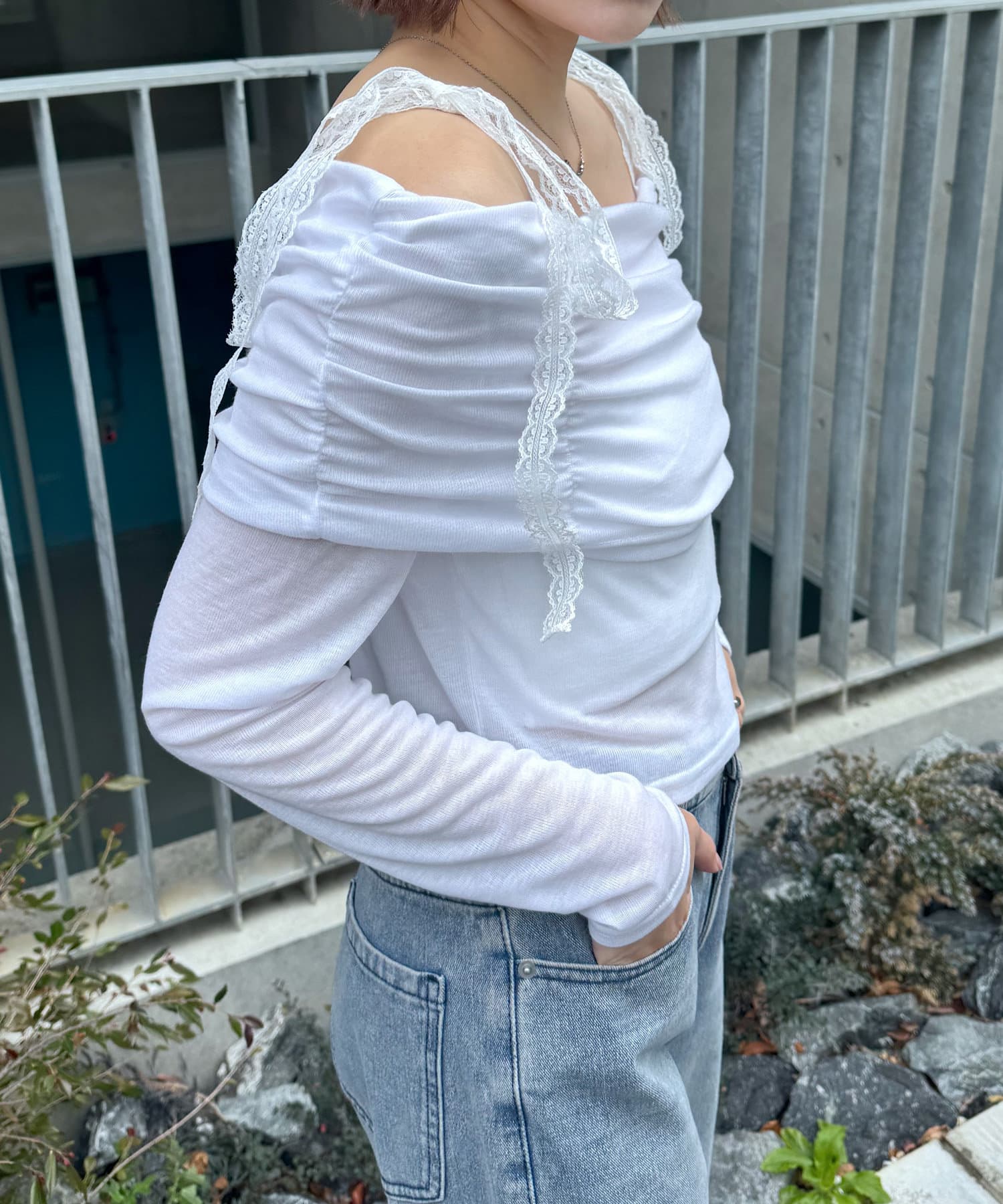・ショルダー部分のレースがポイントの、一枚で主役級の存在感を放つアイテム!