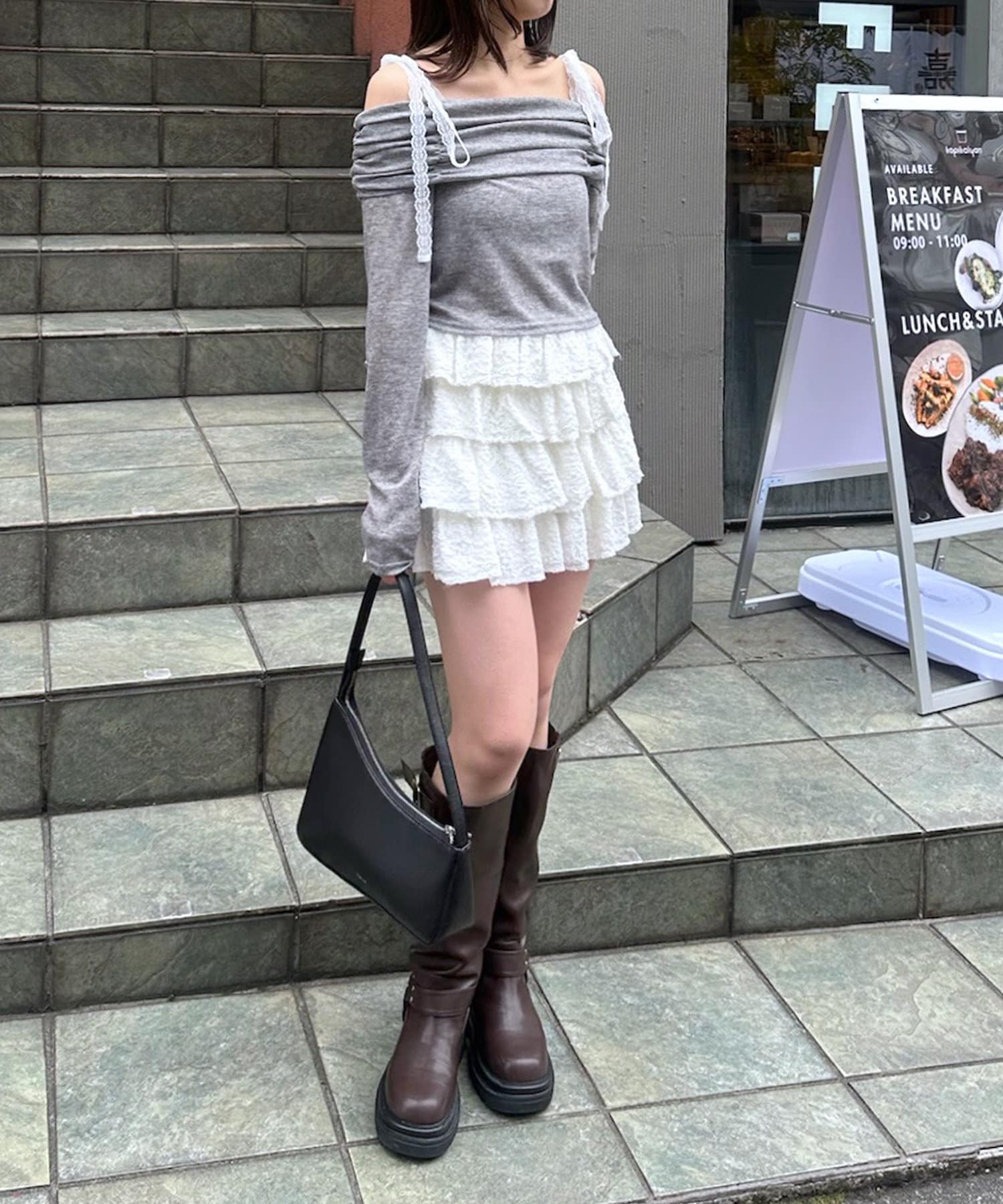 ・ミニ丈ボトムスとロングブーツ合わせでトレンドな着こなしに◎