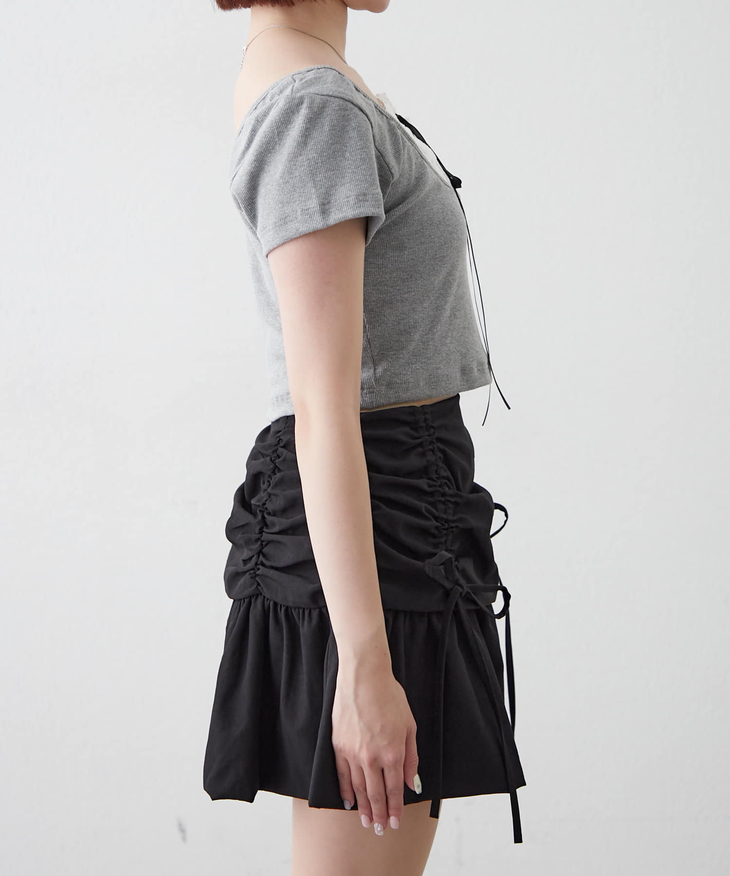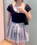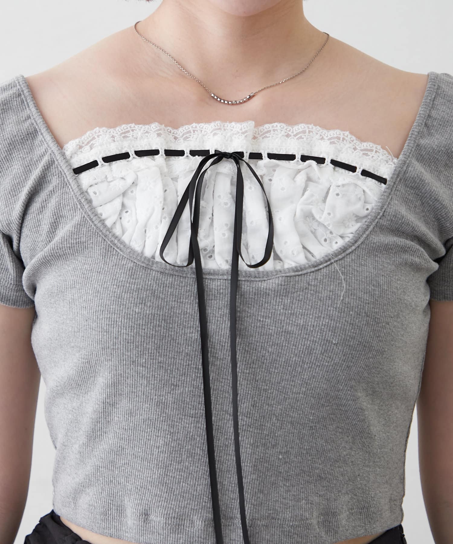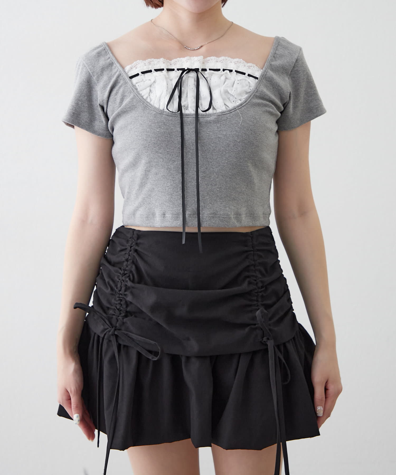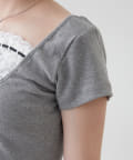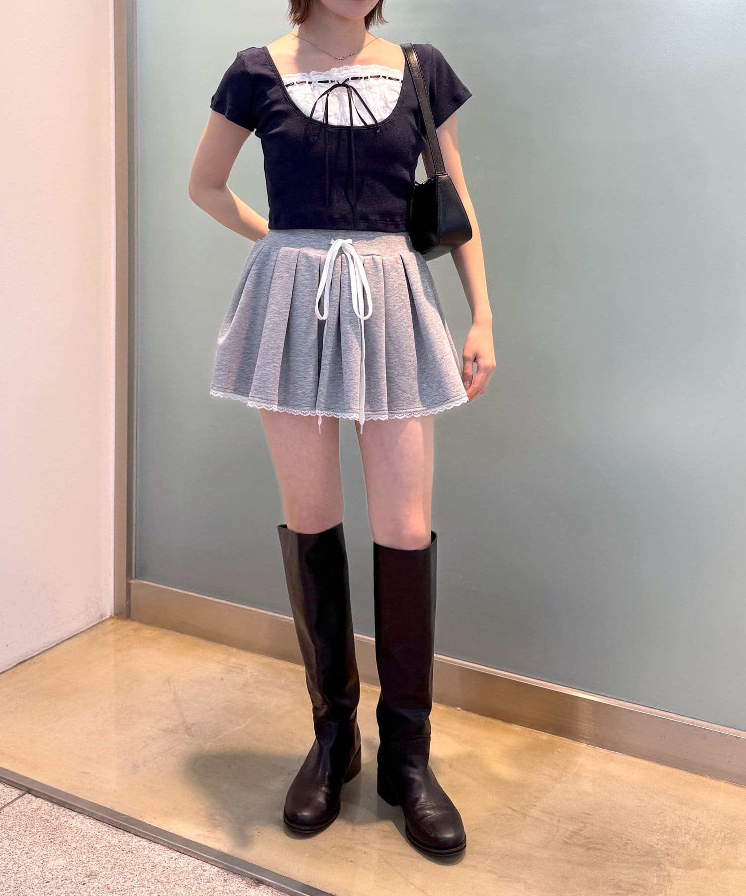 ・シンプルなフレンチTシャツと可愛らしいレース素材が相性◎