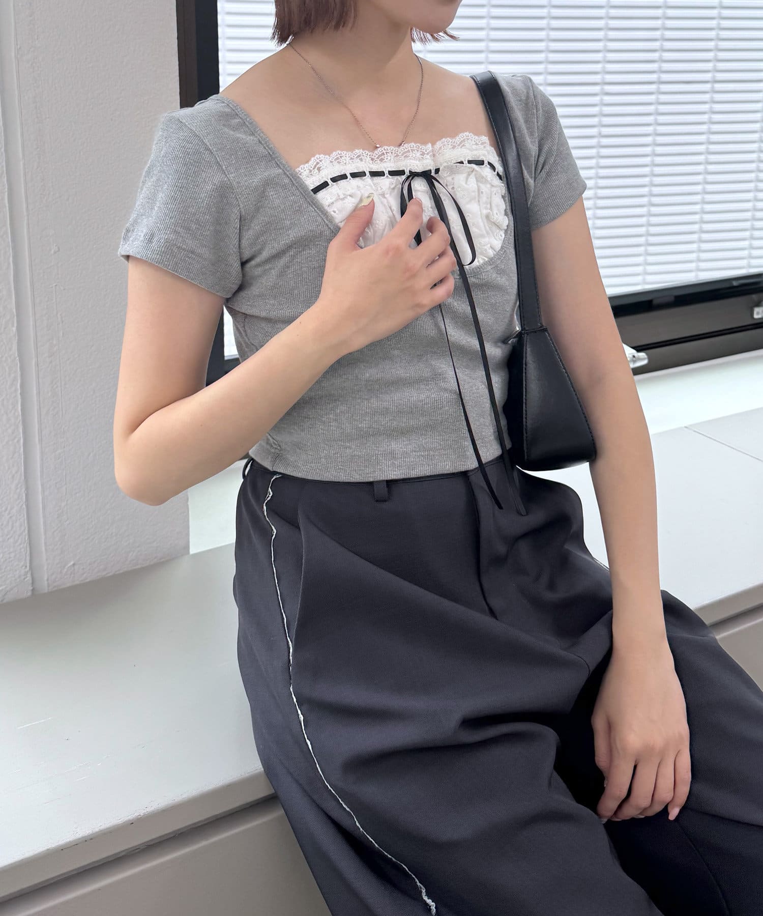 レース素材とのレイヤードデザインで1枚で決まる♡