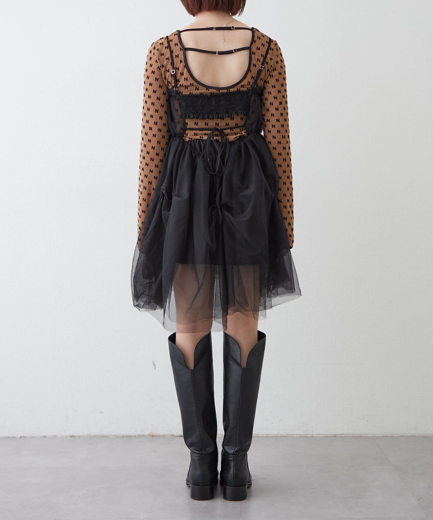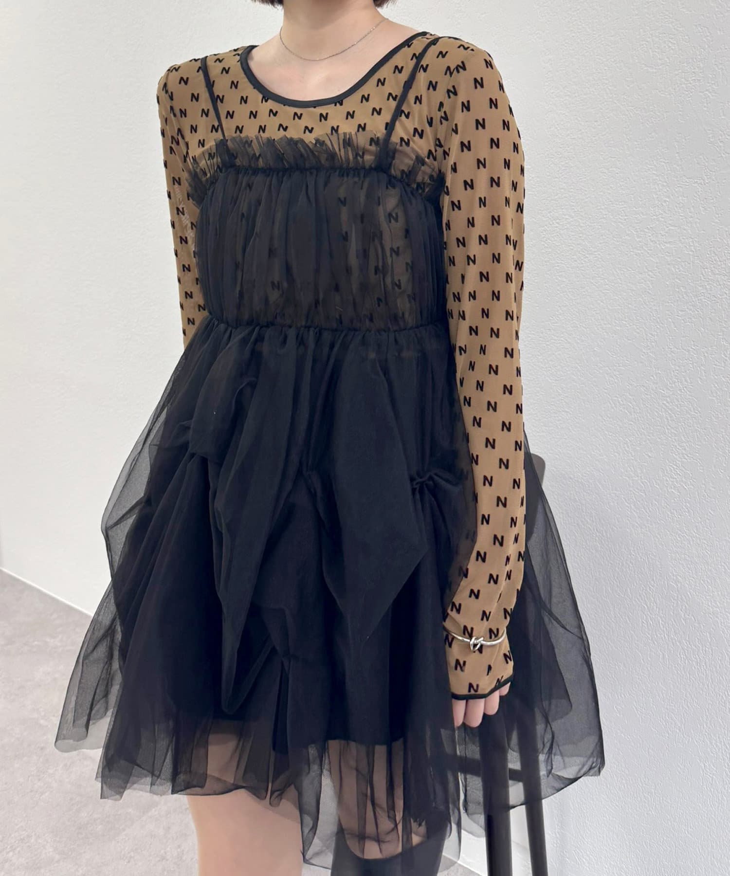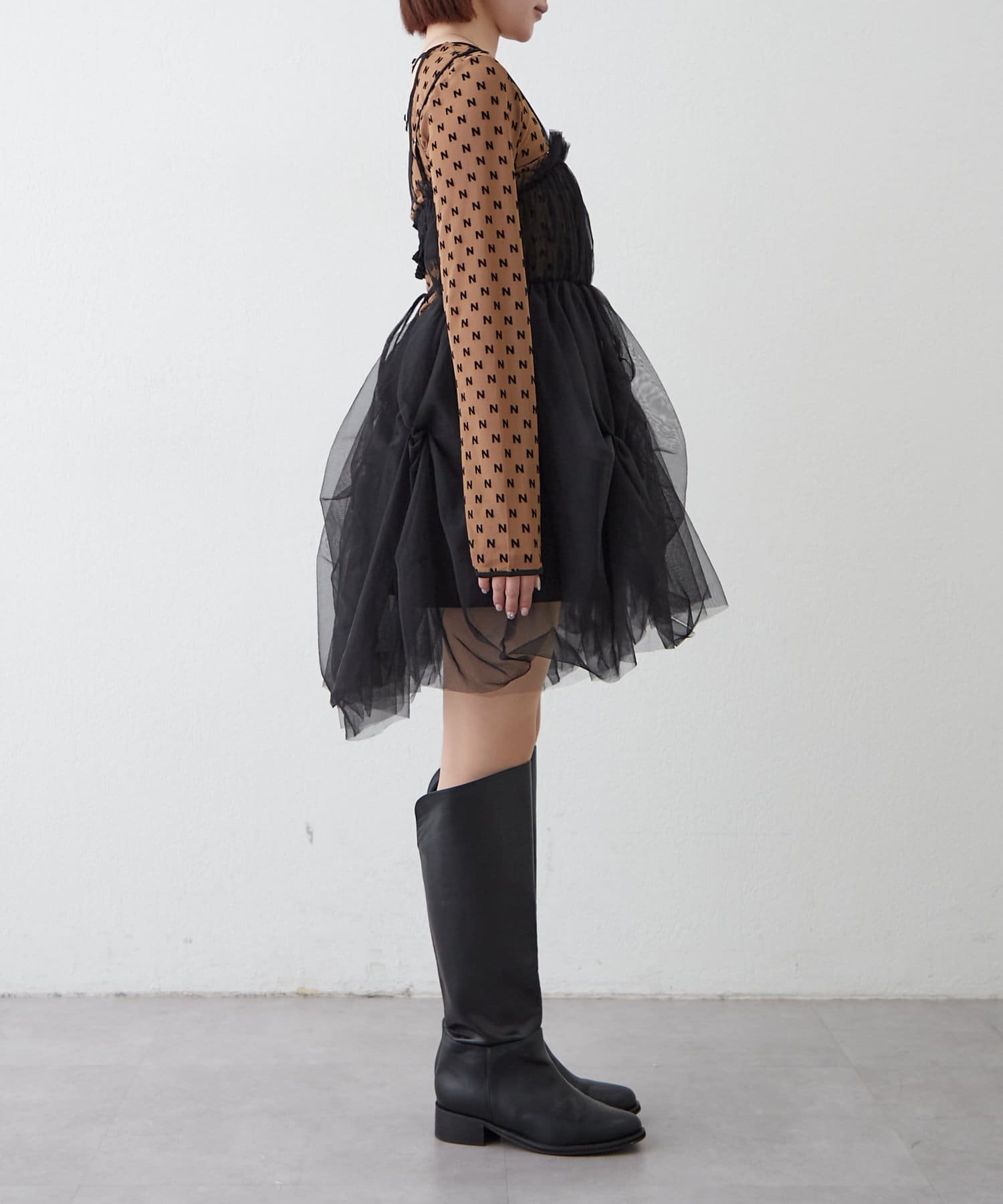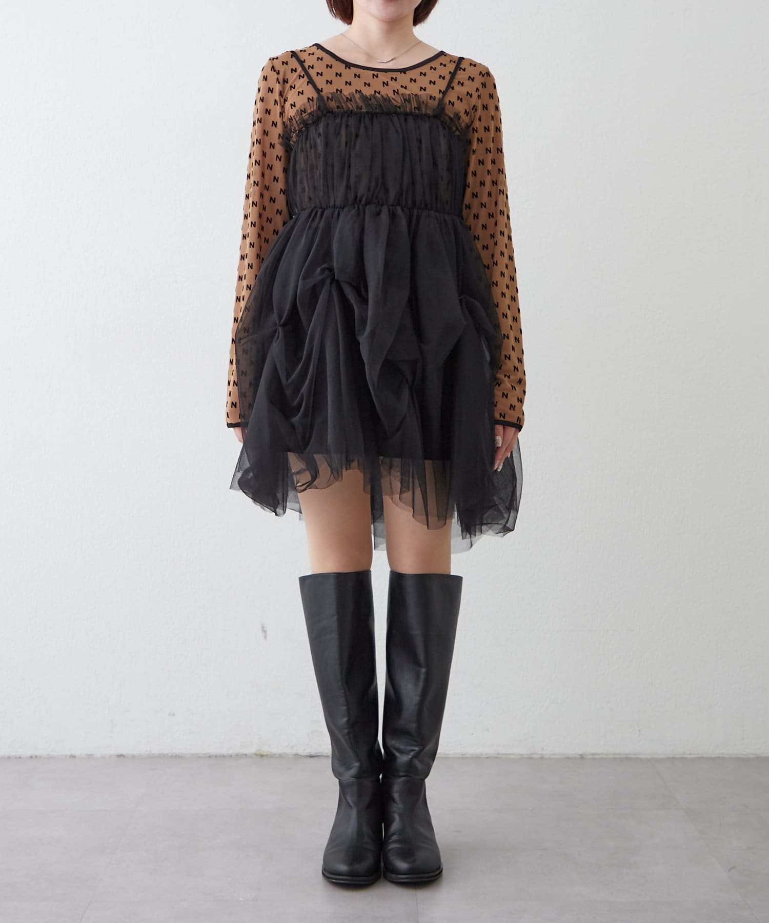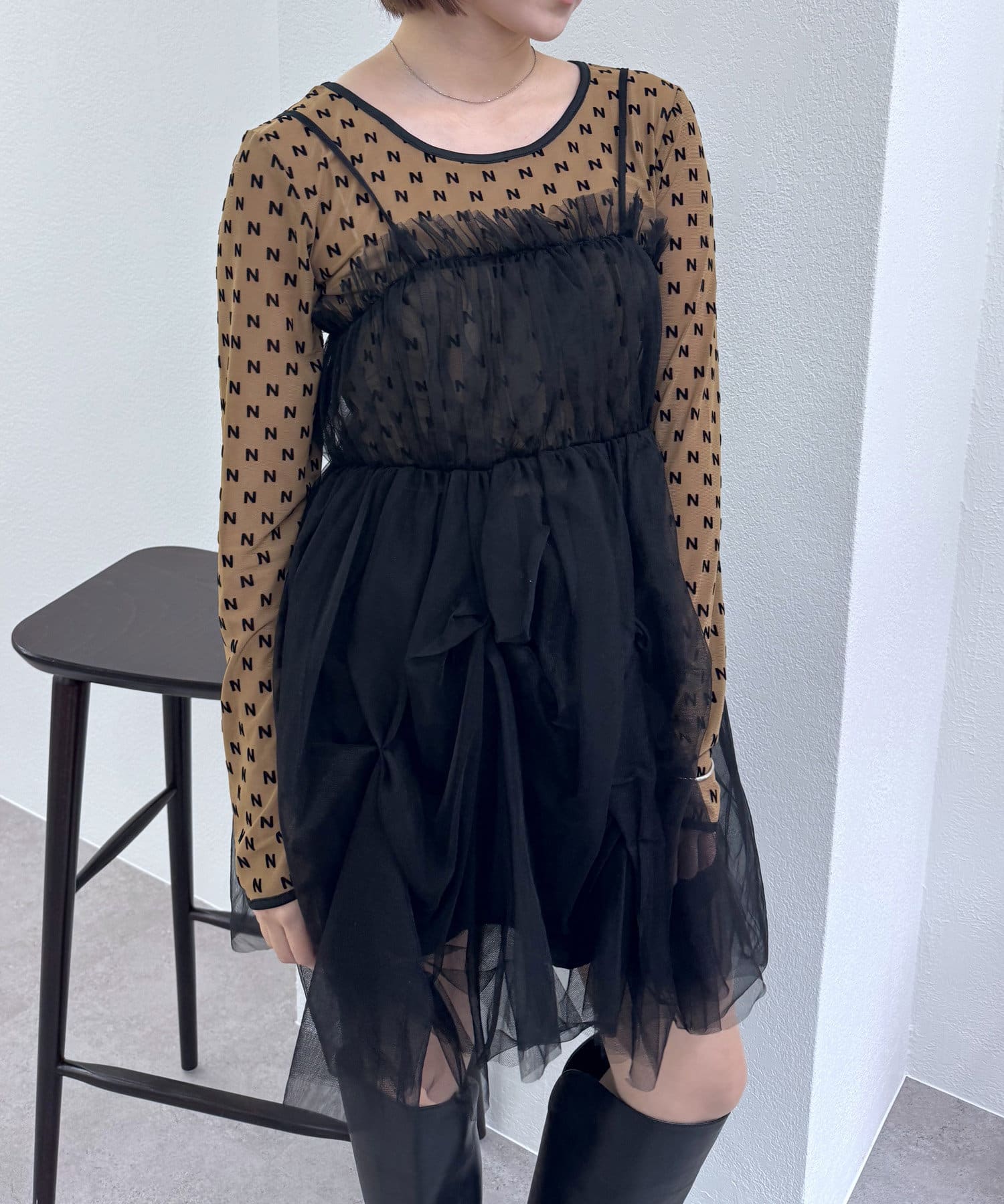 ・チュール素材はデニムと重ねてお使いいただくのがトレンドライクな印象に。