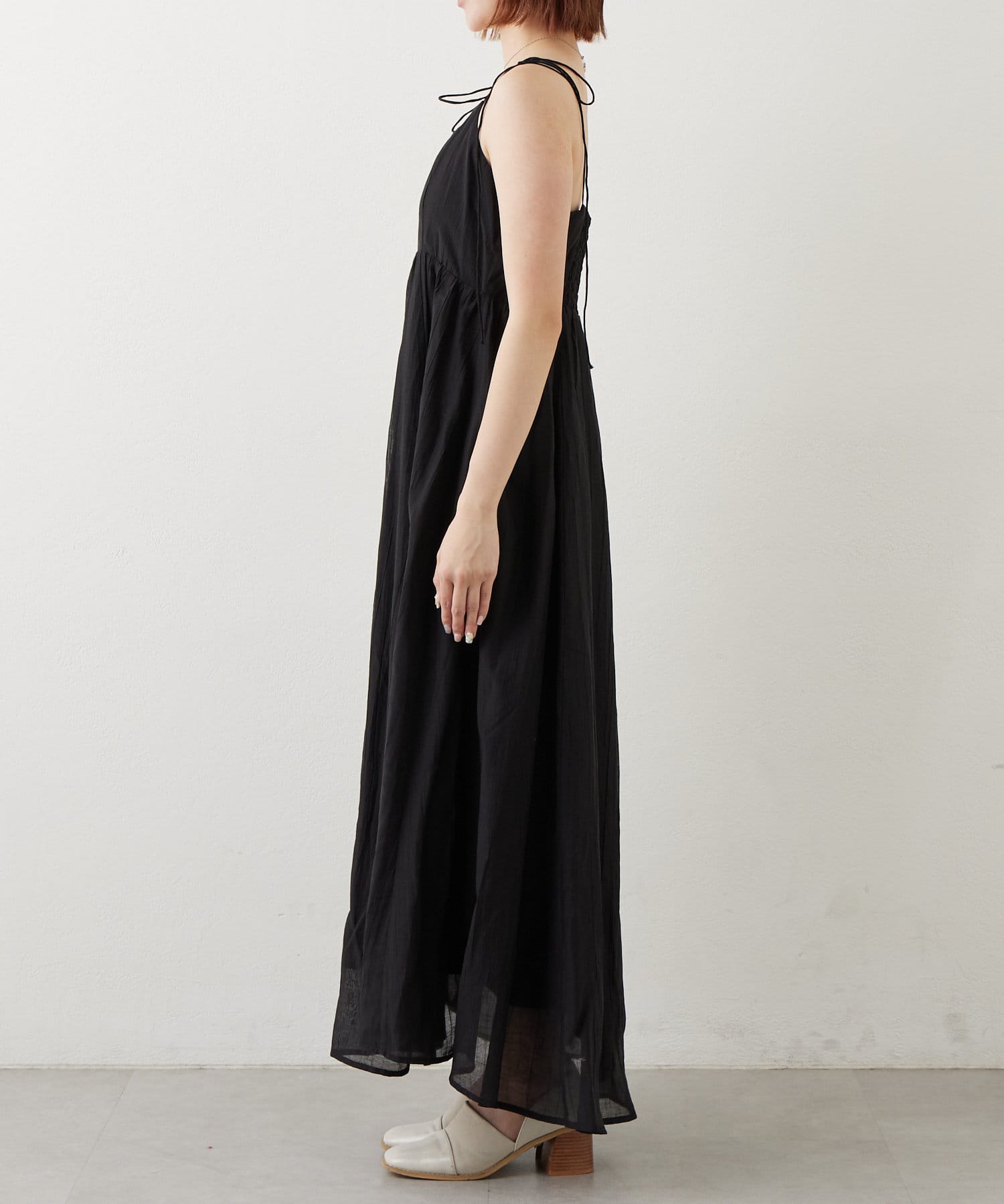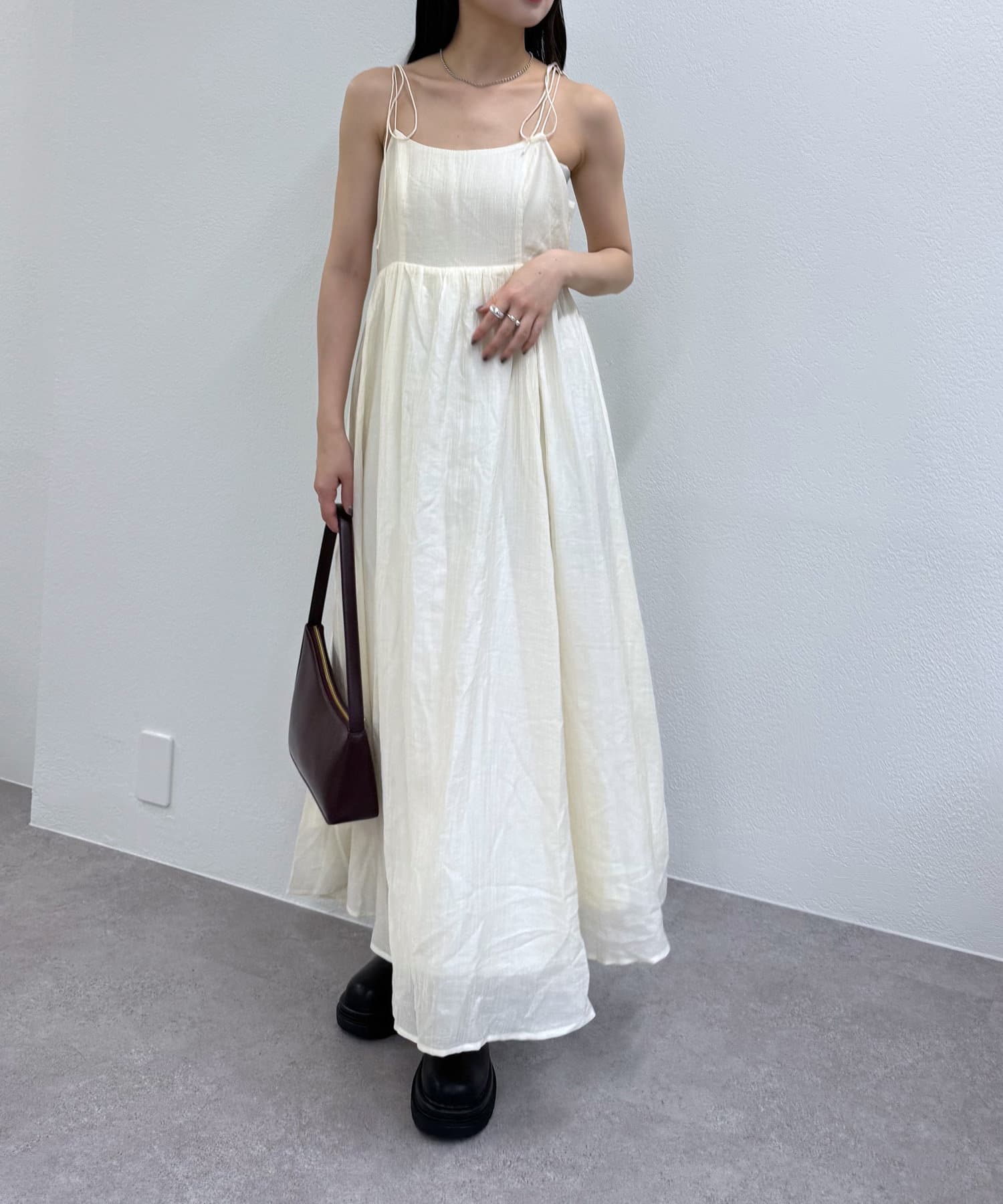 ・キャミワンピースの肩紐はリボンで結べるのでワンポイントに。
