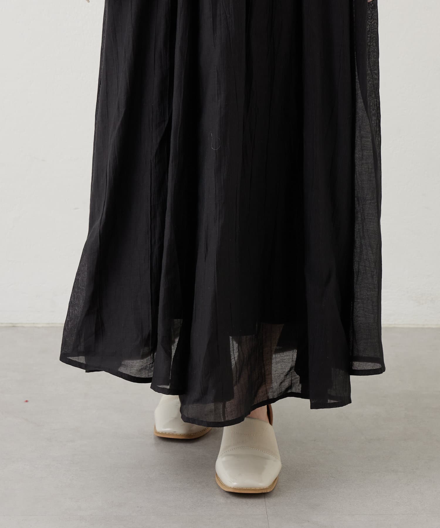 ・生地感はうすめなので夏本番まで着られるワンピースです。