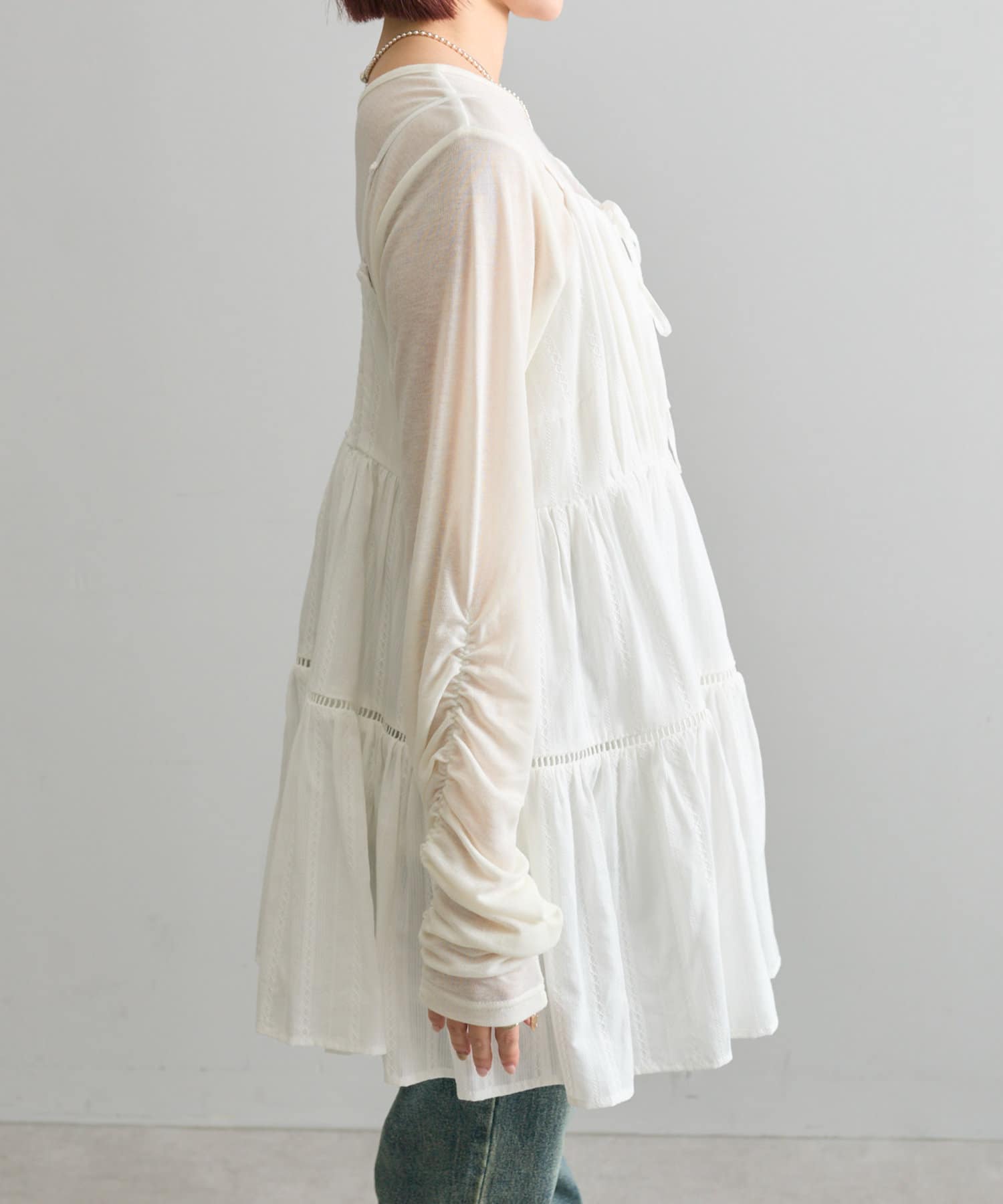 ・裾にかけてふんわり広がるデザインが女性らしさをプラスする1枚。