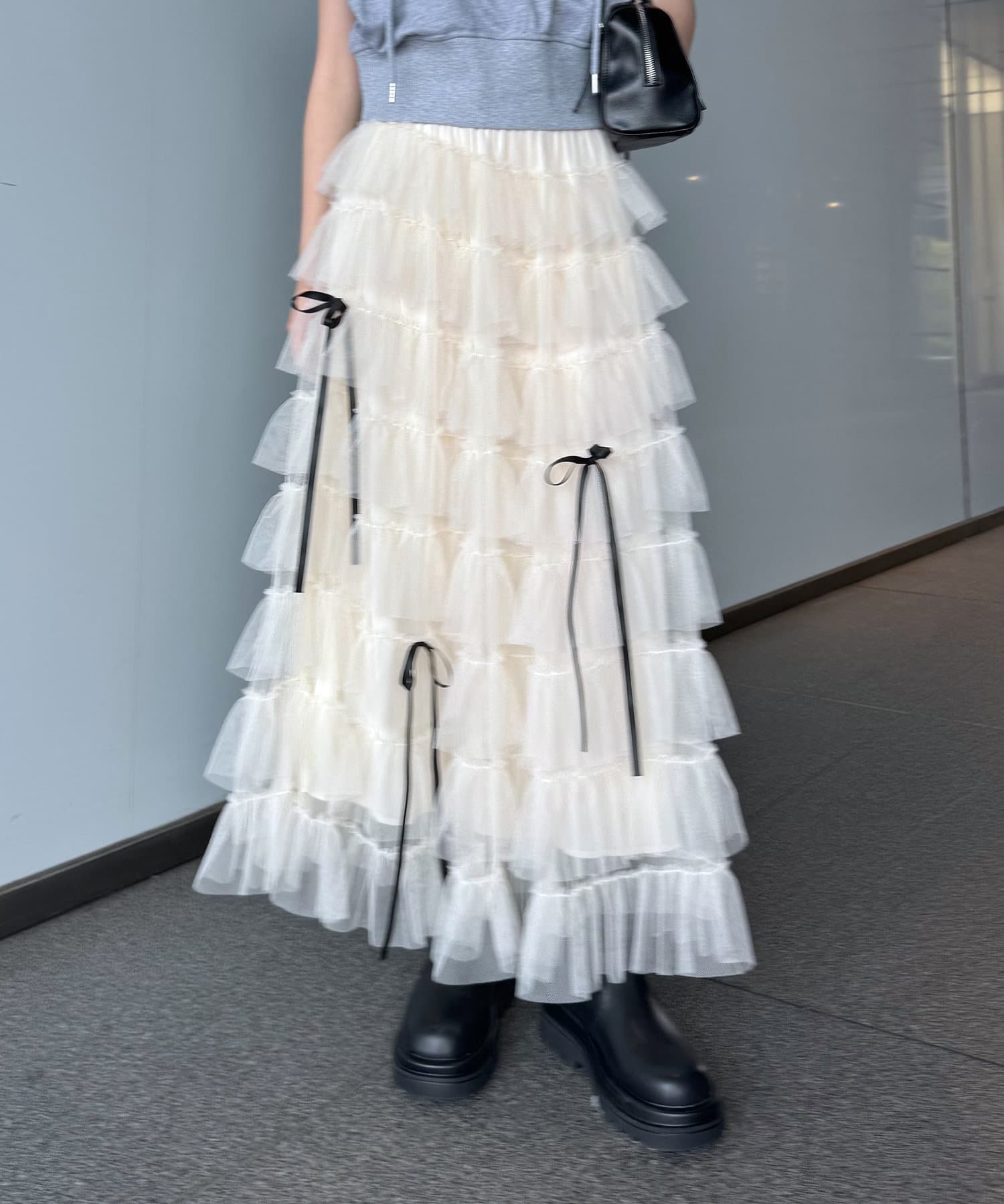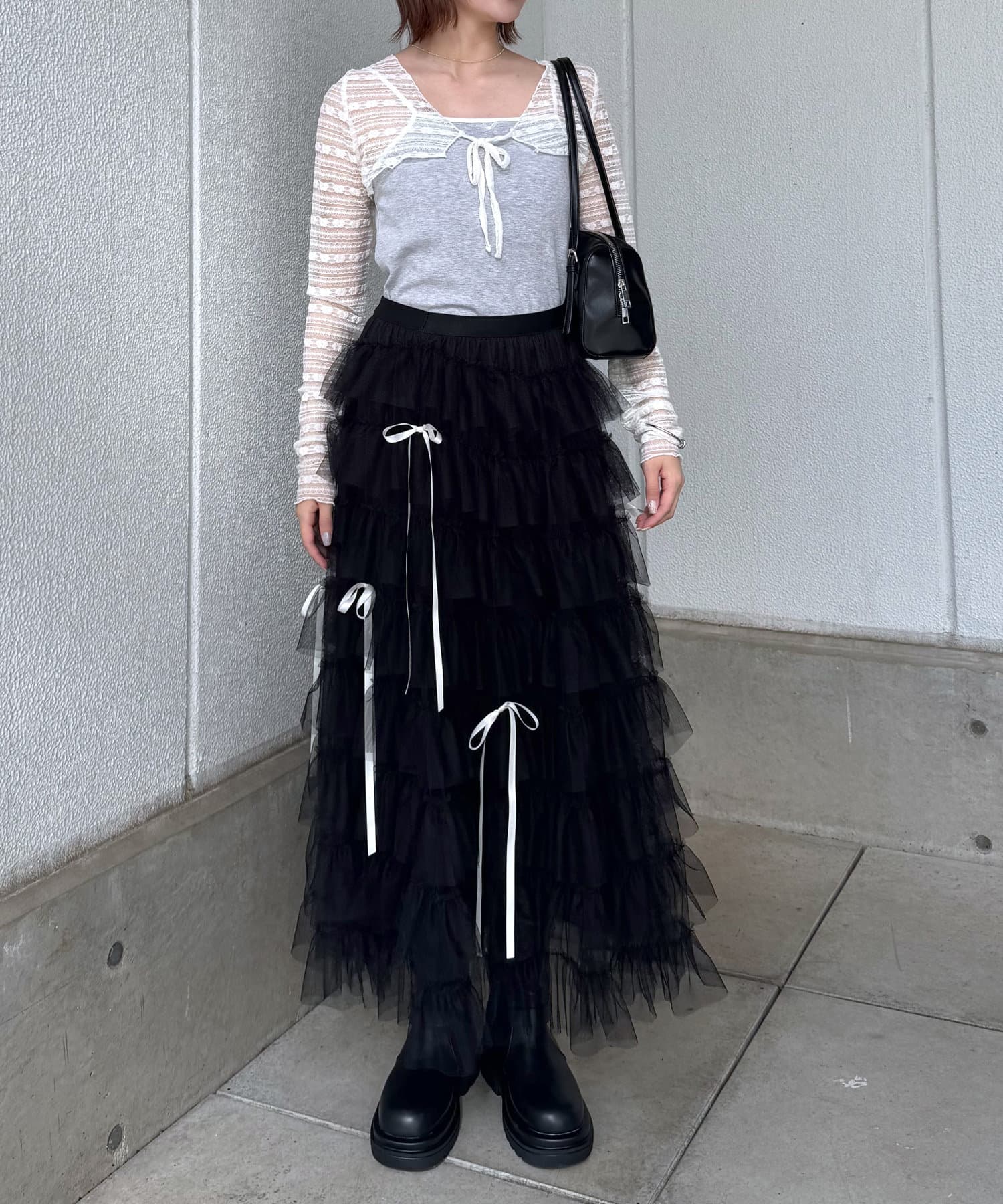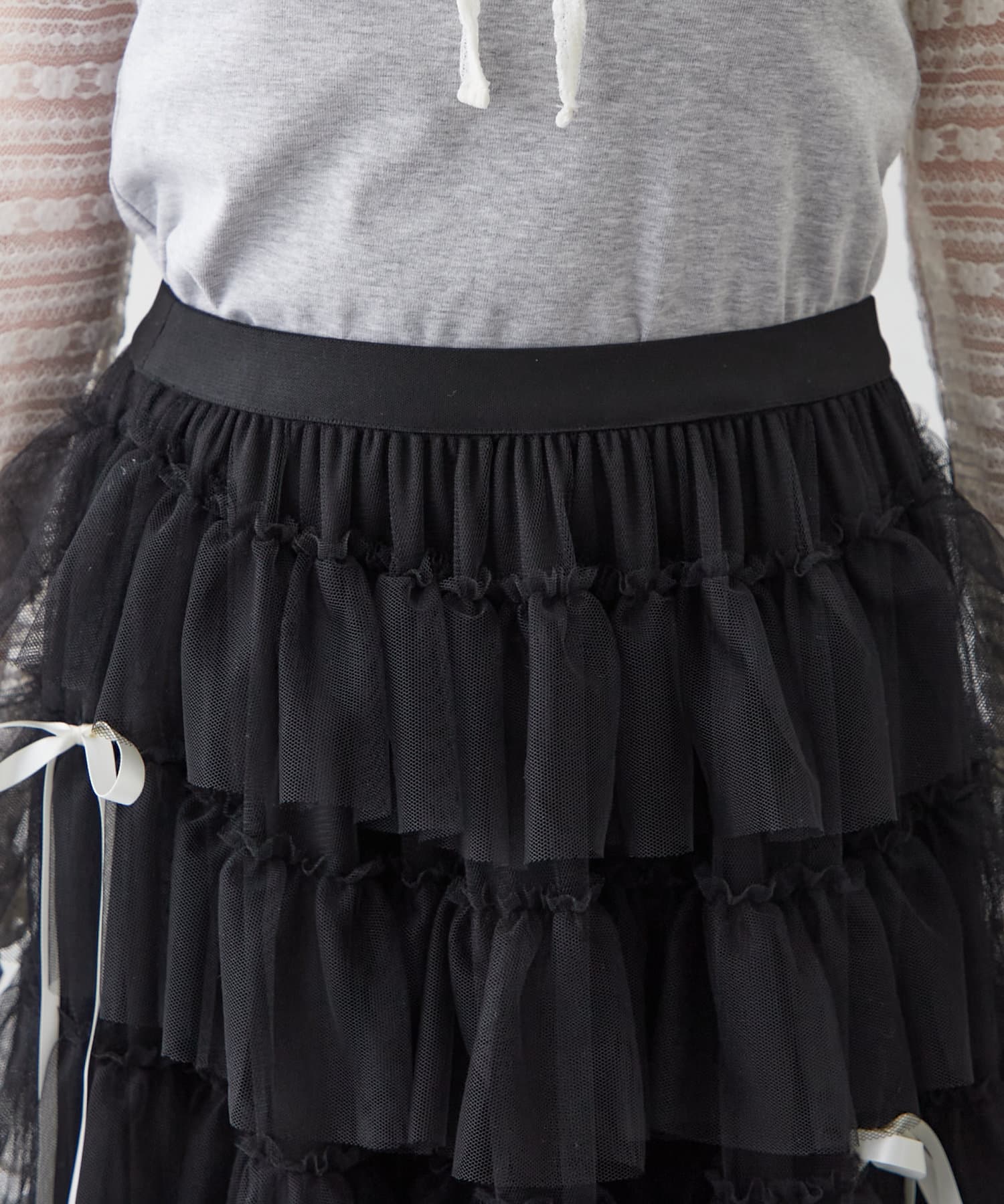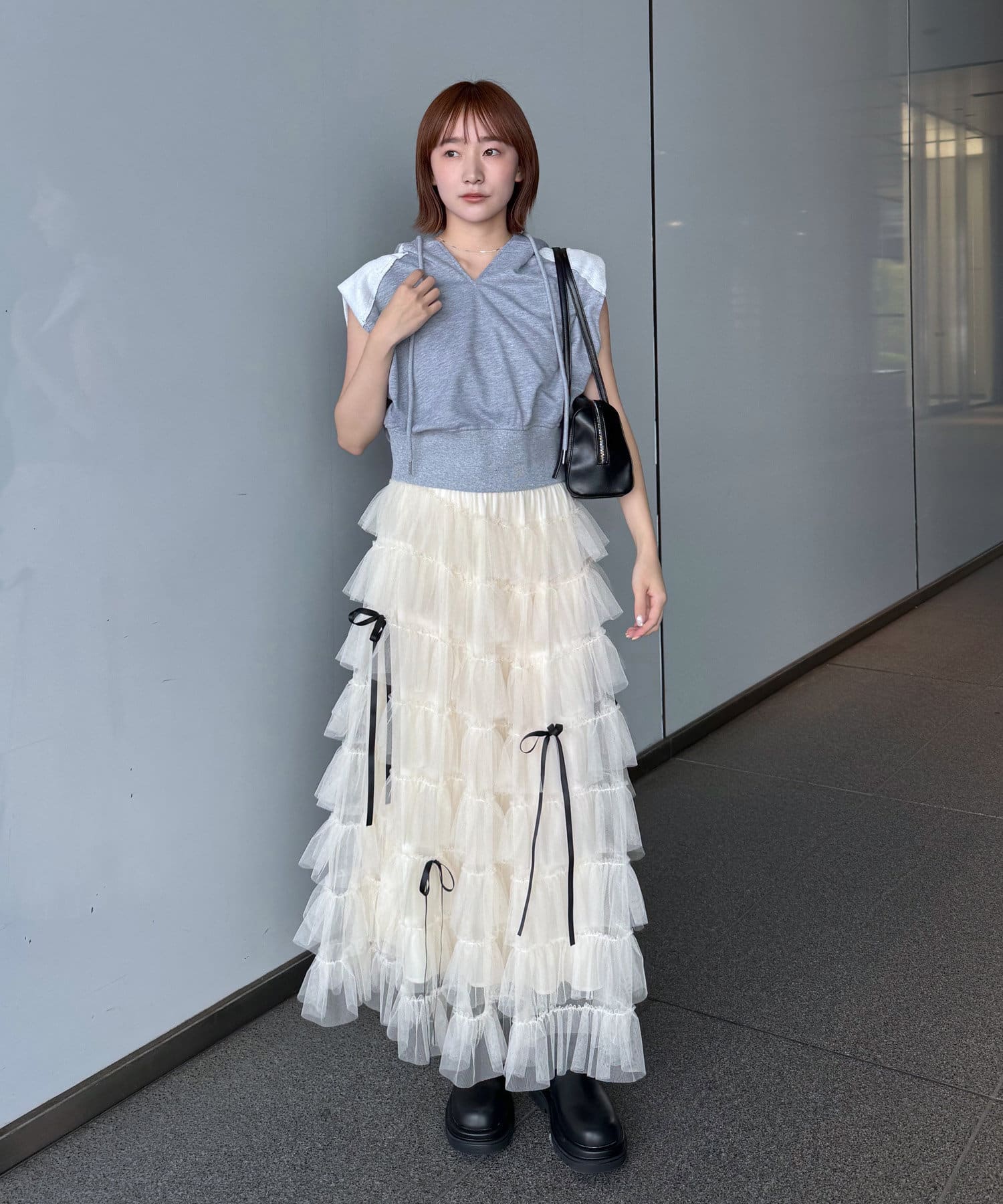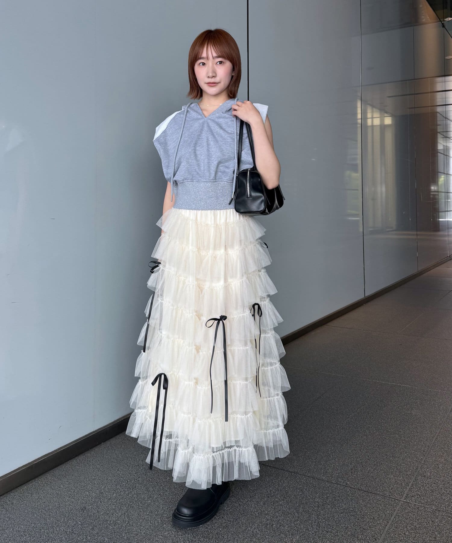 ・チュールを重ねたデザインで、ボリュームたっぷりに着ていただけます。