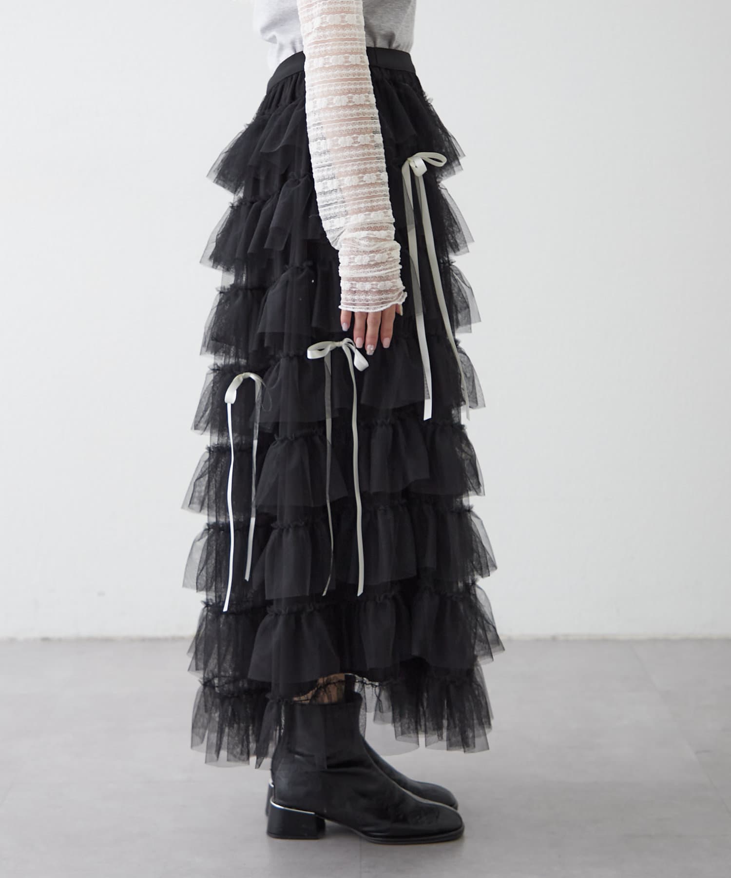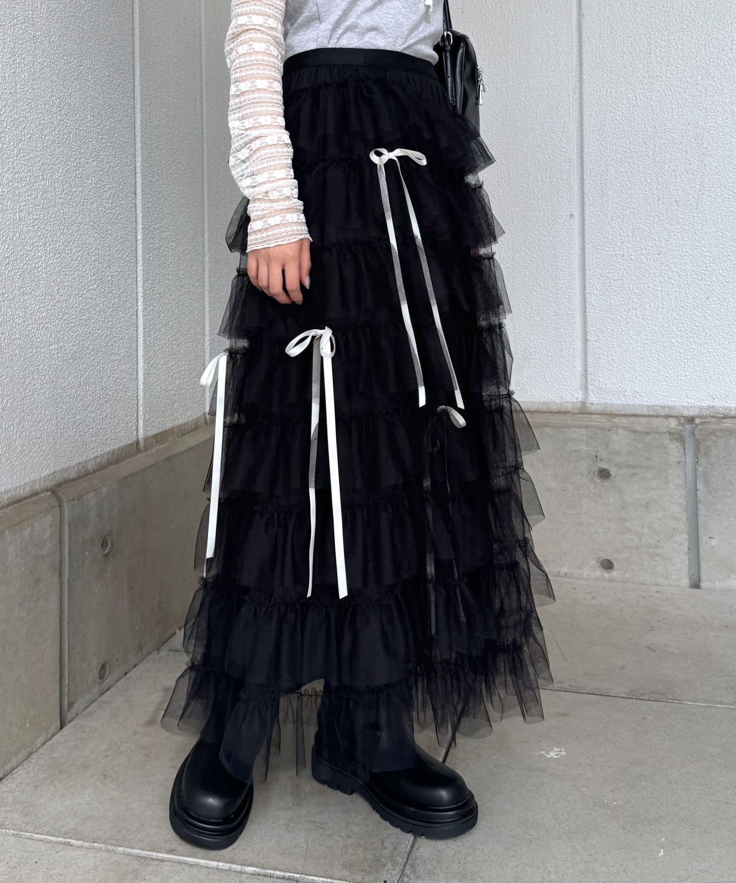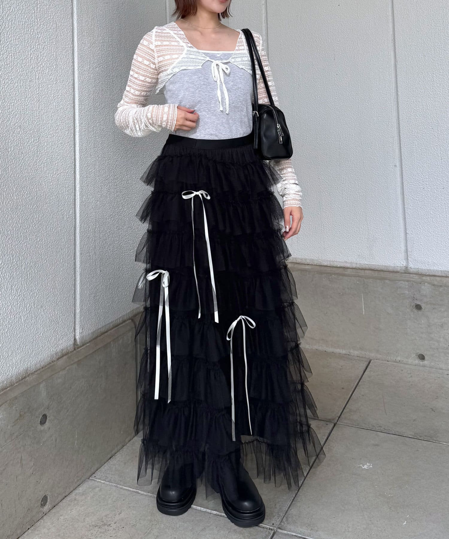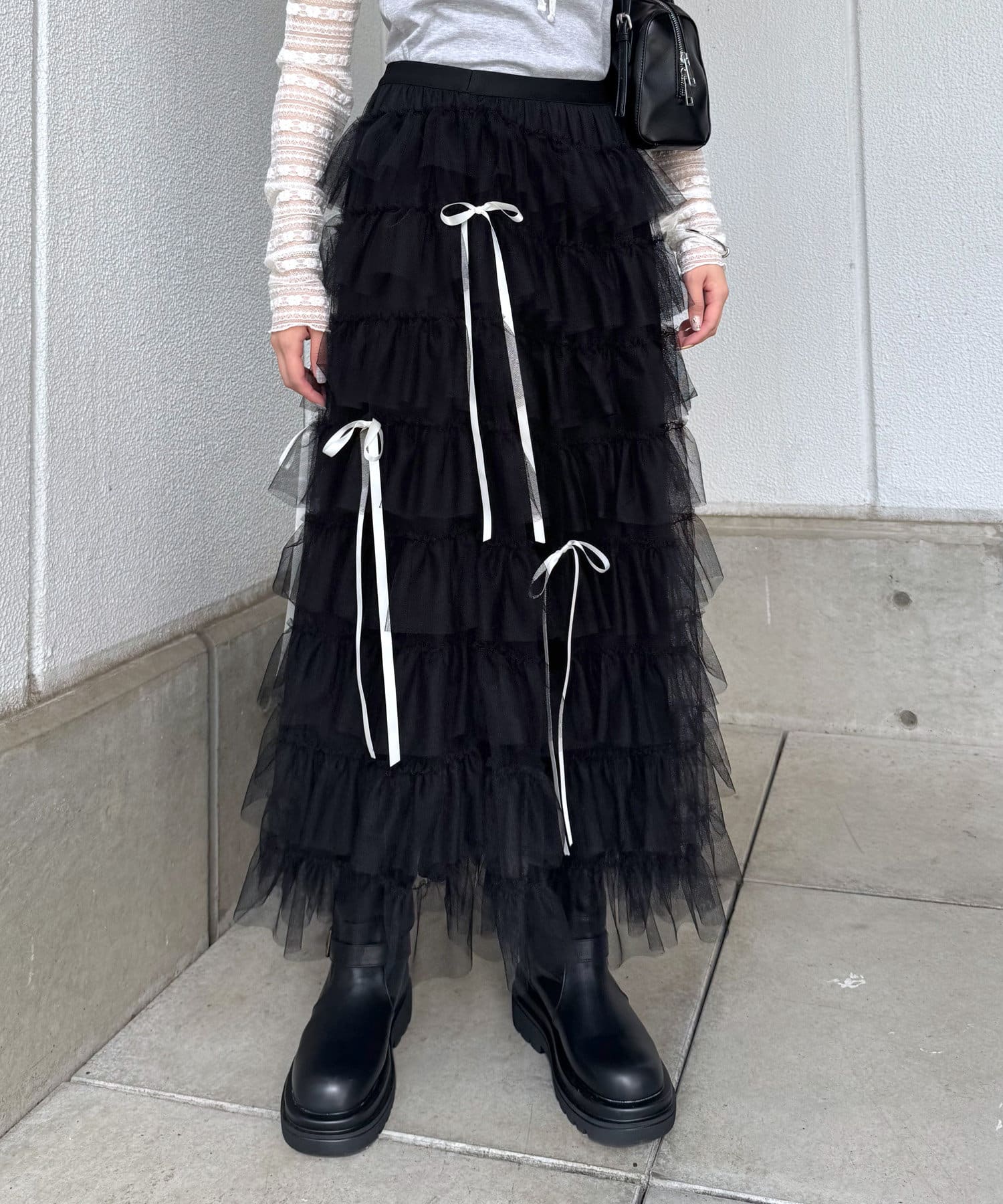 ・チュールを重ねたデザインで、ボリュームたっぷりに着ていただけます。