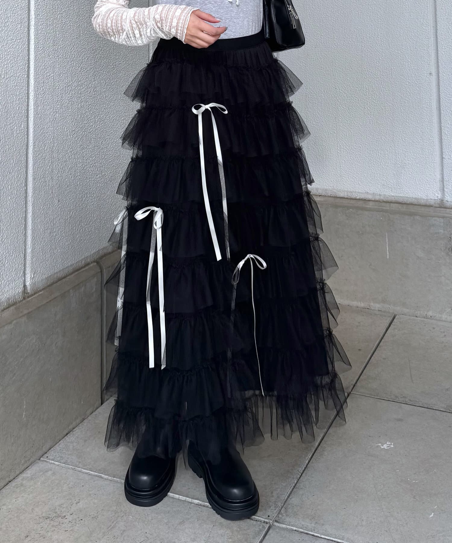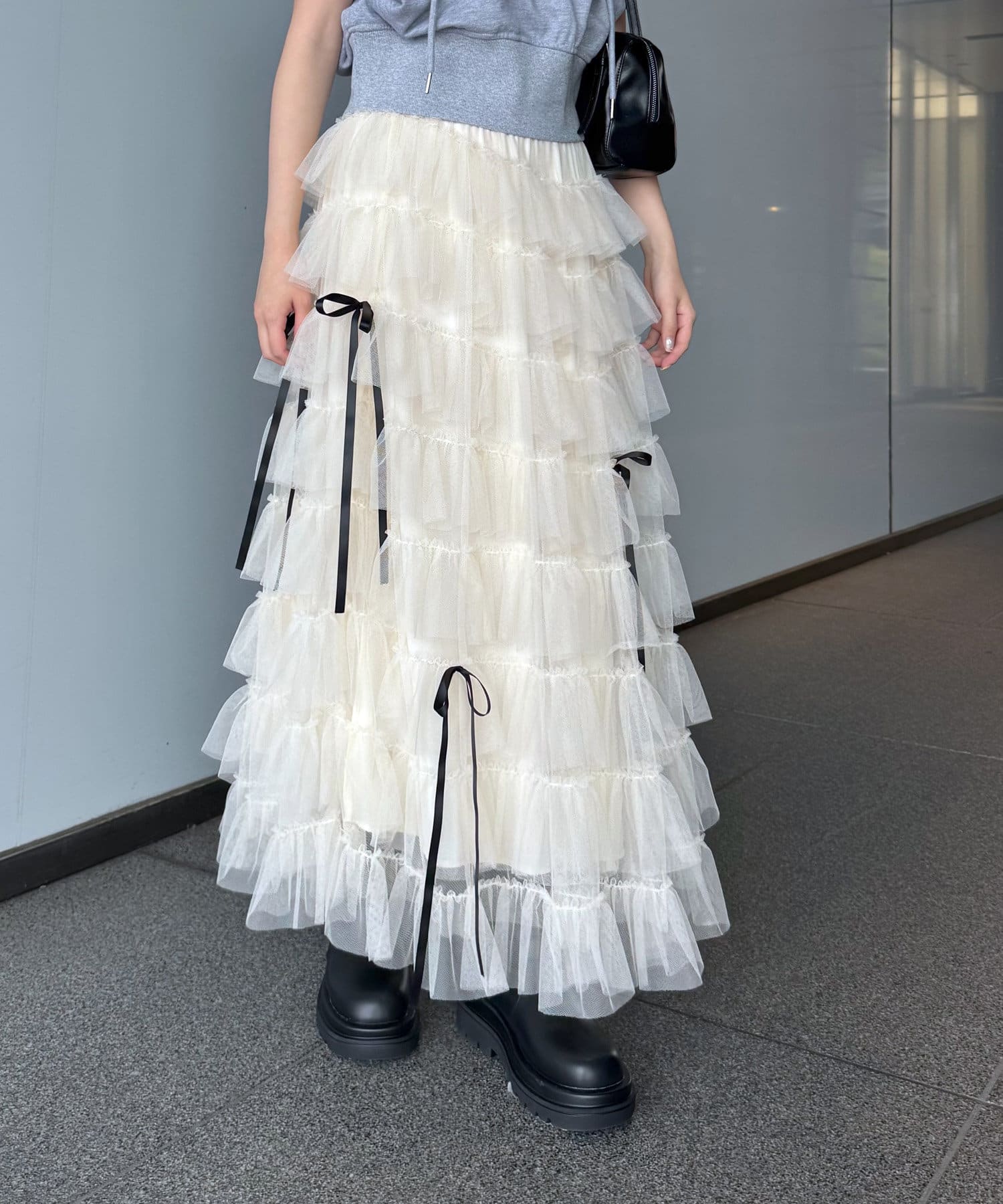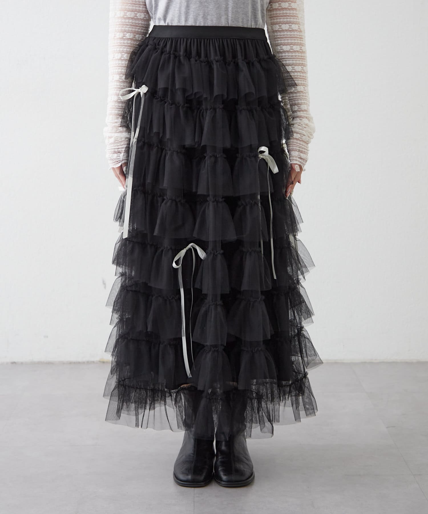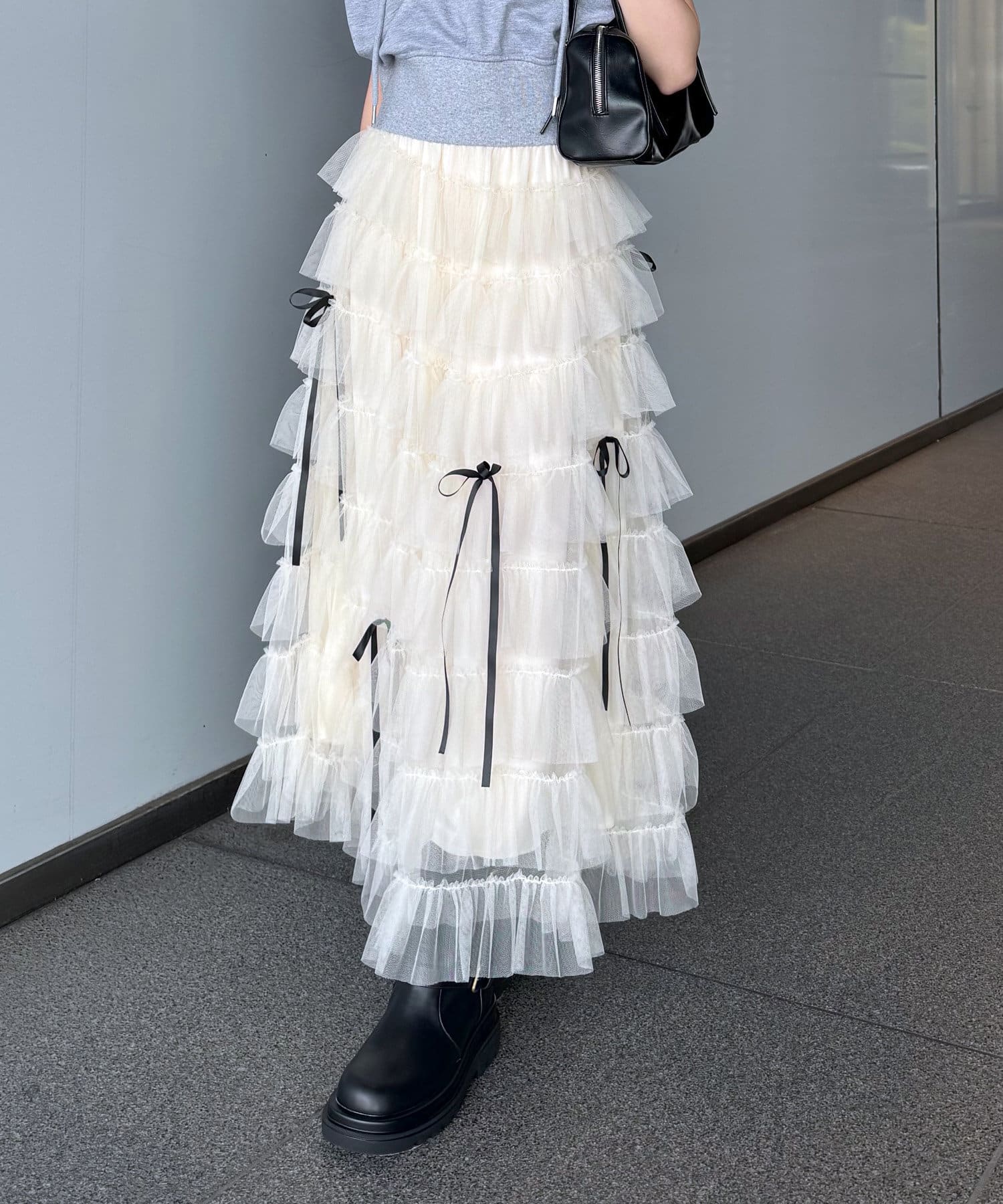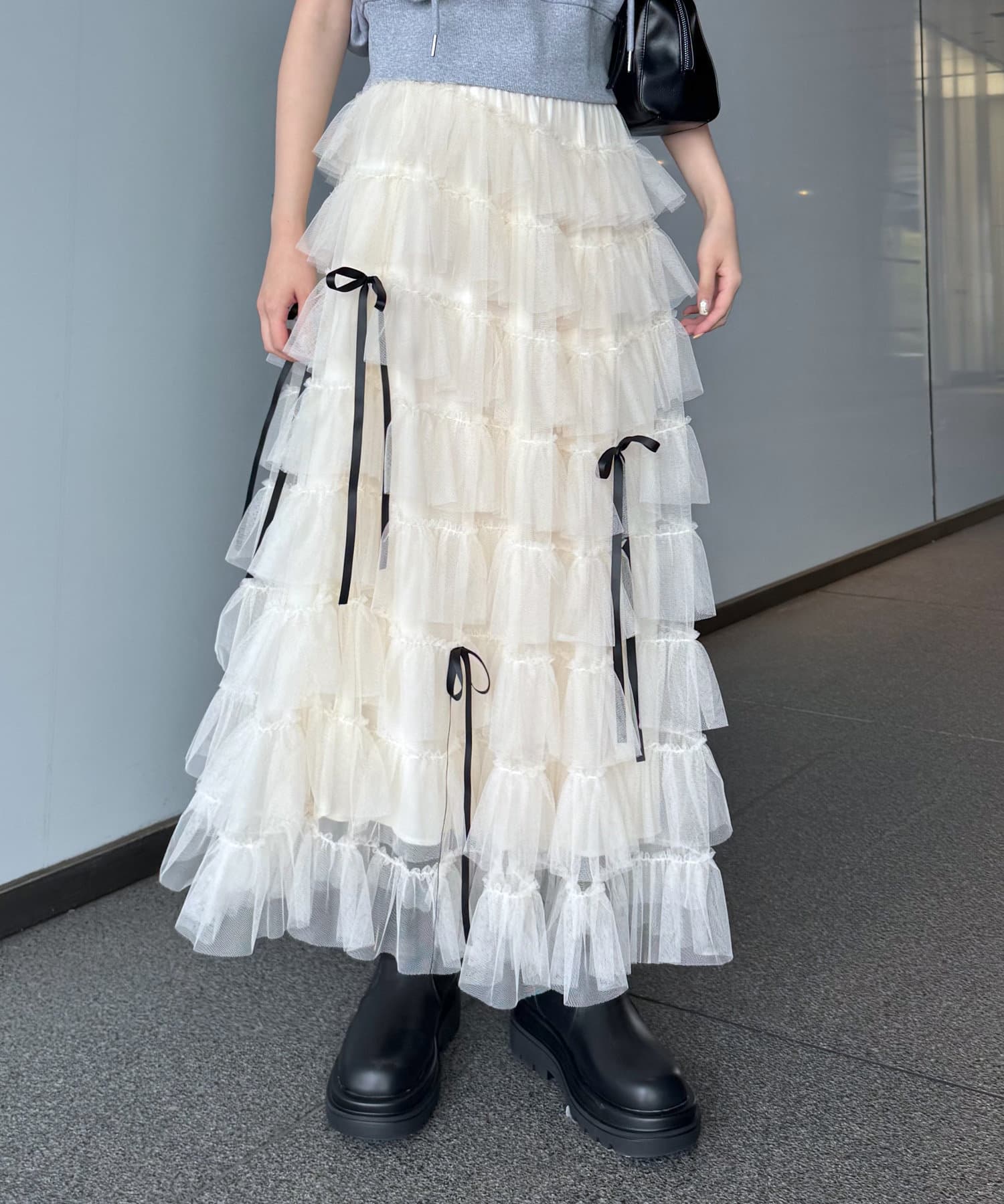 ・チュールを重ねたデザインで、ボリュームたっぷりに着ていただけます。