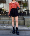 ・ブラウスやニットと合わせてフェミニンな着こなしをしたり 、Tシャツやカットソーなどのシンプルなトップスと合わせたりと
