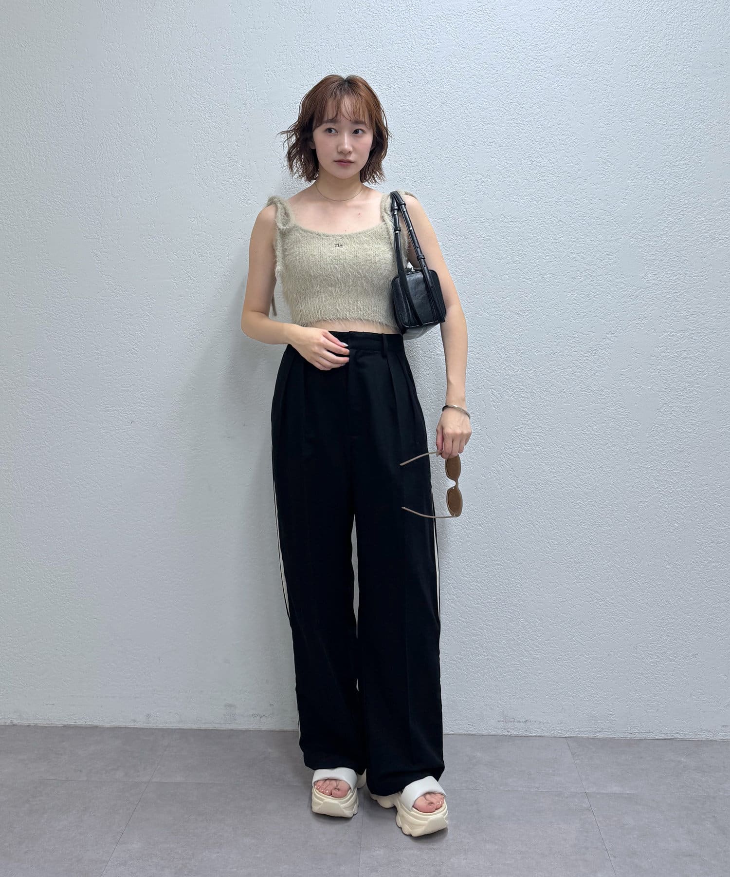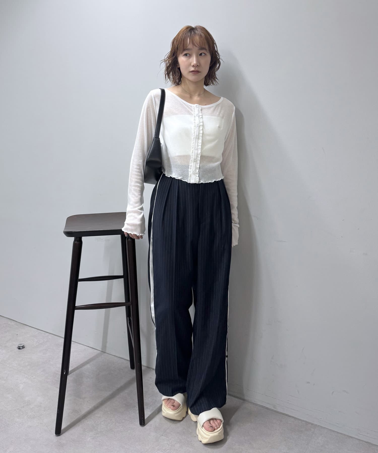 トレンドのショート丈トップスと合わせれば、スタイルアップ効果も◎