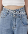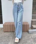 ハイウエストなデザインで脚長効果が期待できるデニム。